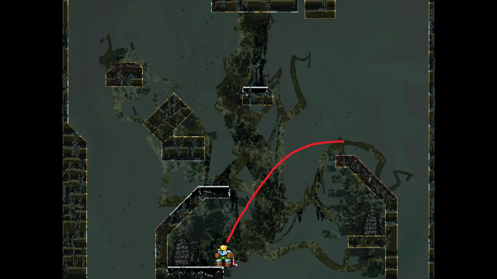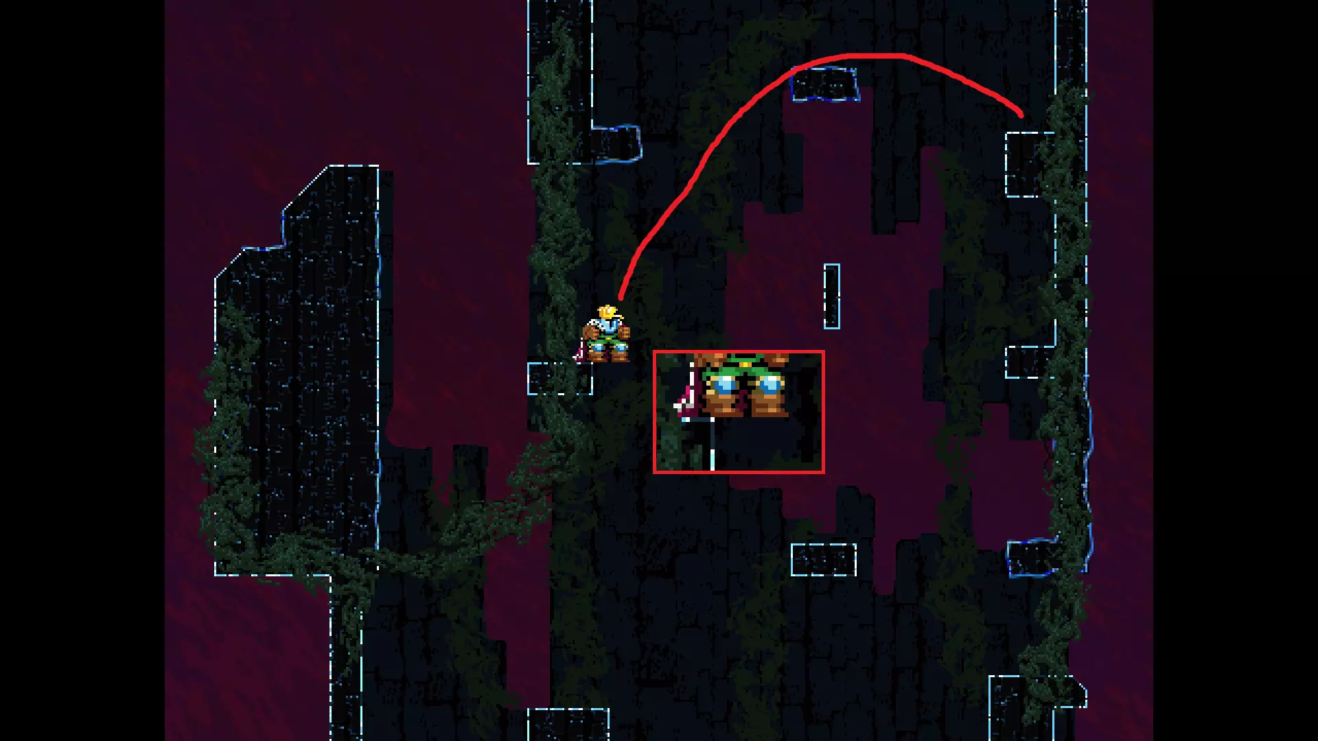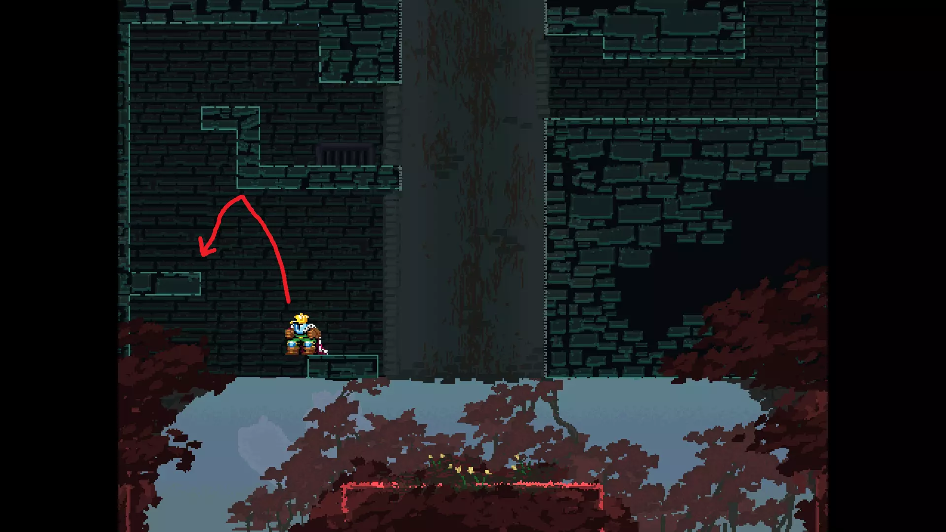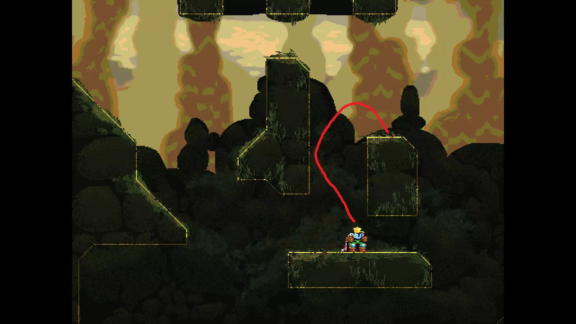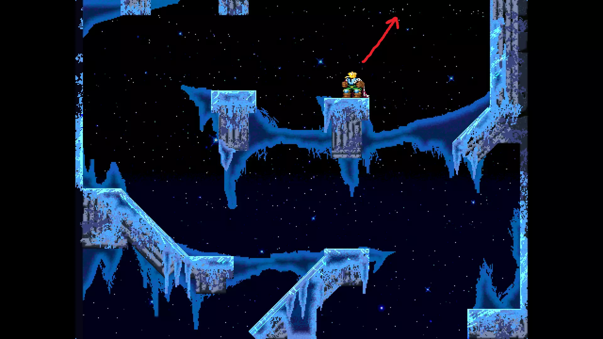 请注意,以下跳跃需要【亚像素级】的精准操作。即使你处于这个精确像素位置,也可能无法成功,除非你使用蛇形戒指稍微向右移动,确保自己处于正确的亚像素位置。