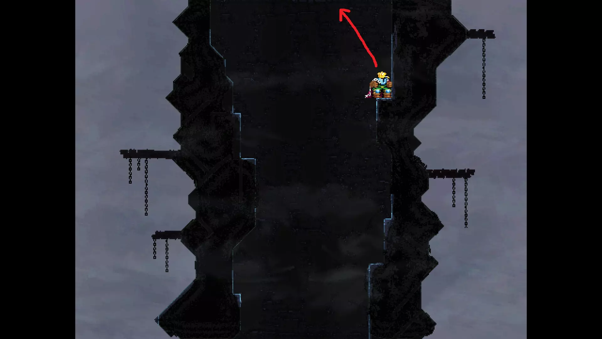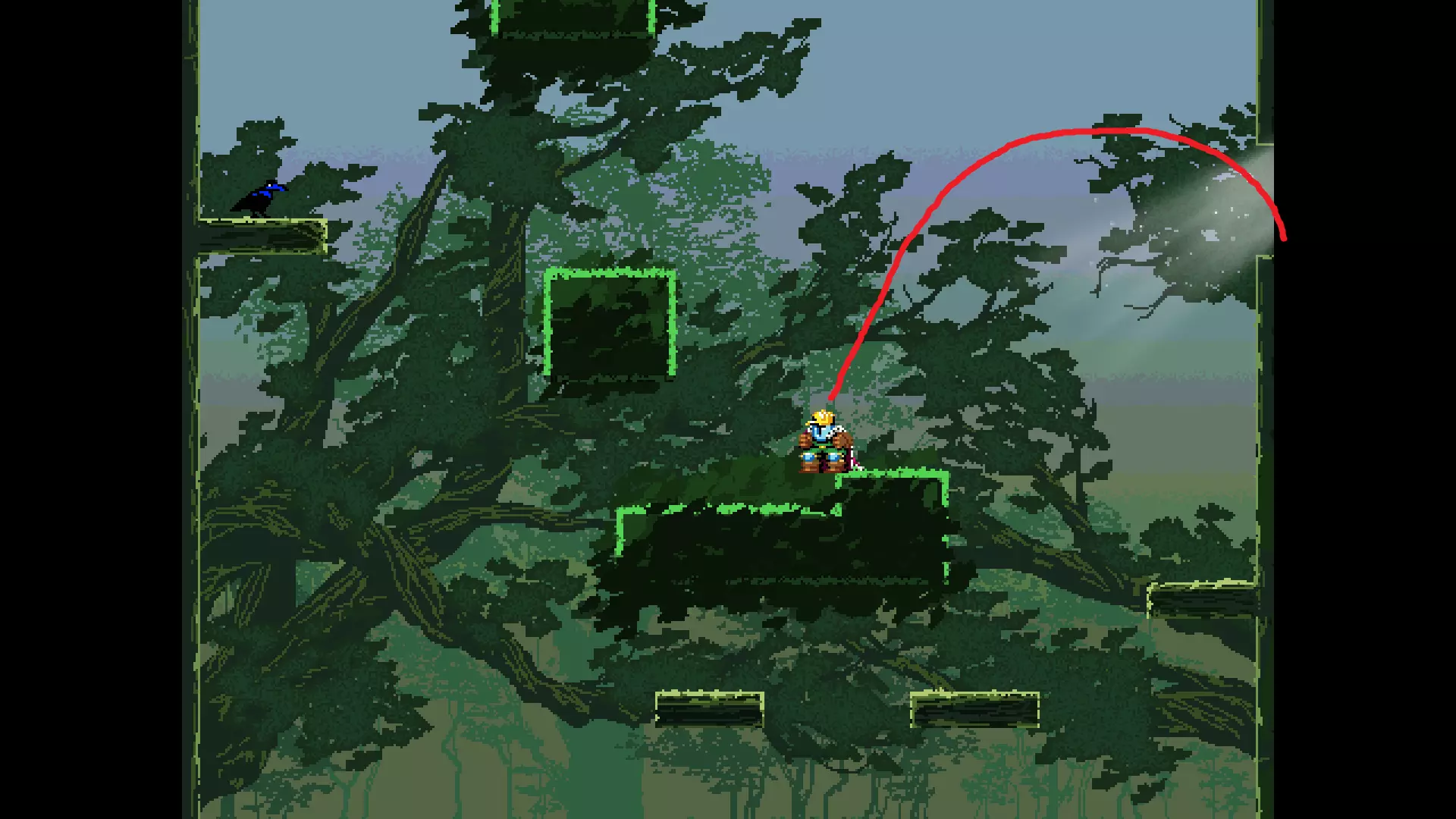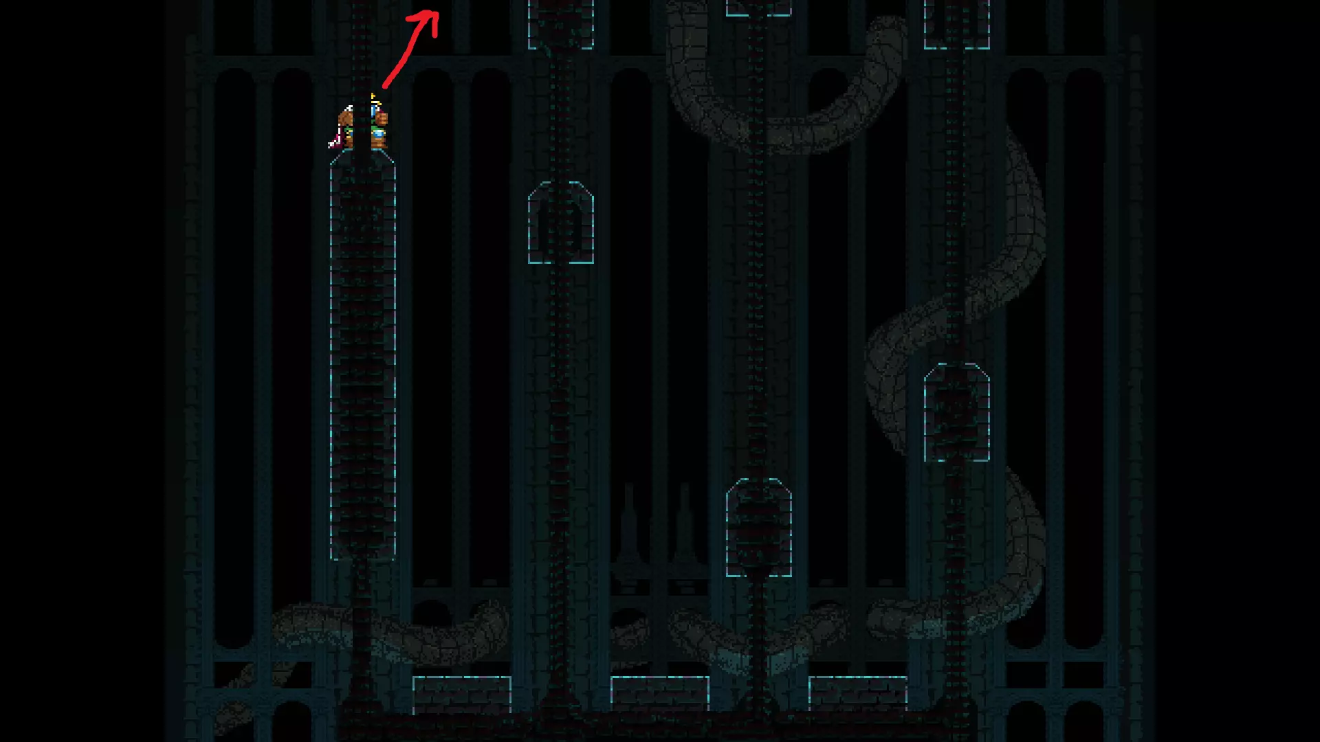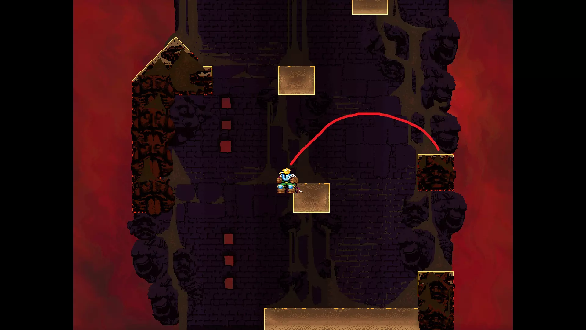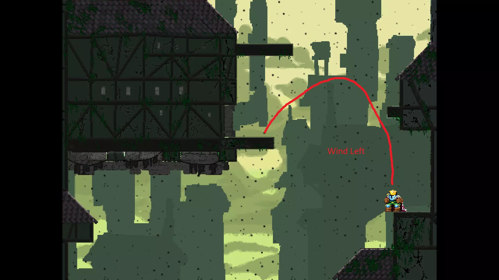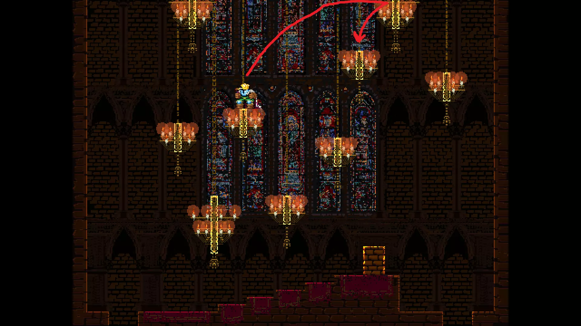 请注意,以下跳跃需要【亚像素级】的精准操作。即使你处于这个精确像素位置,也可能无法成功,除非你使用蛇形戒指稍微向右移动,确保自己处于正确的亚像素位置。