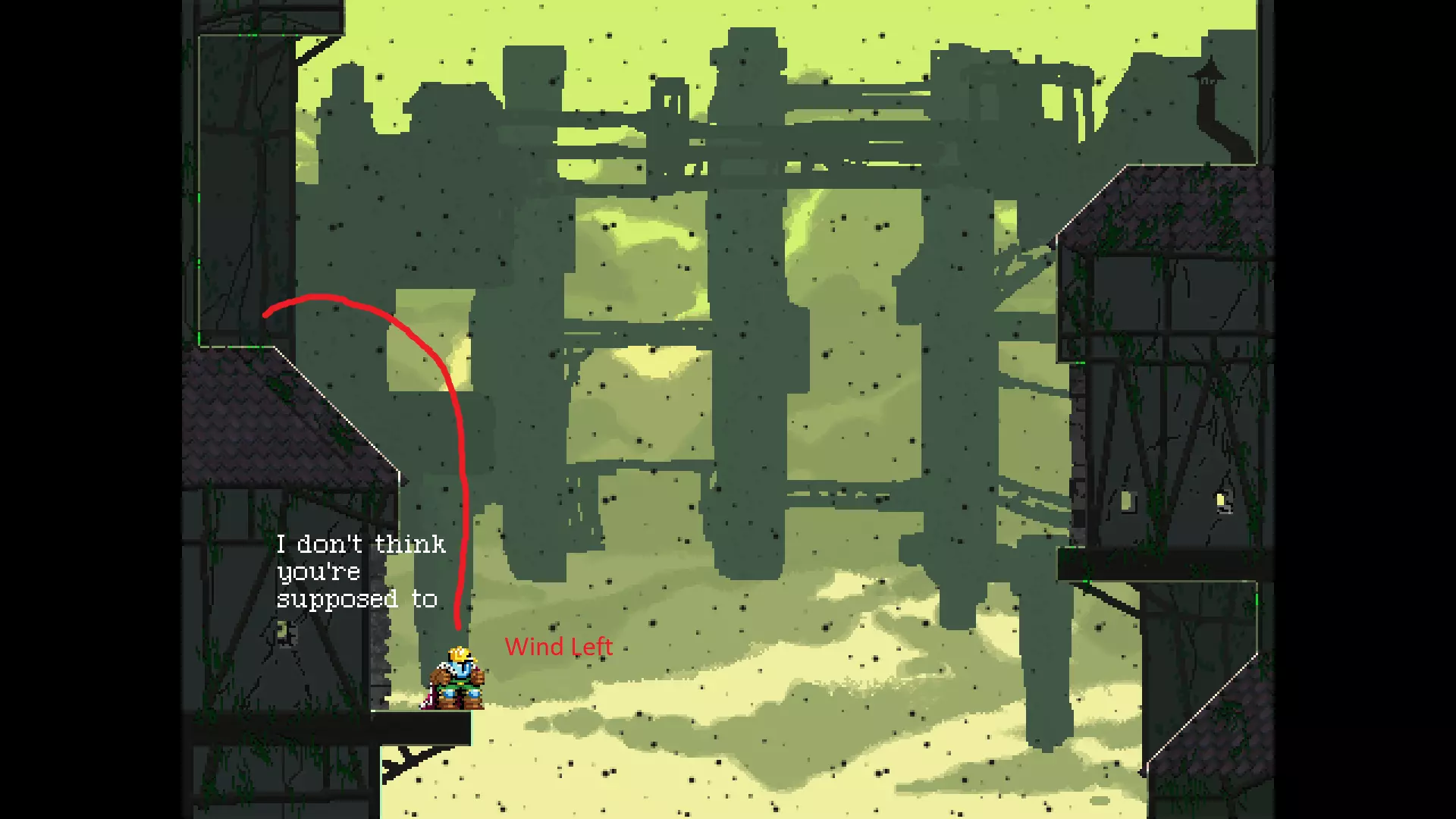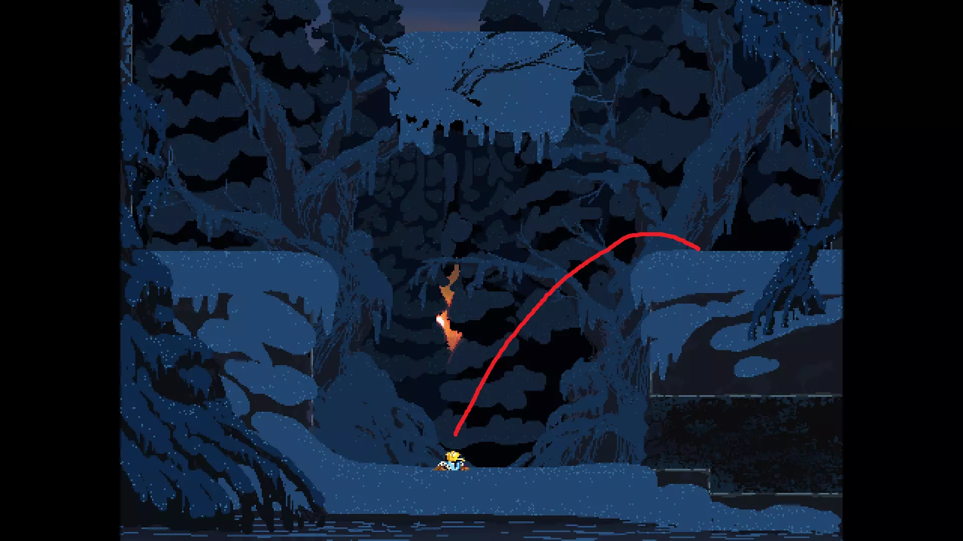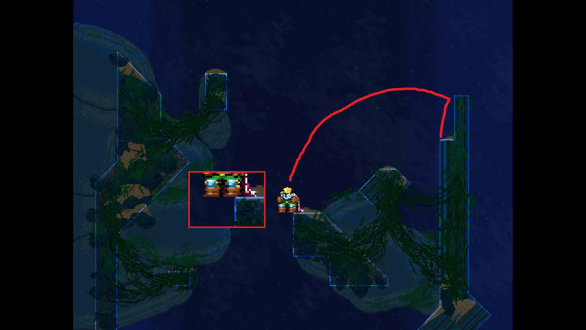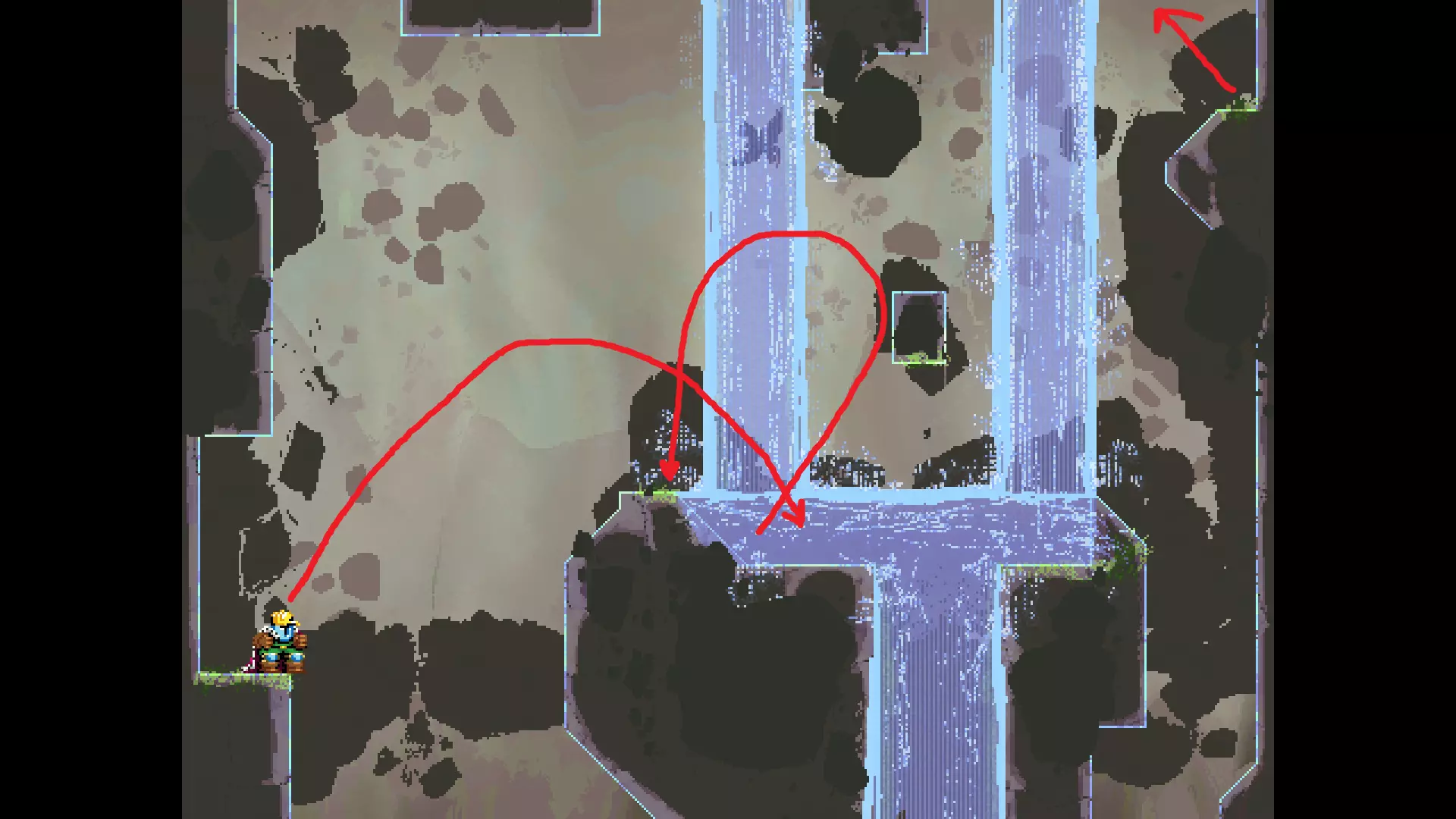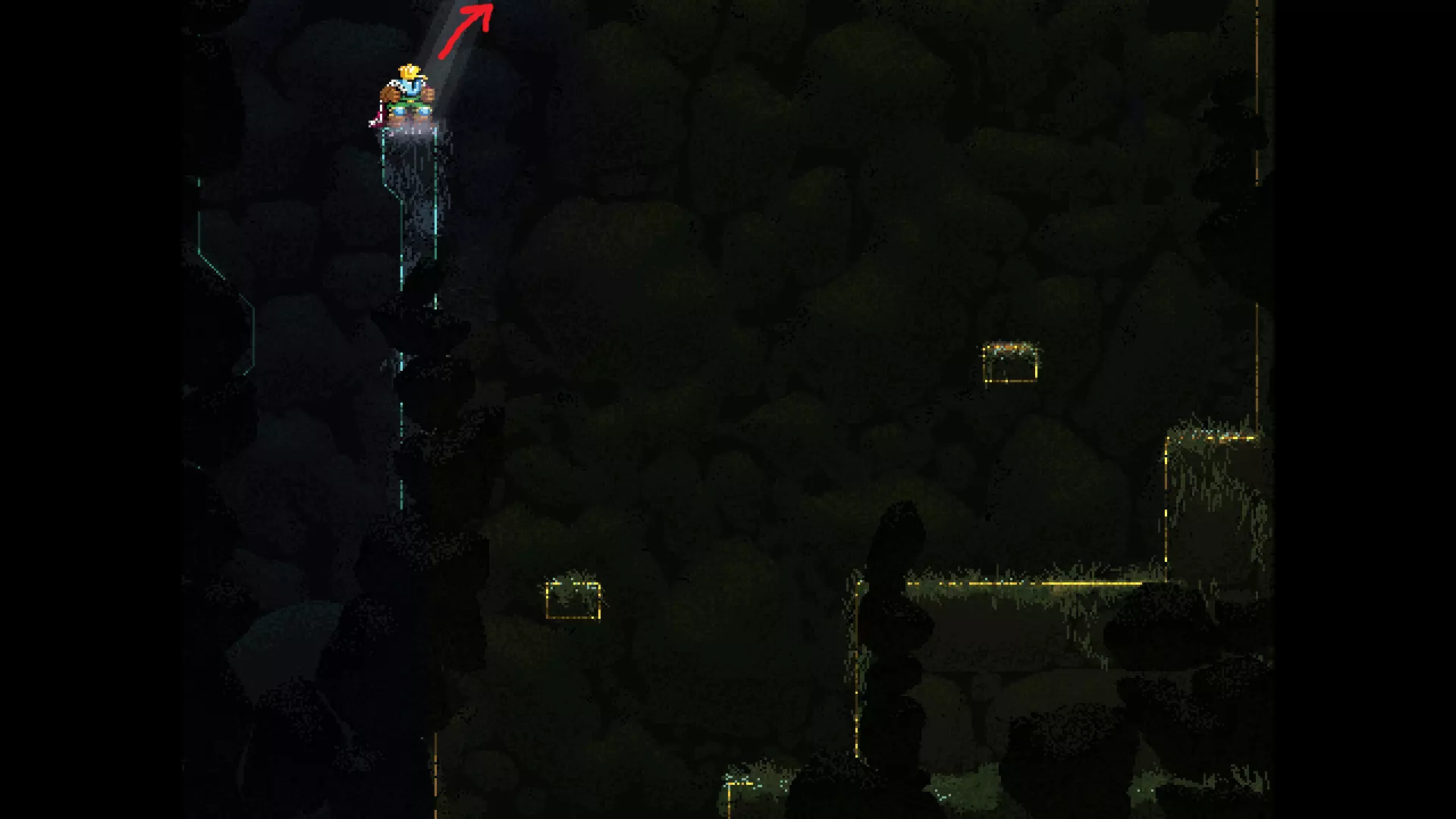 请注意,以下跳跃需要【亚像素级】的精准操作。即使你处于这个精确像素位置,也可能无法成功,除非你使用蛇形戒指稍微向右移动,确保自己处于正确的亚像素位置。