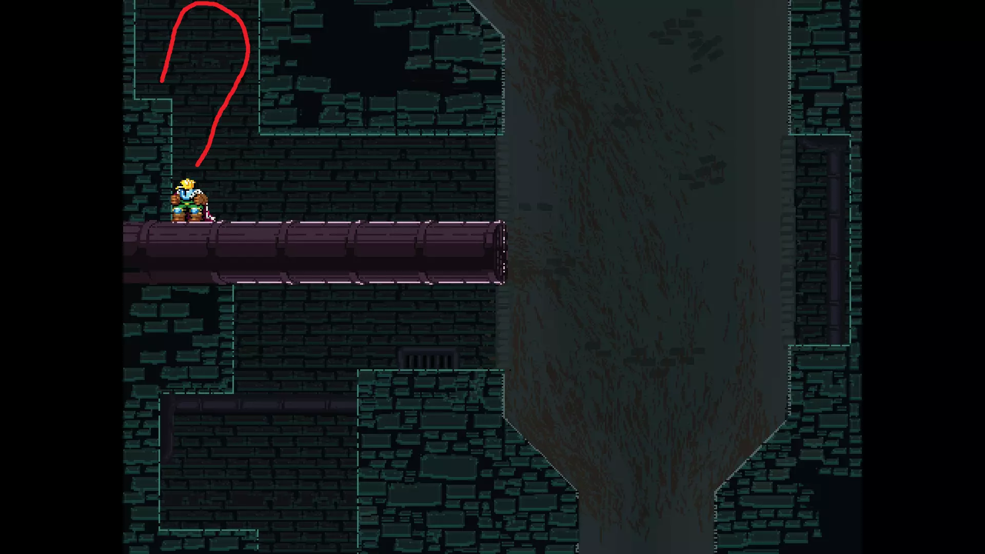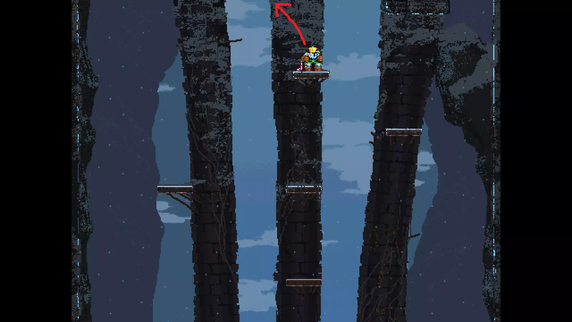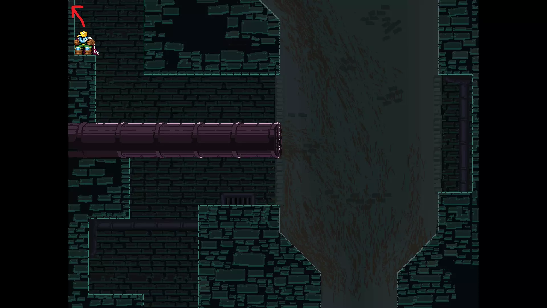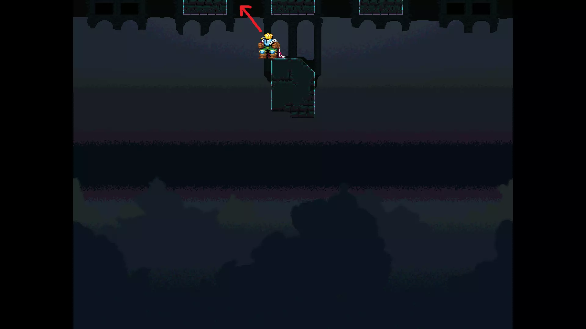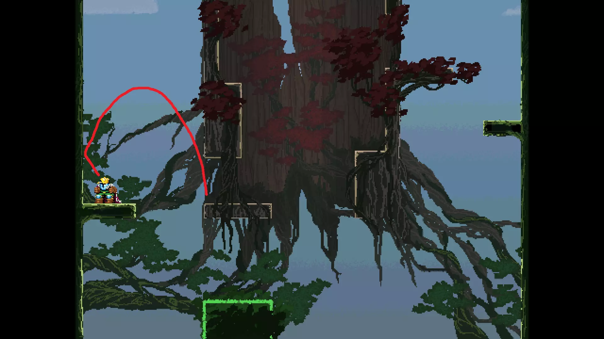 请注意,以下跳跃需要【亚像素级】的精准操作。即使你处于这个精确像素位置,也可能无法成功,除非你使用蛇形戒指稍微向右移动,确保自己处于正确的亚像素位置。