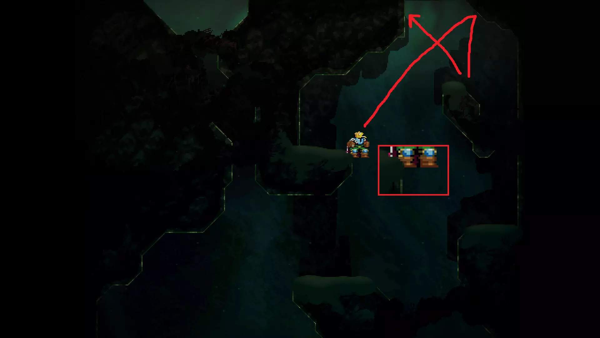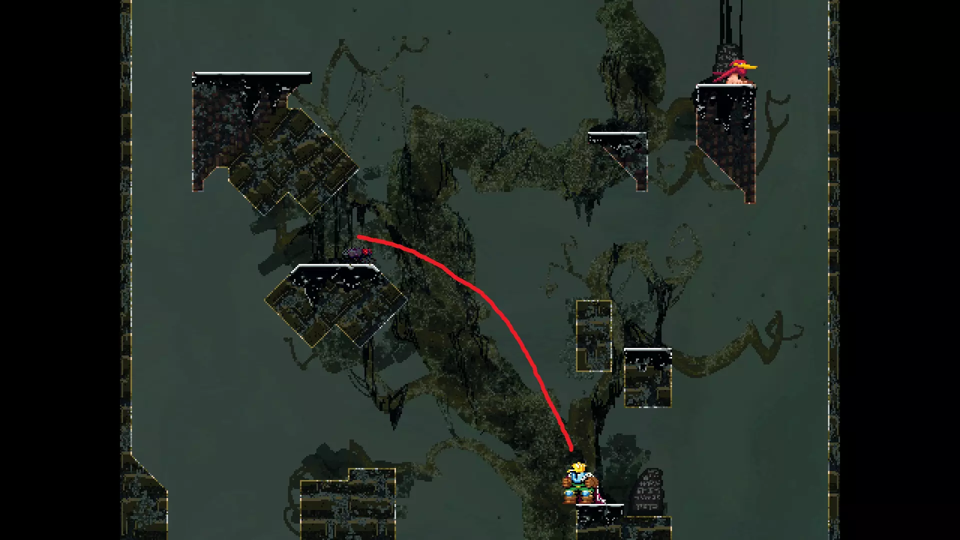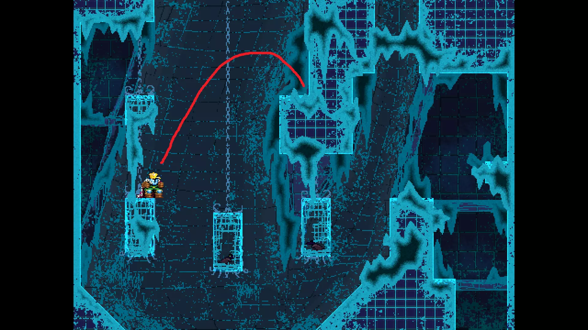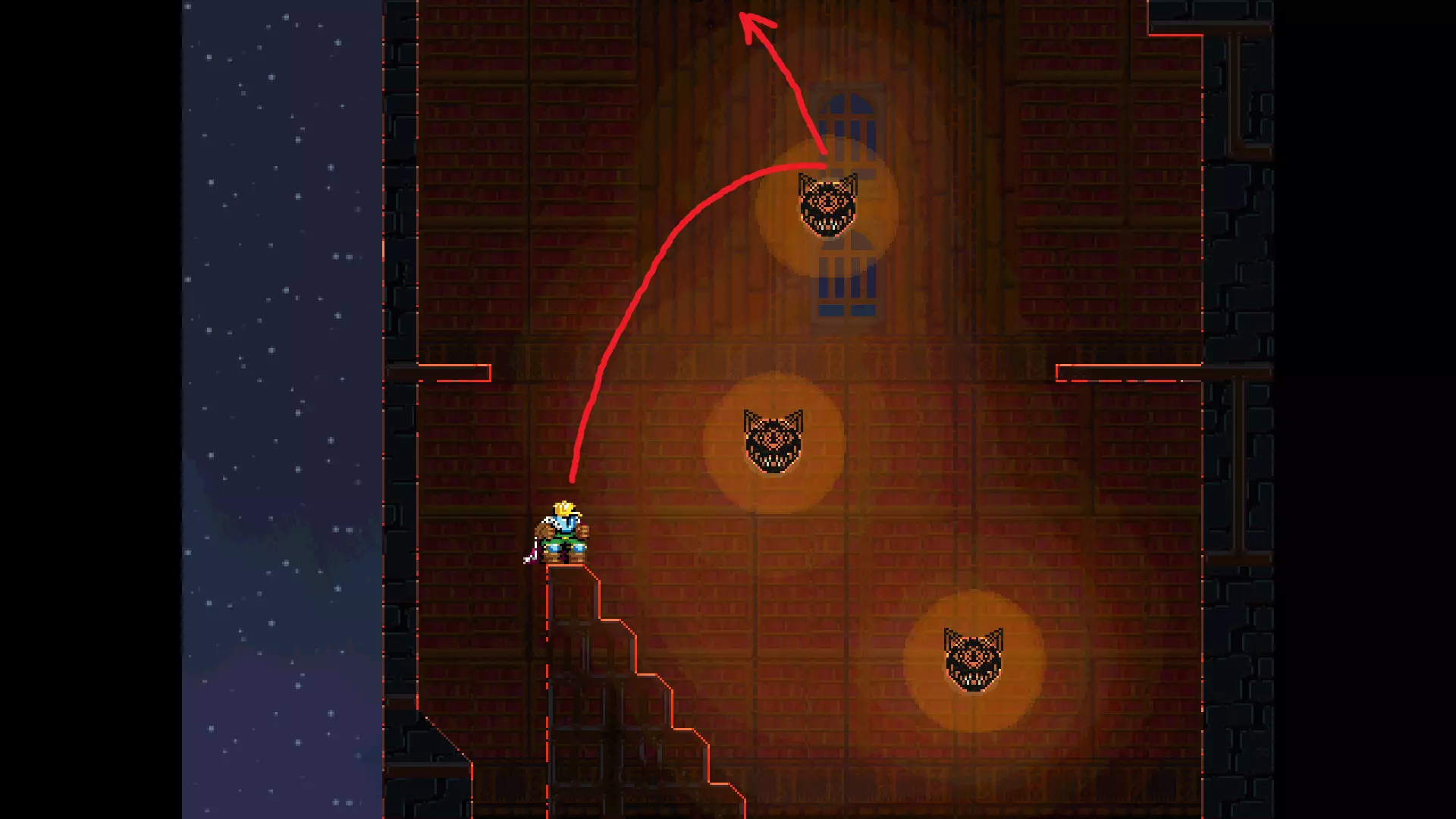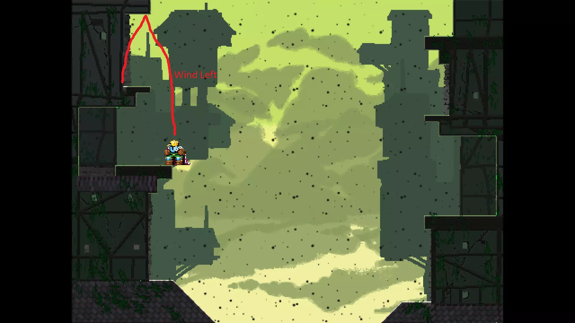 请注意,以下跳跃需要【亚像素级】的精准操作。即使你处于这个精确像素位置,也可能无法成功,除非你使用蛇形戒指稍微向右移动,确保自己处于正确的亚像素位置。