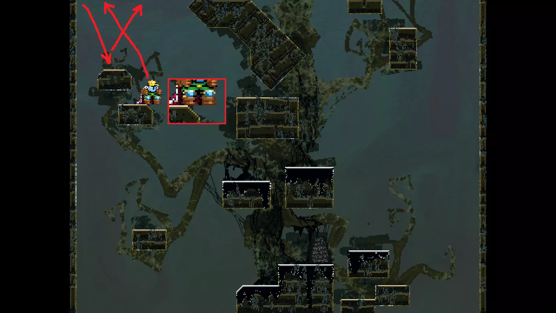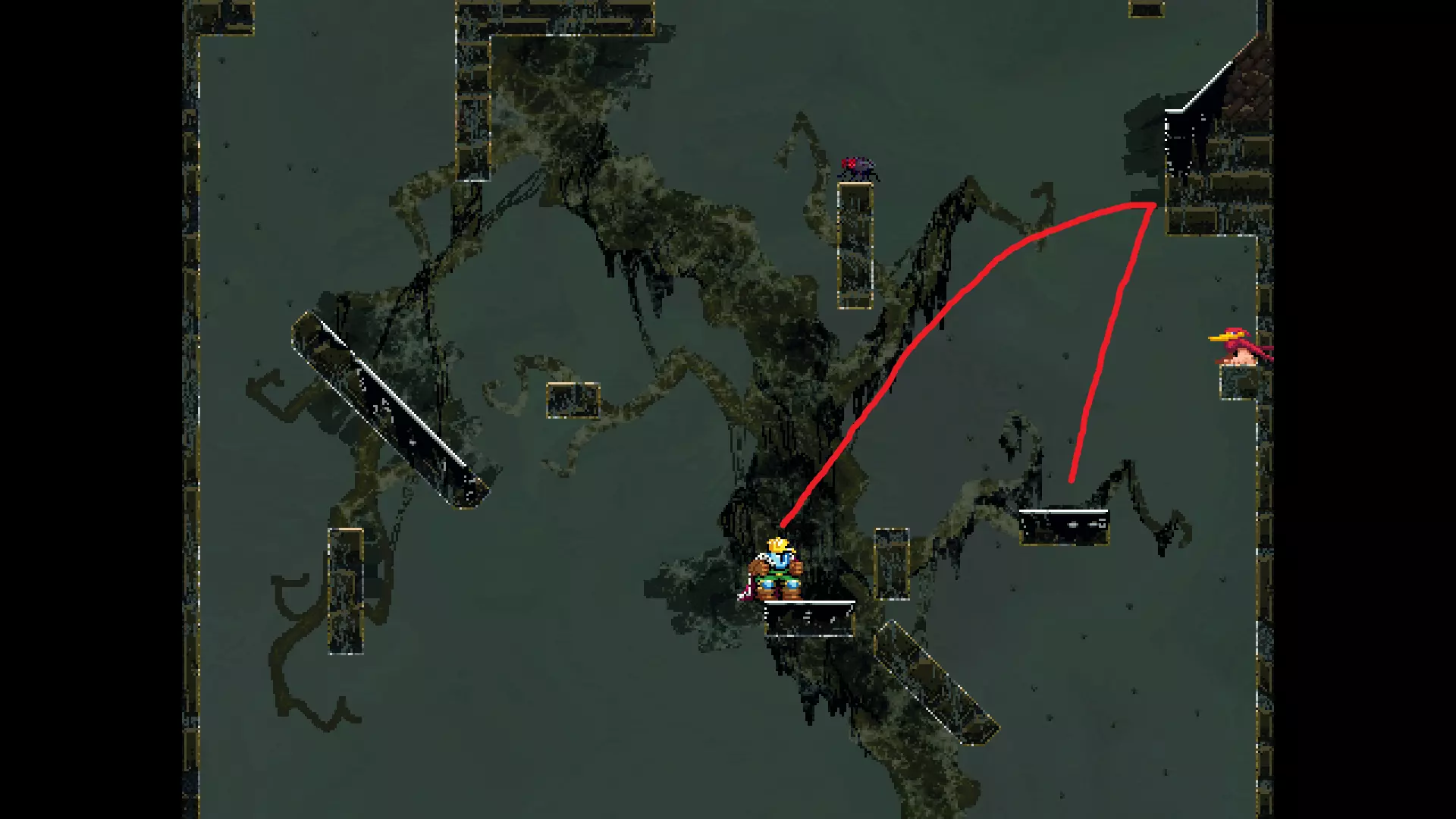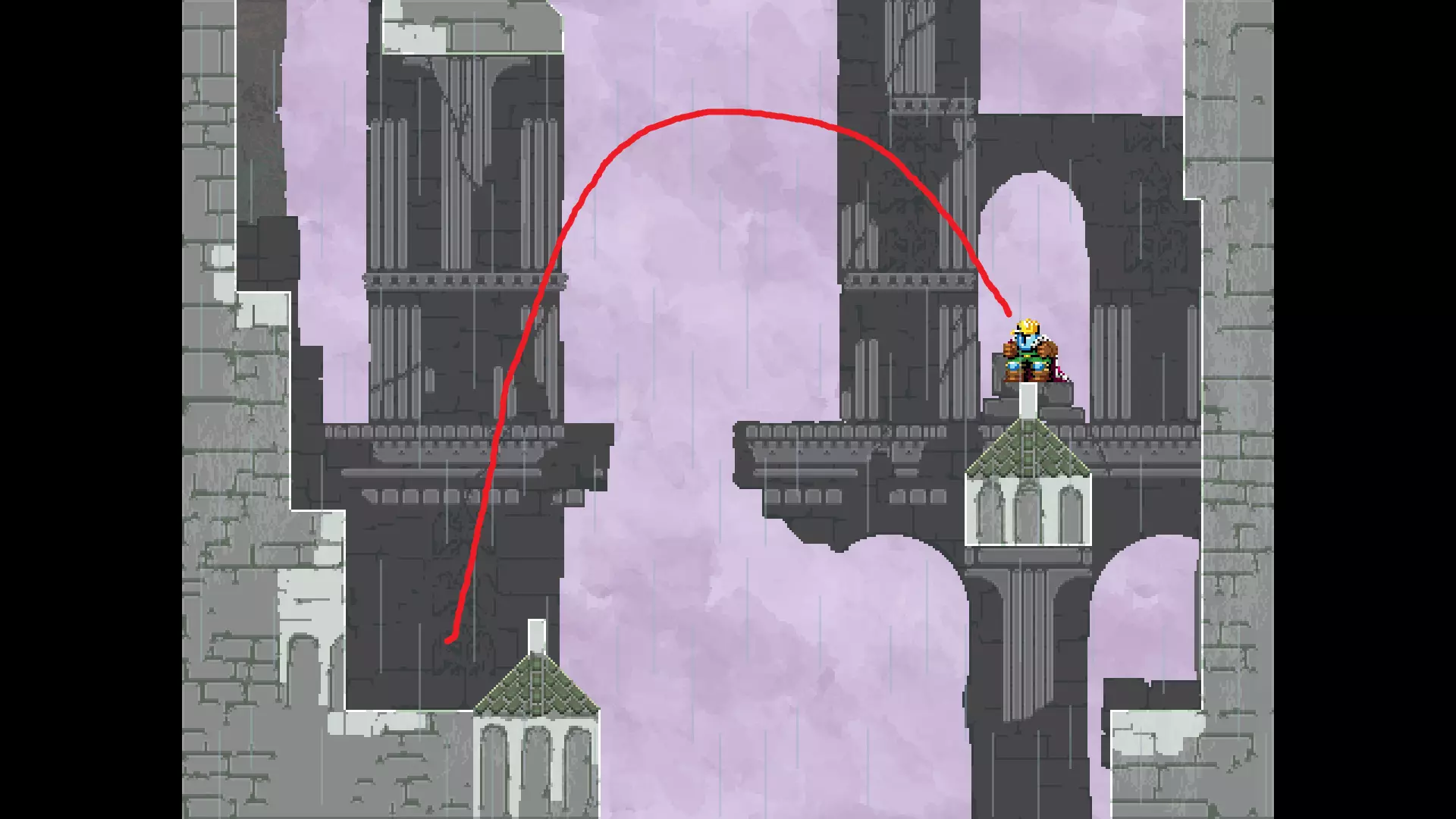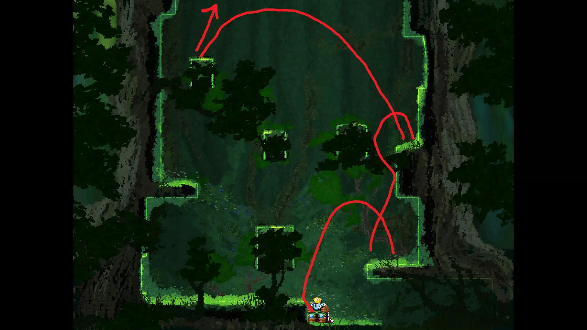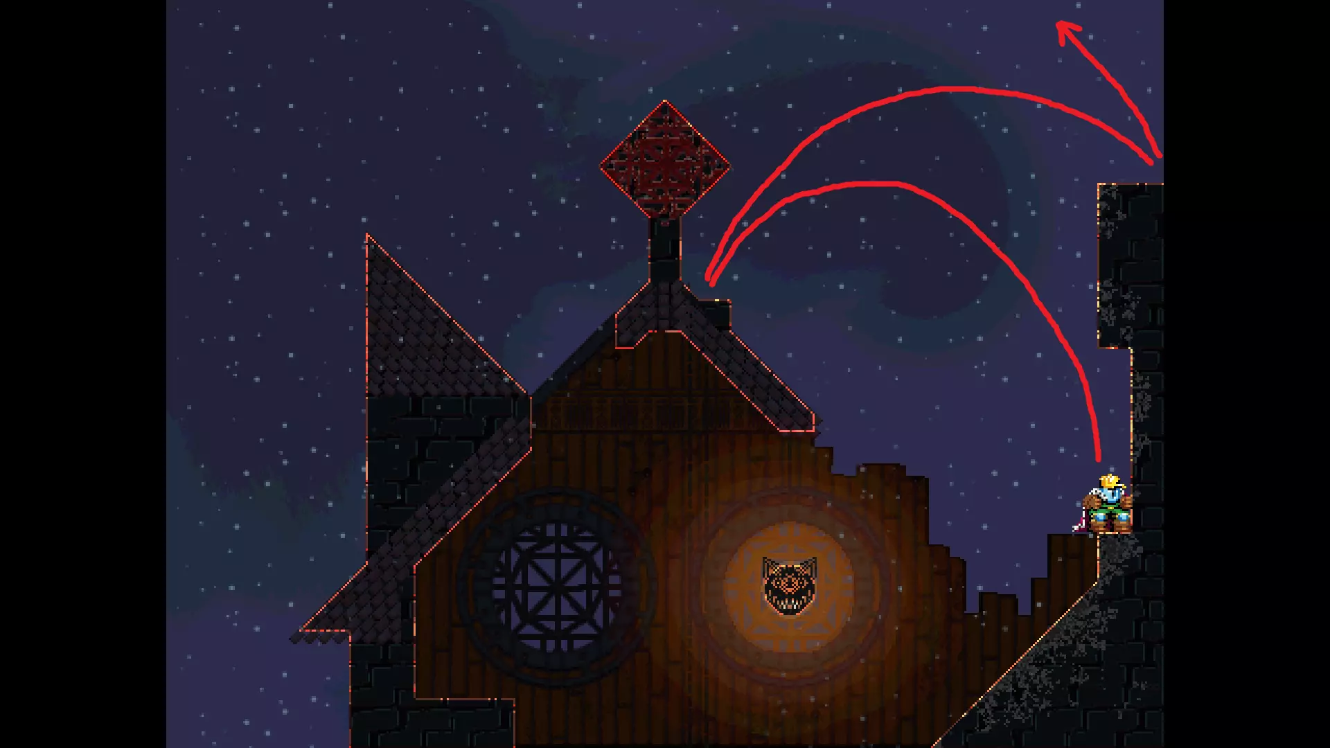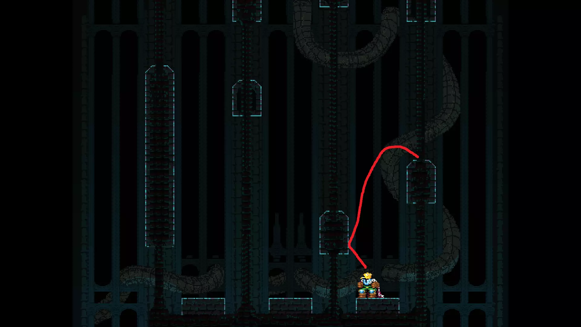 请注意,以下跳跃需要【亚像素级】的精准操作。即使你处于这个精确像素位置,也可能无法成功,除非你使用蛇形戒指稍微向右移动,确保自己处于正确的亚像素位置。