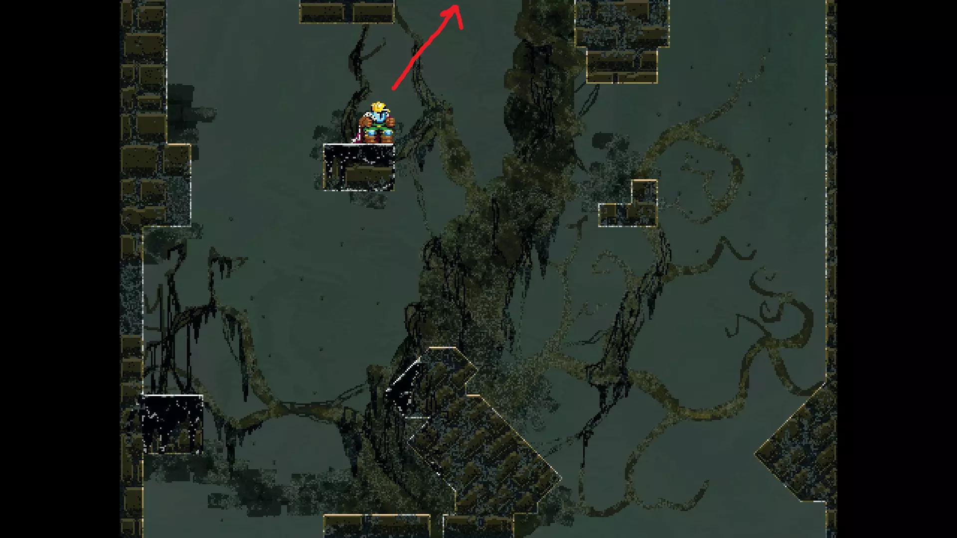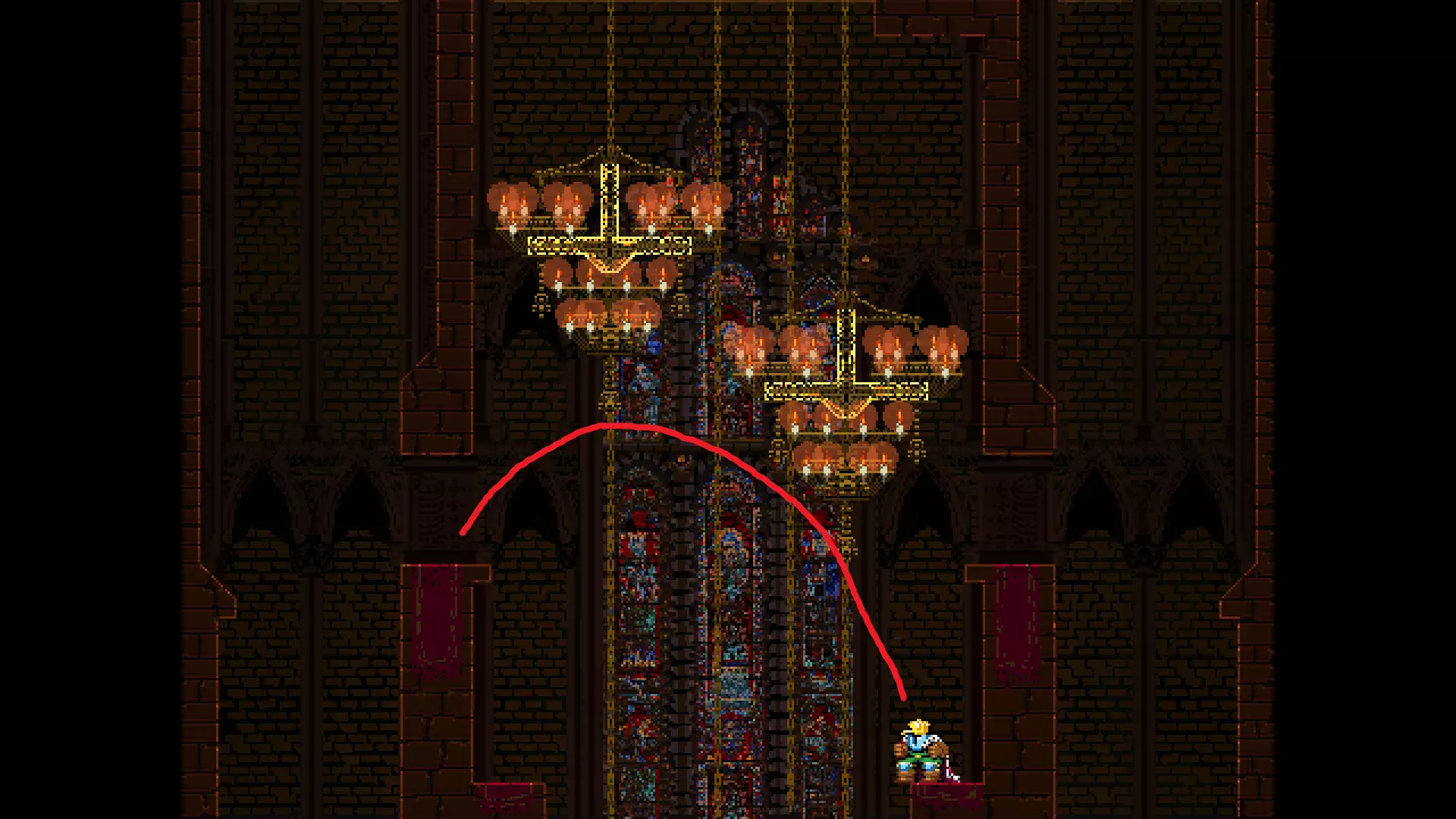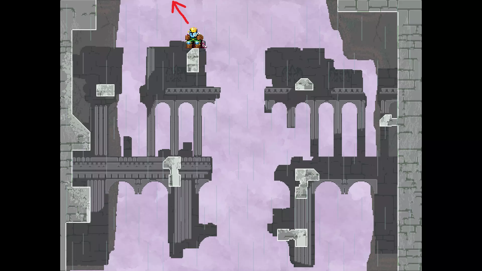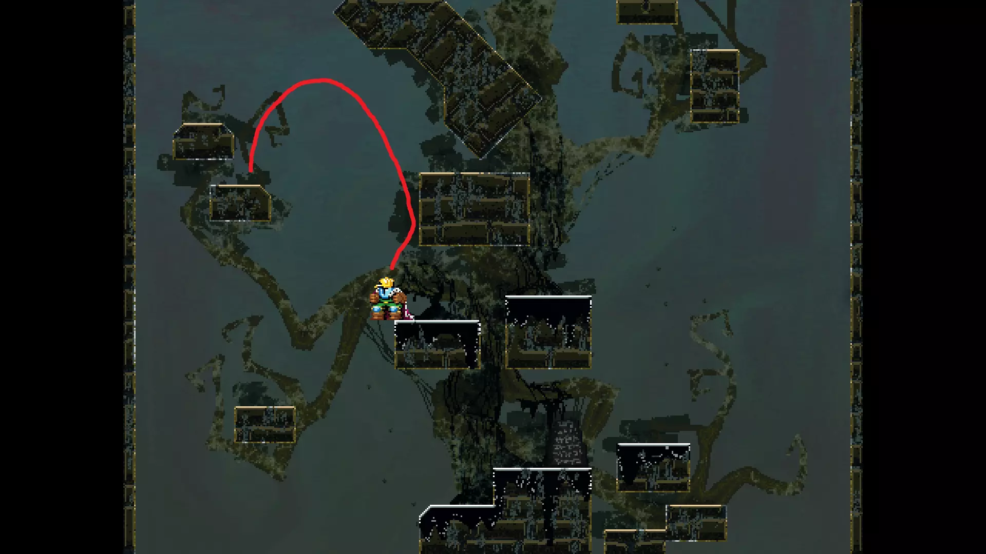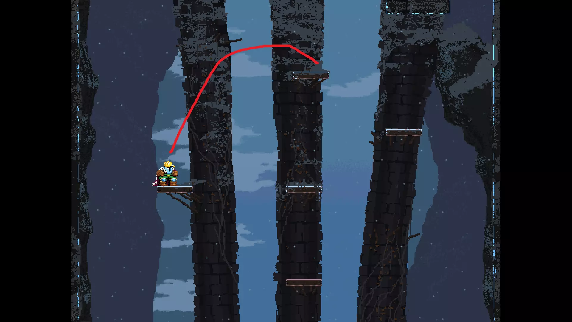 请注意,以下跳跃需要【亚像素级】的精准操作。即使你处于这个精确像素位置,也可能无法成功,除非你使用蛇形戒指稍微向右移动,确保自己处于正确的亚像素位置。