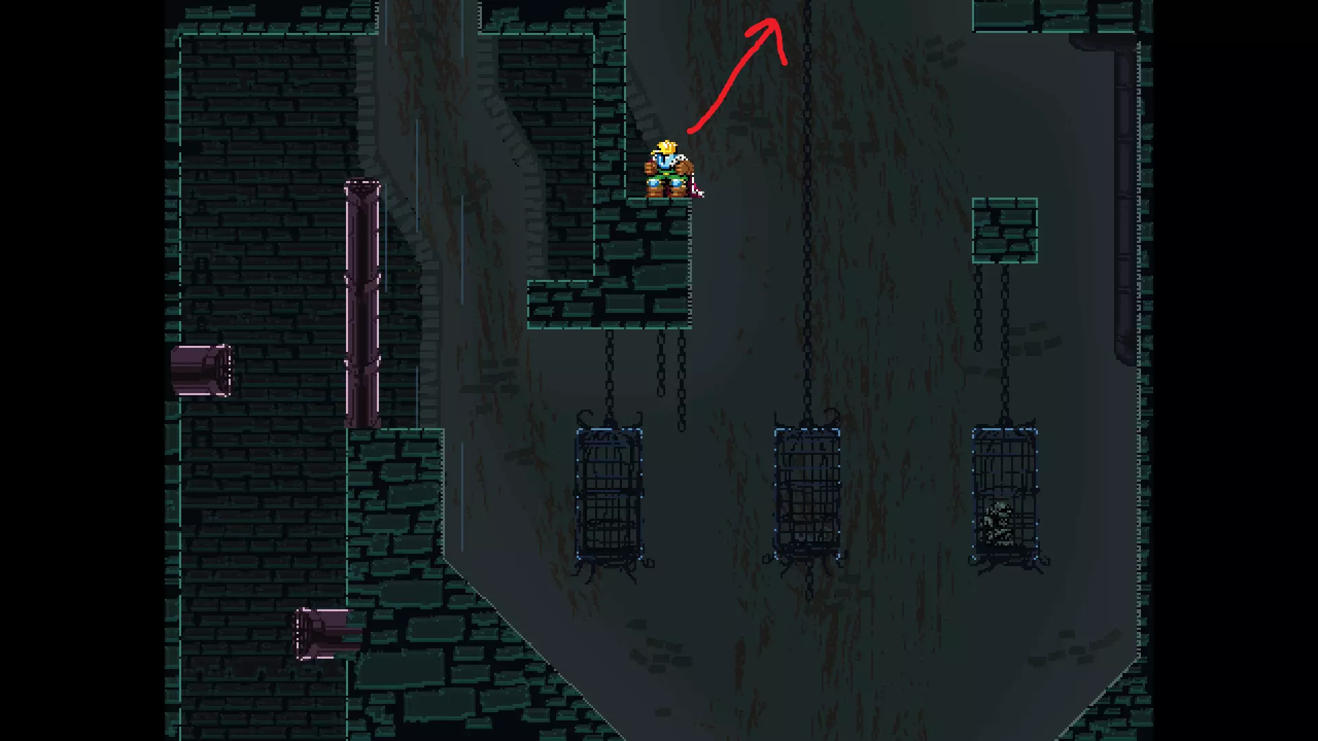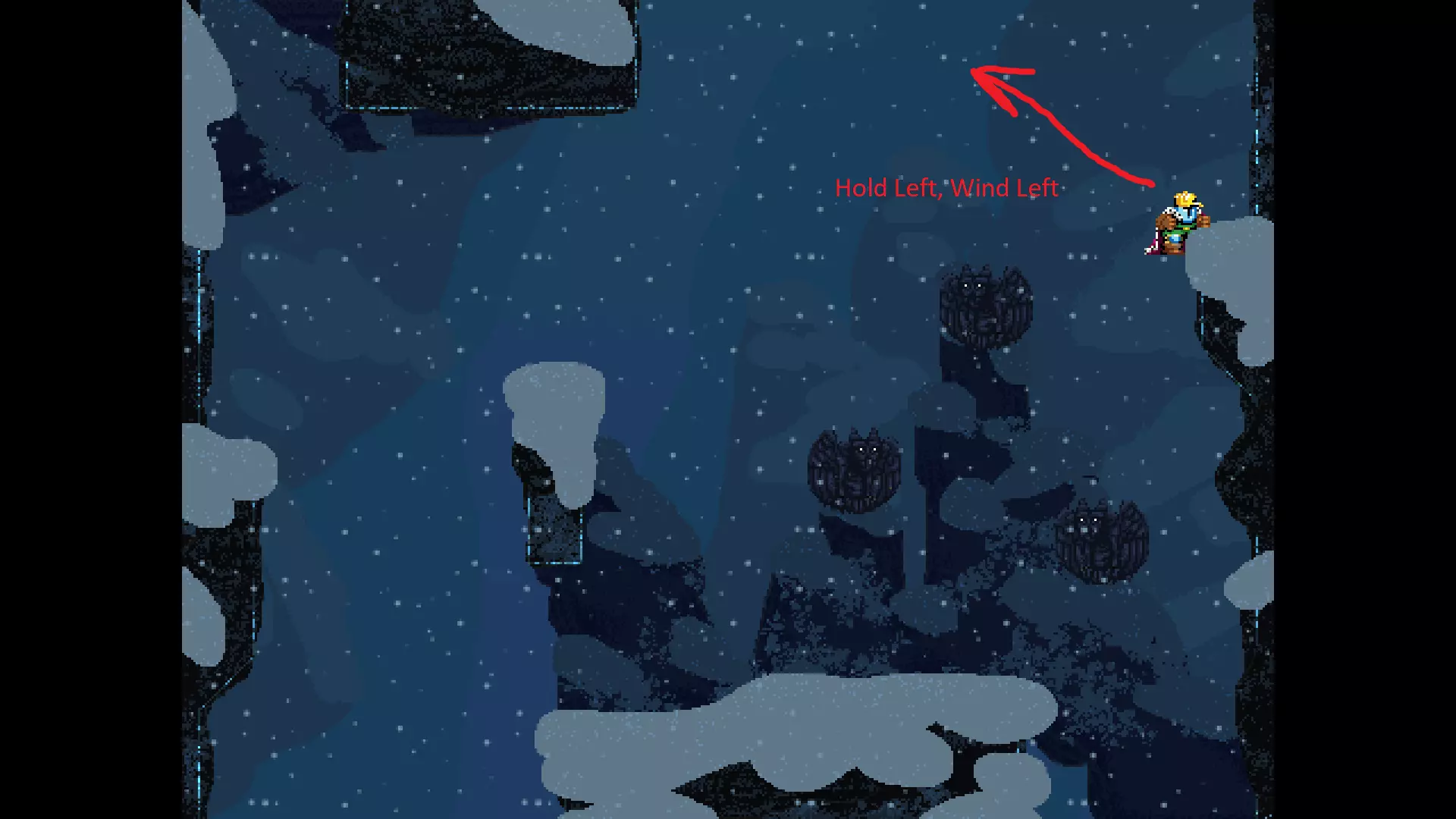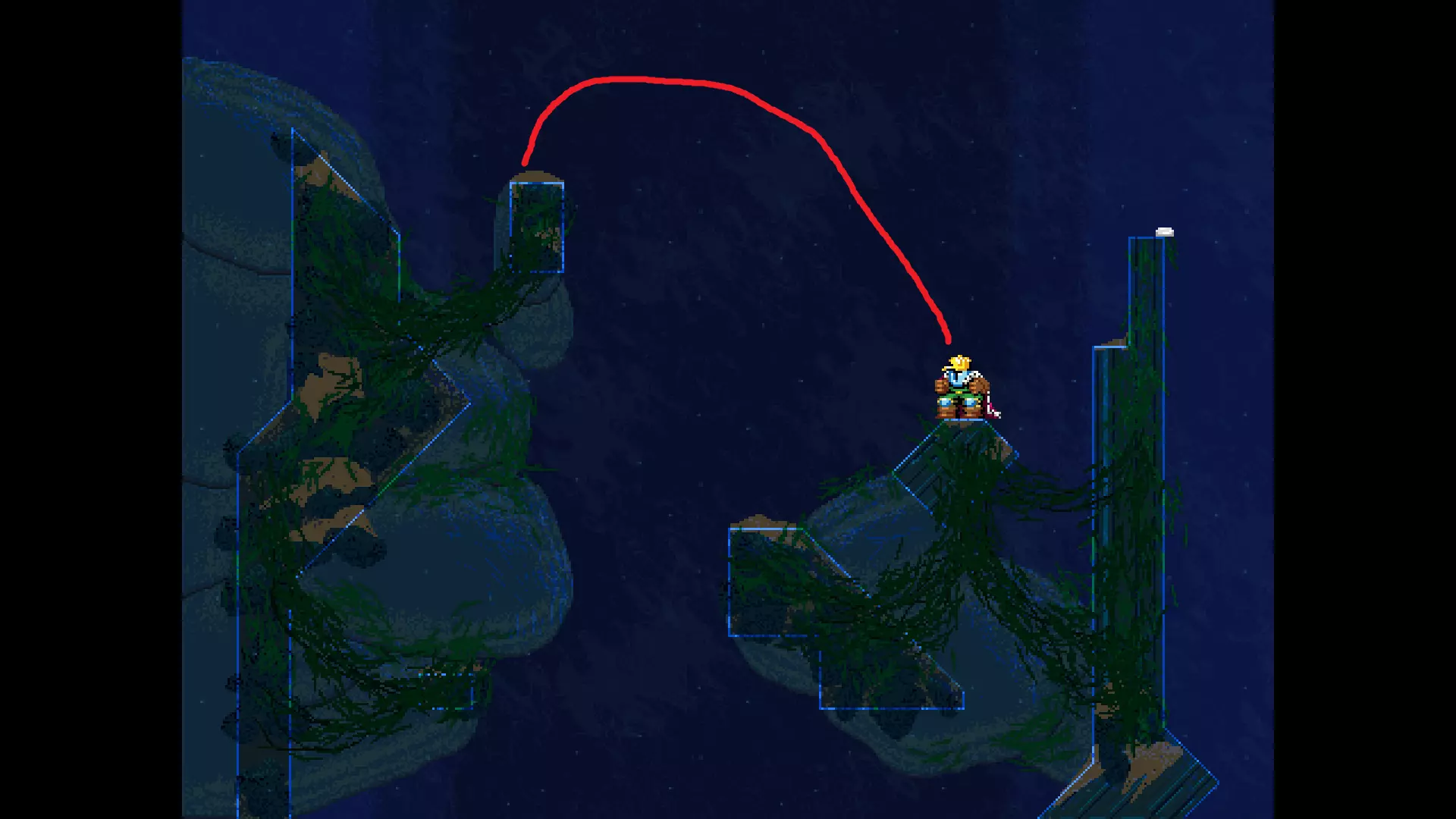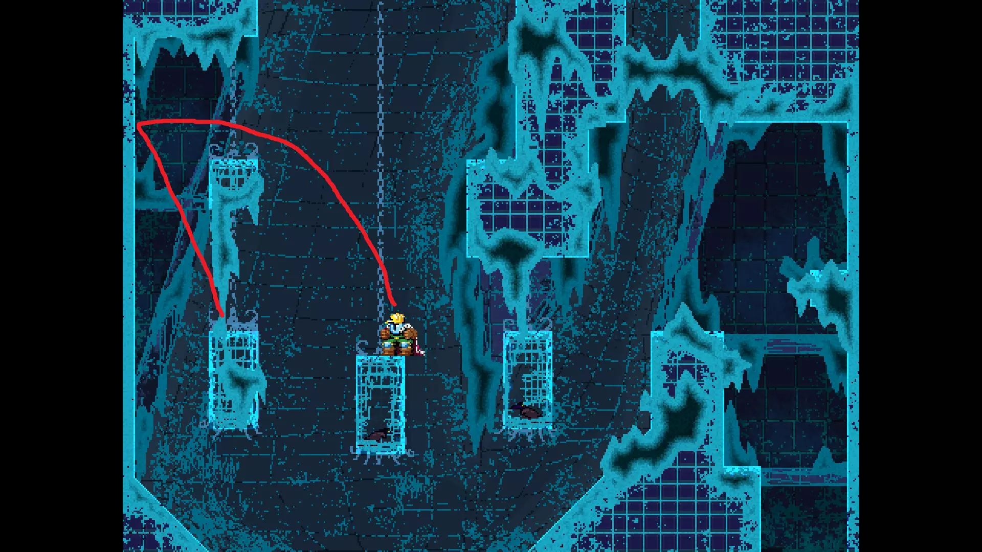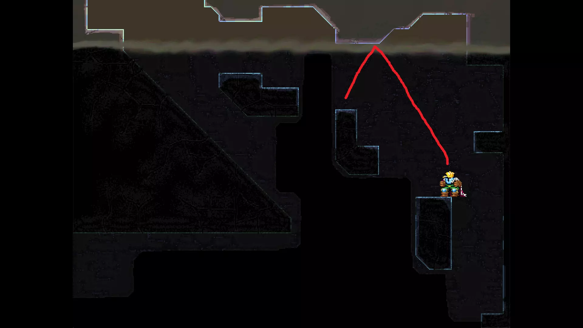 请注意,以下跳跃需要【亚像素级】的精准操作。即使你处于这个精确像素位置,也可能无法成功,除非你使用蛇形戒指稍微向右移动,确保自己处于正确的亚像素位置。