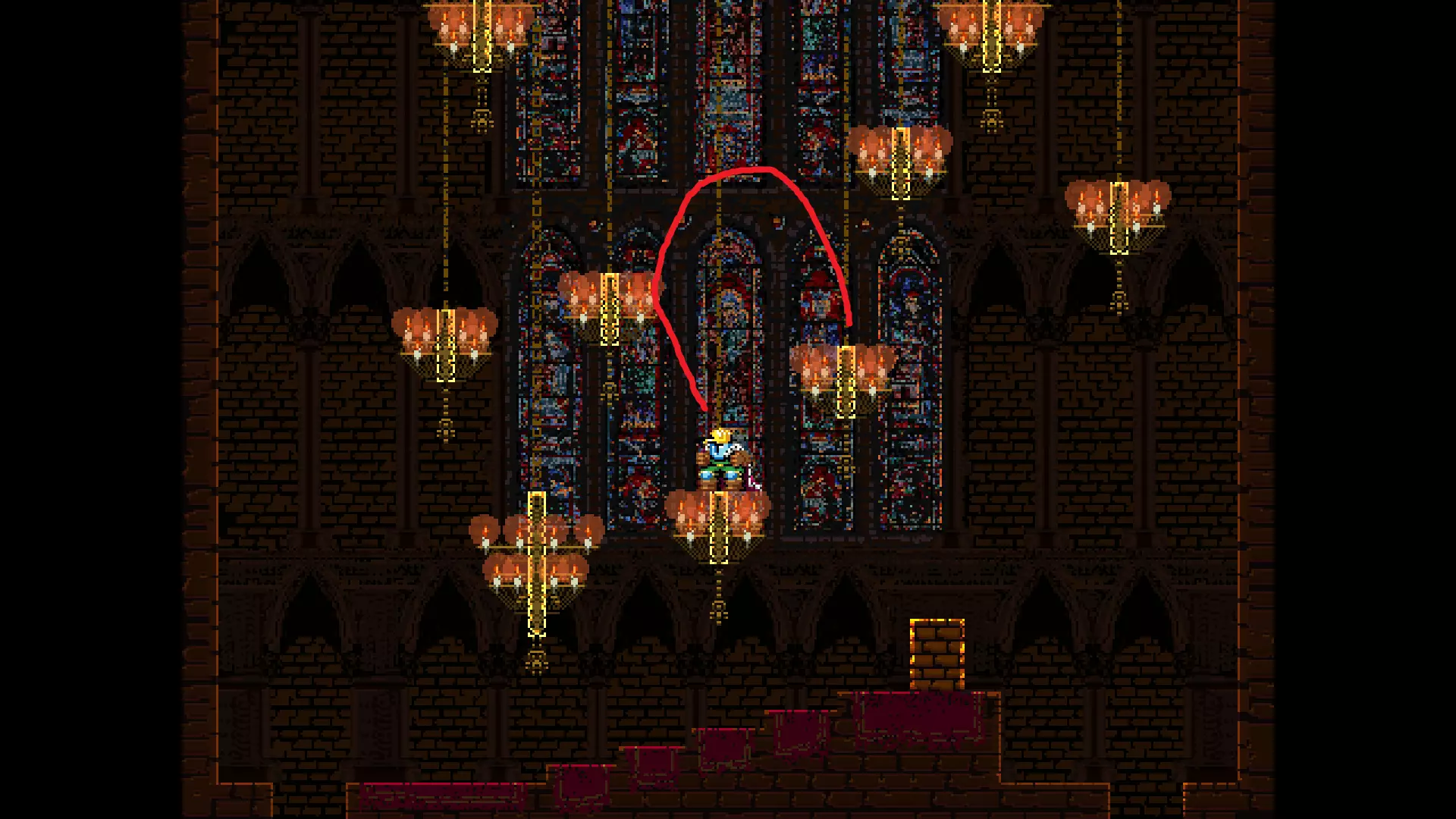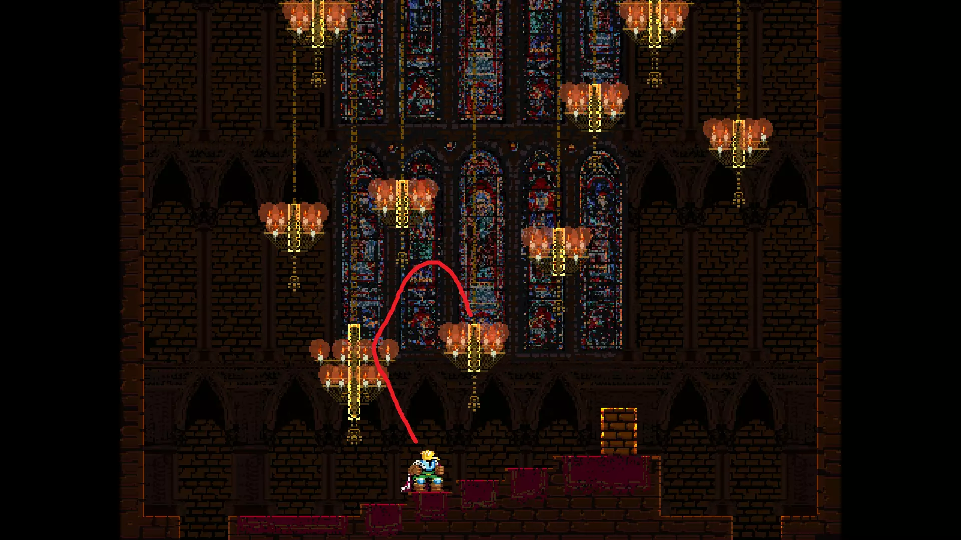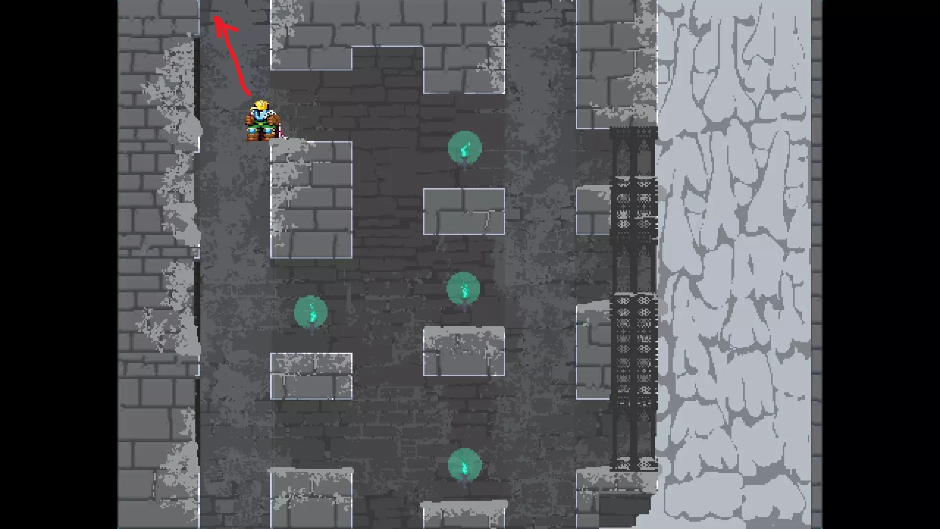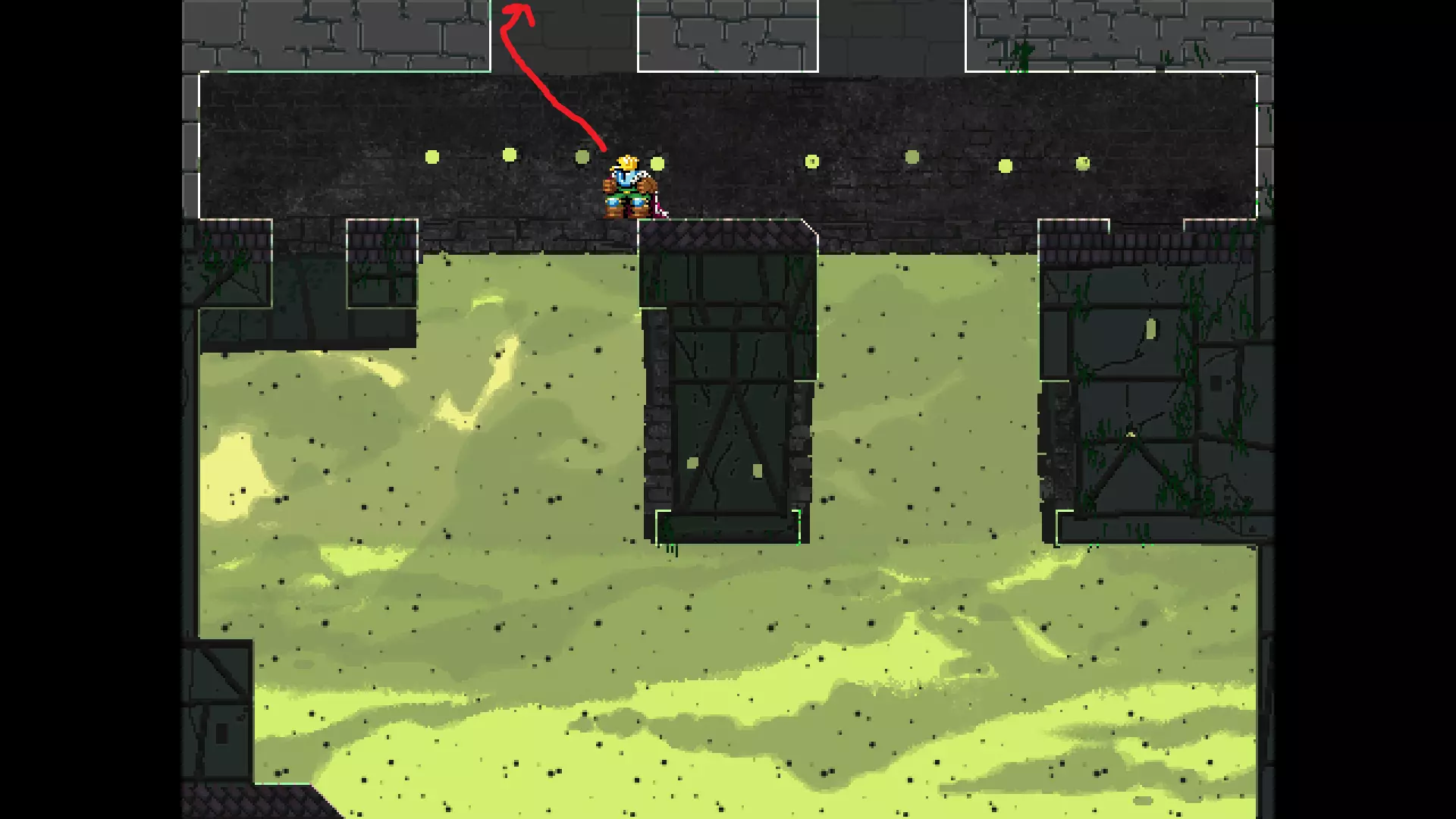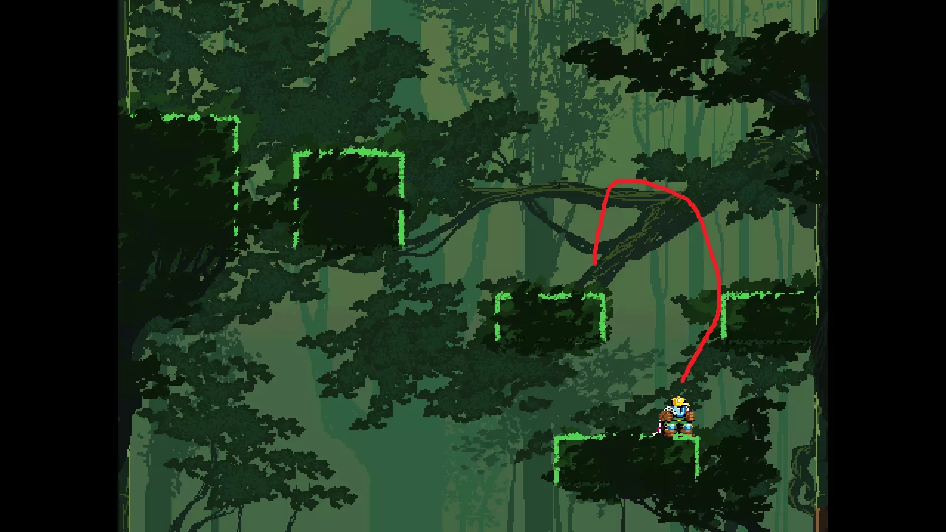 请注意,以下跳跃需要【亚像素级】的精准操作。即使你处于这个精确像素位置,也可能无法成功,除非你使用蛇形戒指稍微向右移动,确保自己处于正确的亚像素位置。