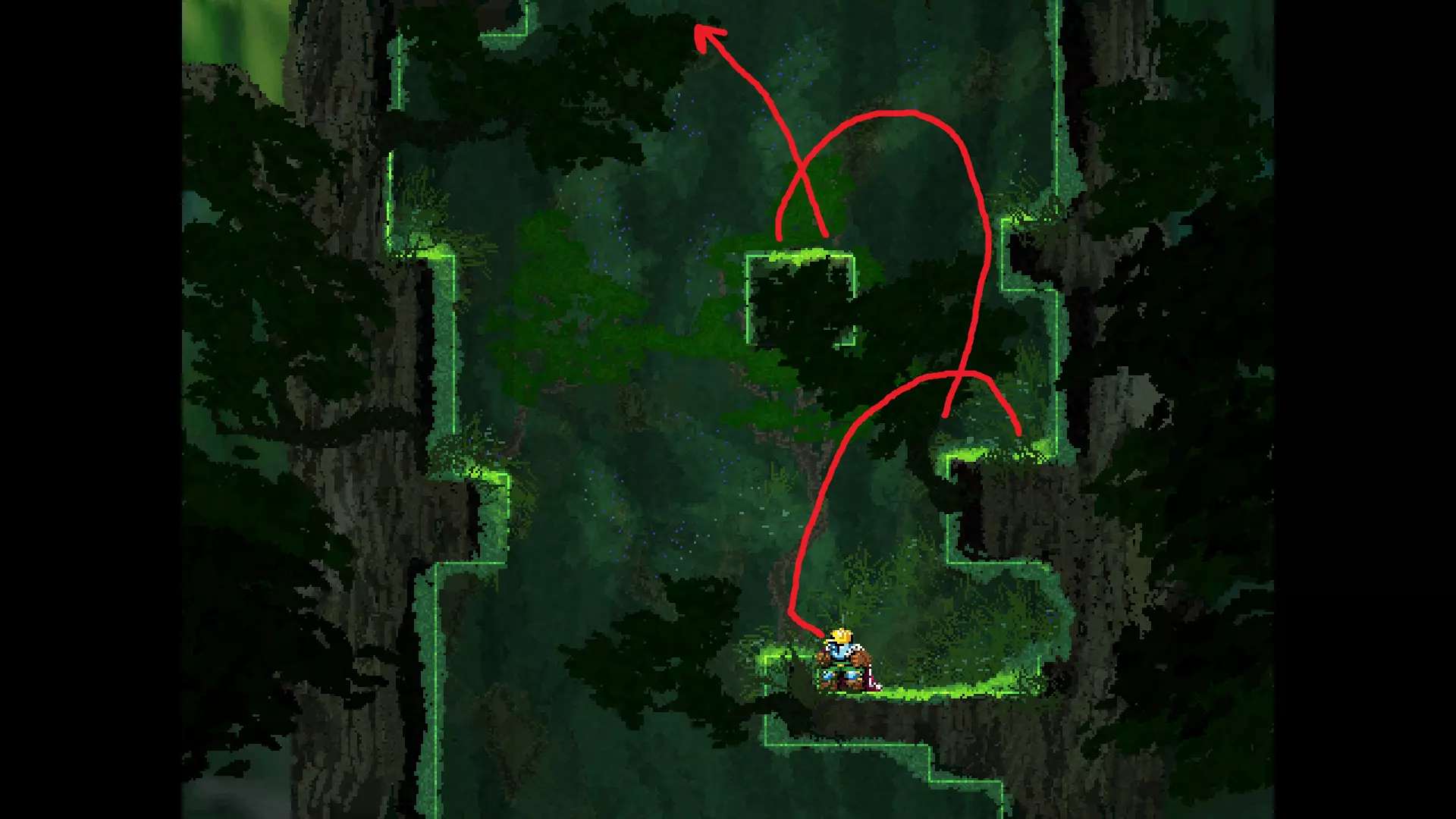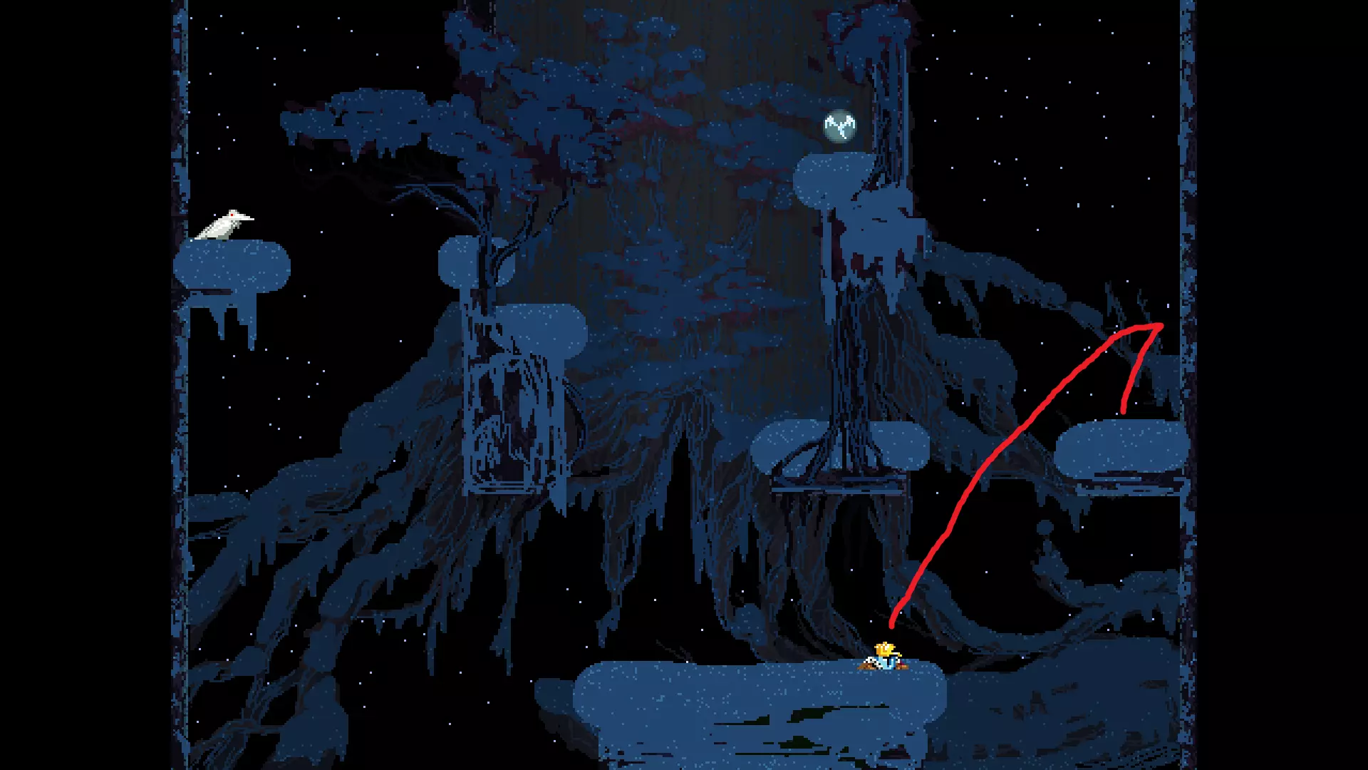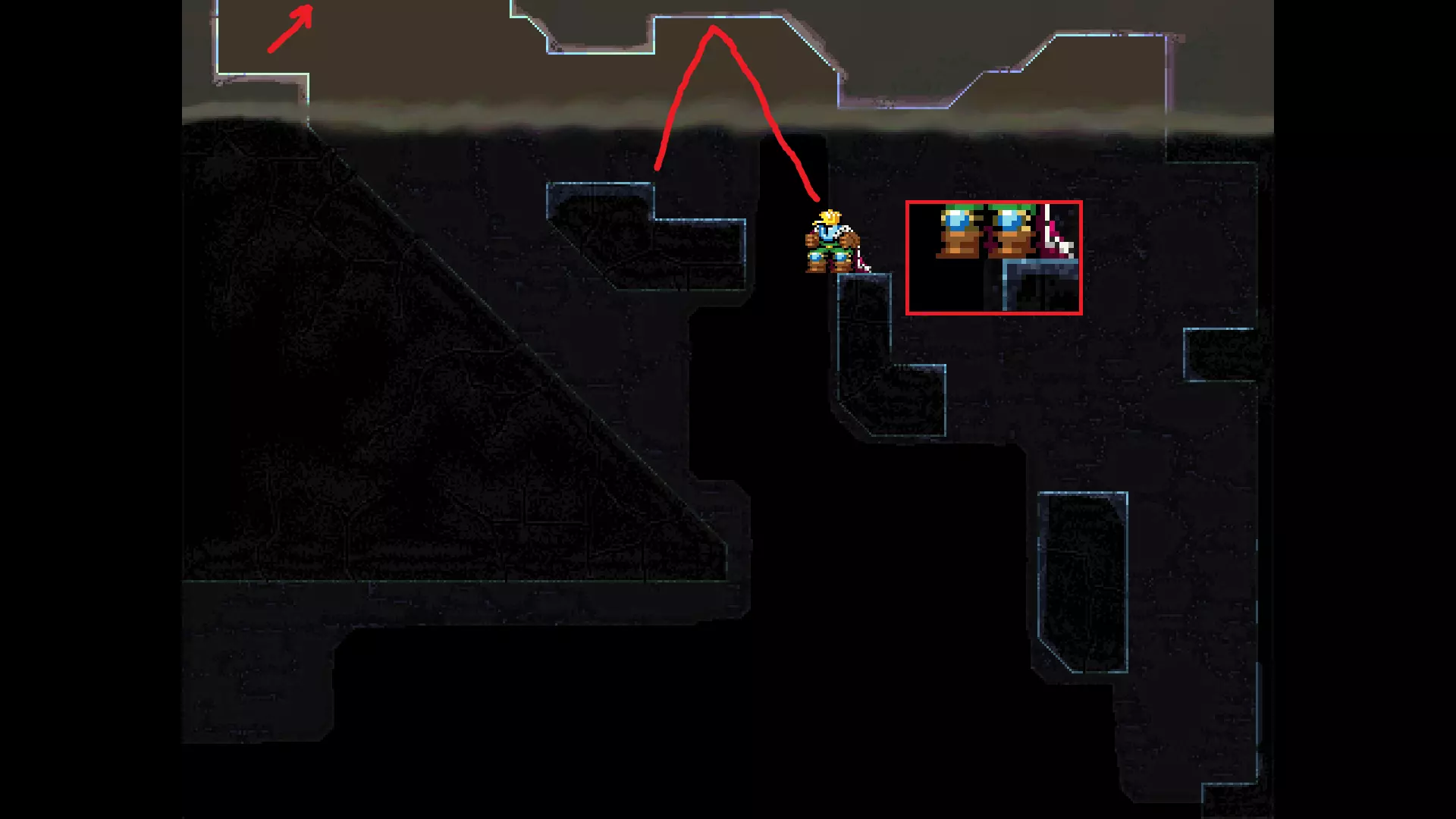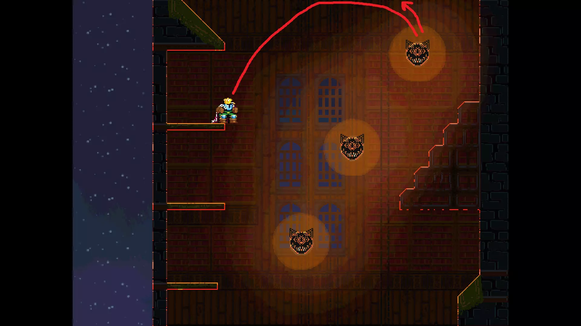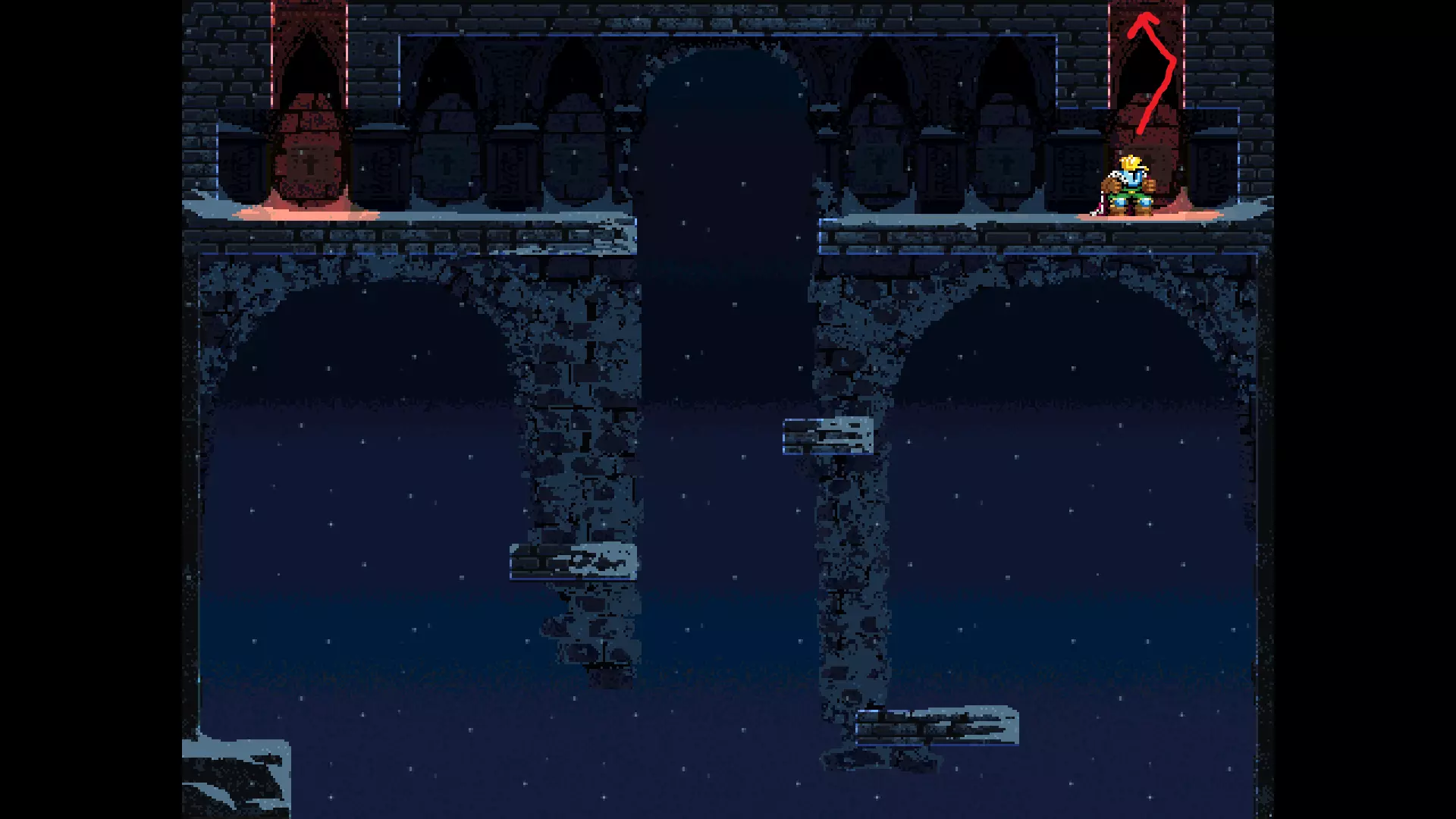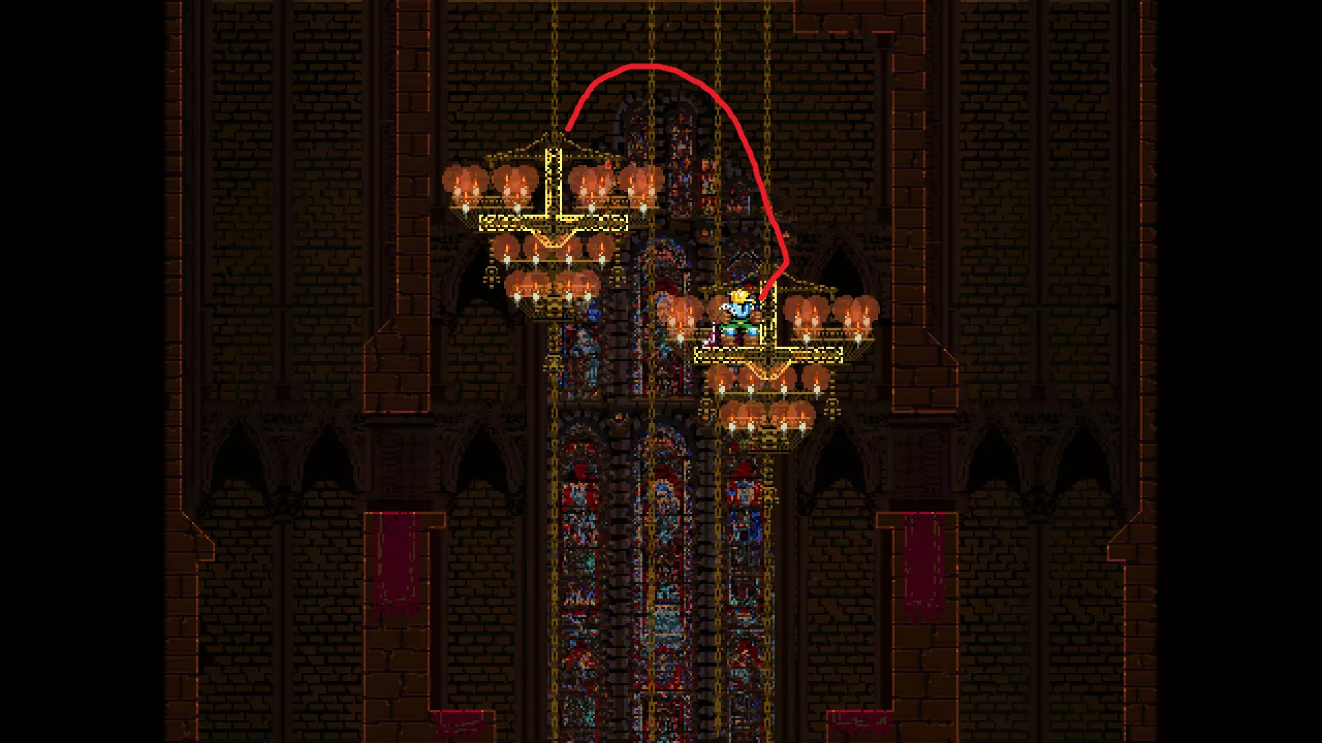 请注意,以下跳跃需要【亚像素级】的精准操作。即使你处于这个精确像素位置,也可能无法成功,除非你使用蛇形戒指稍微向右移动,确保自己处于正确的亚像素位置。