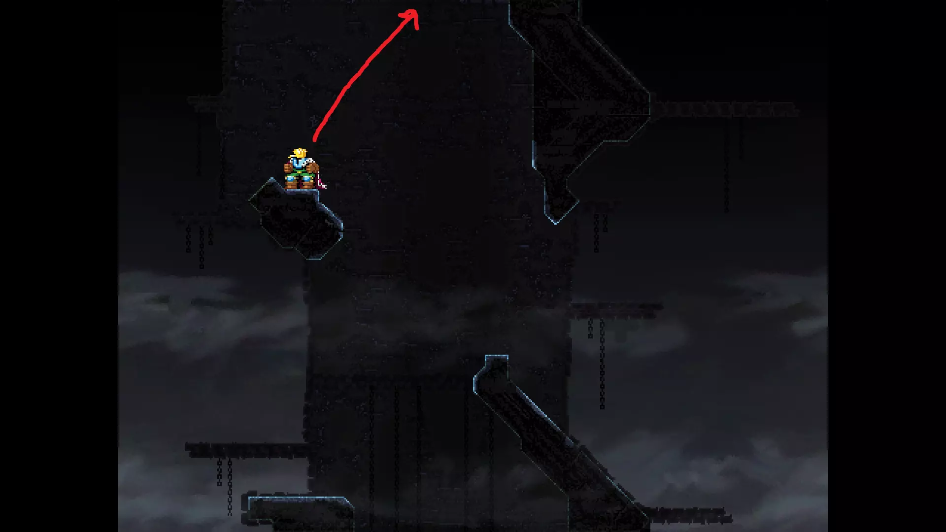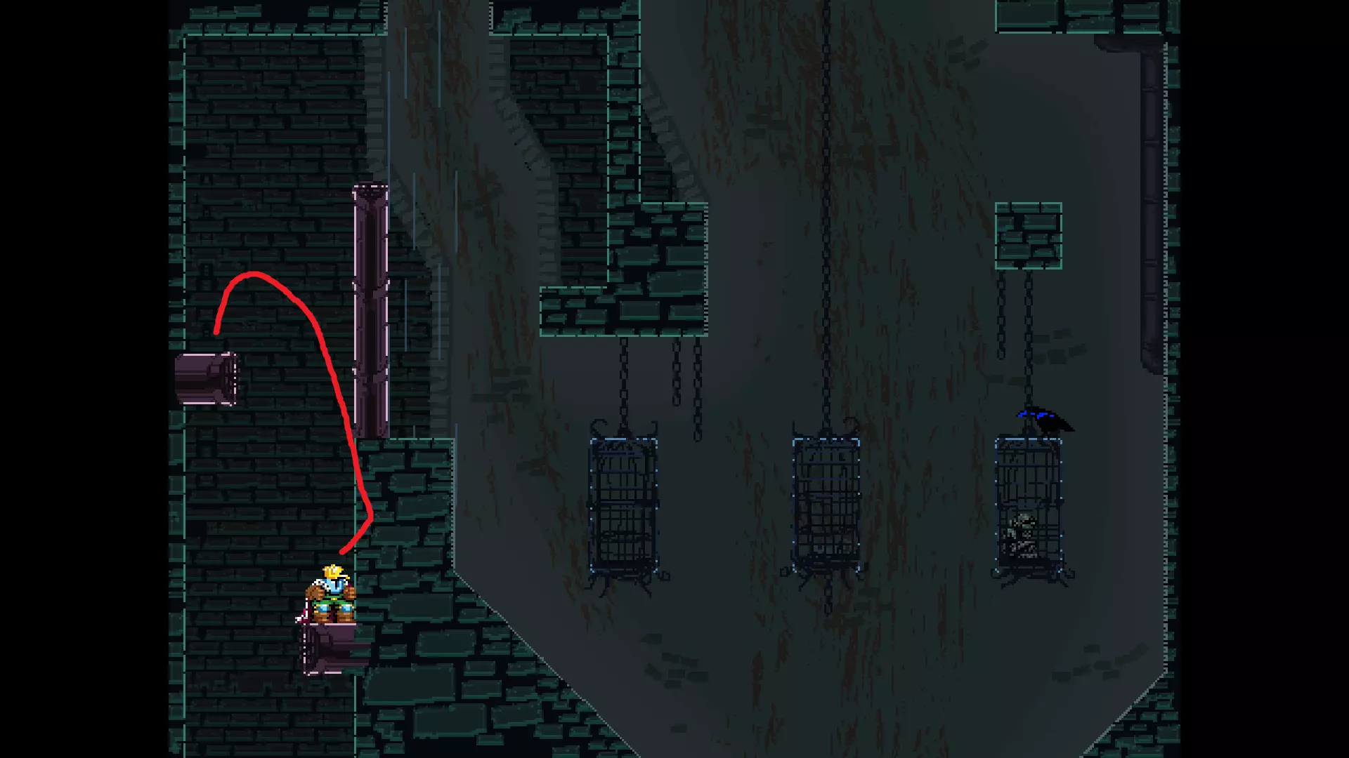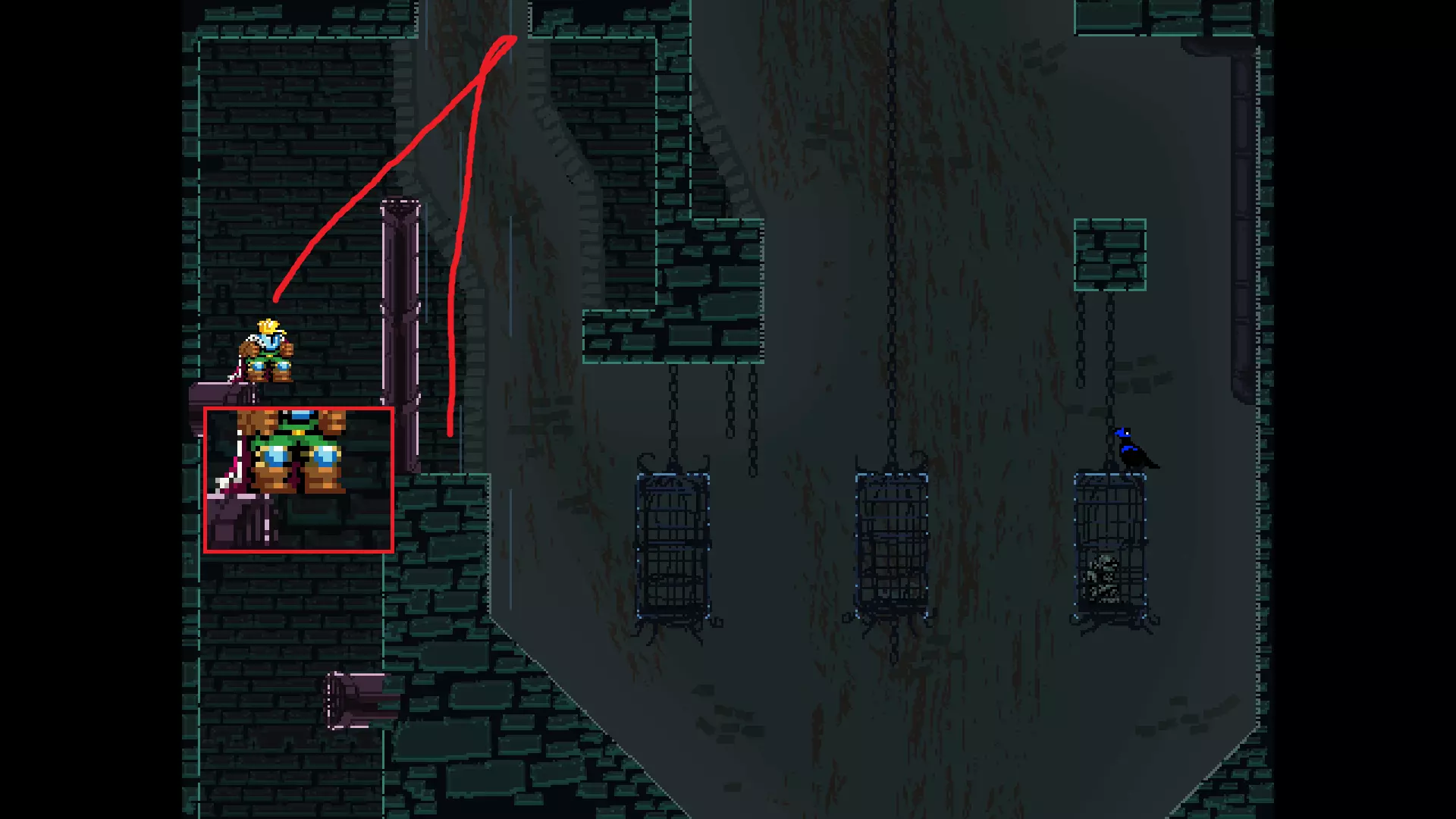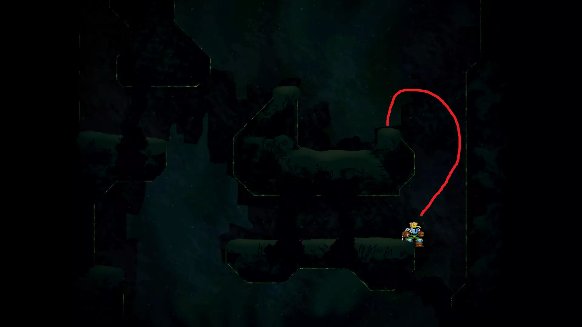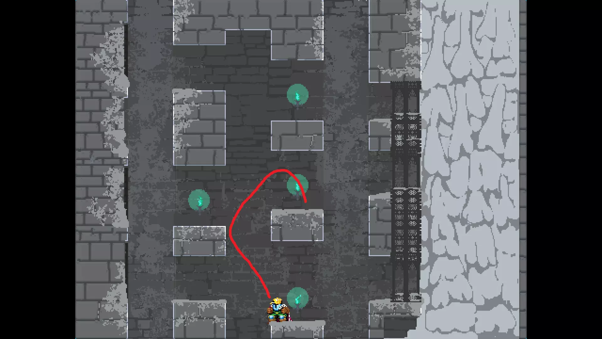 请注意,以下跳跃需要【亚像素级】的精准操作。即使你处于这个精确像素位置,也可能无法成功,除非你使用蛇形戒指稍微向右移动,确保自己处于正确的亚像素位置。
