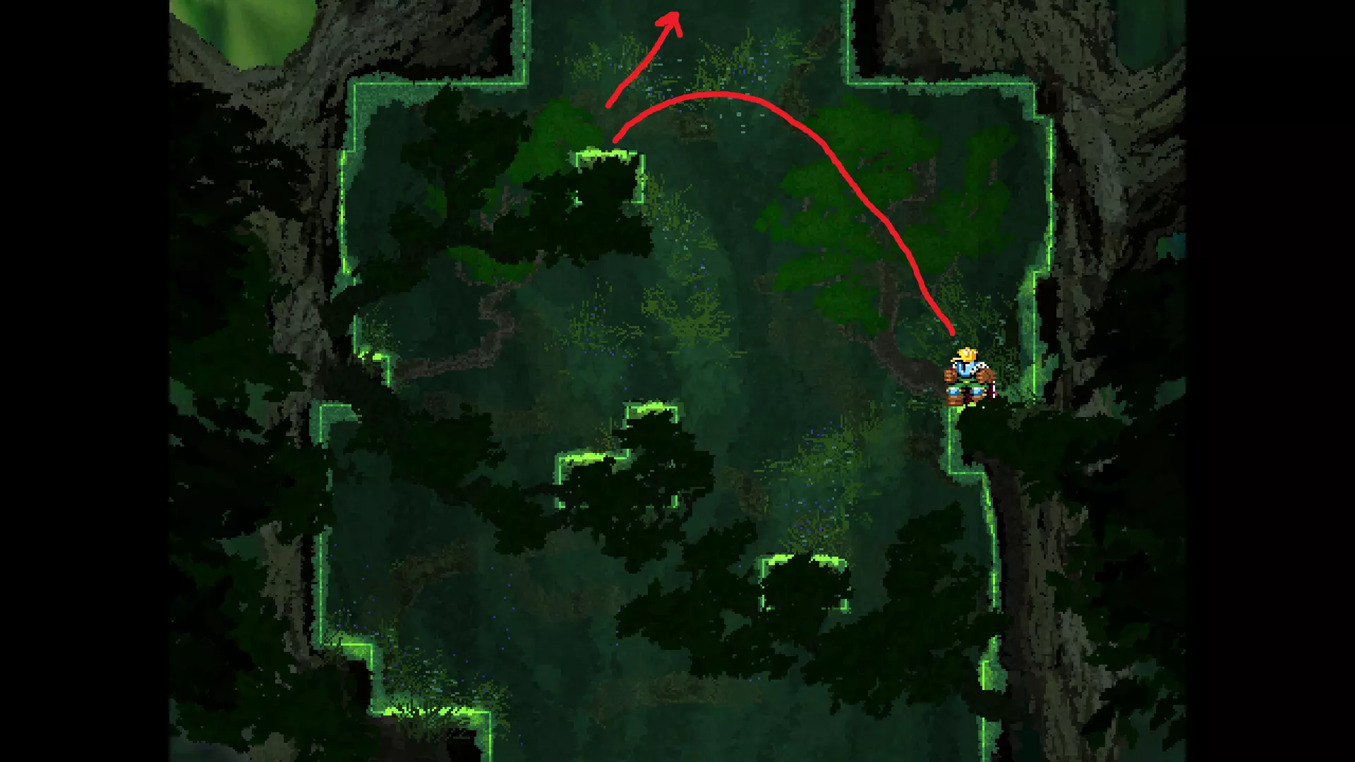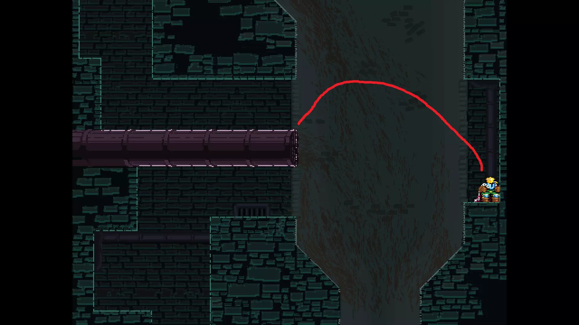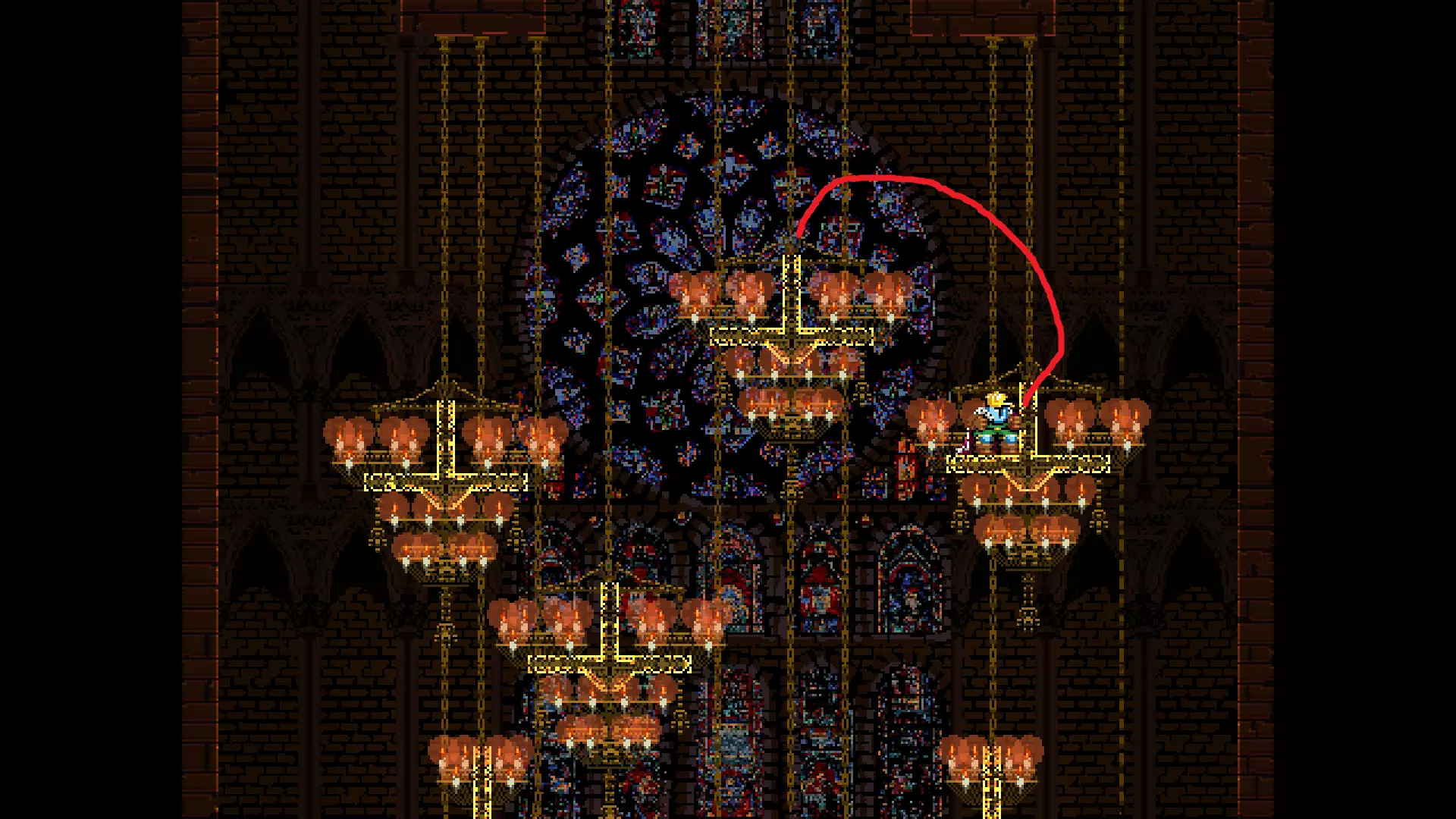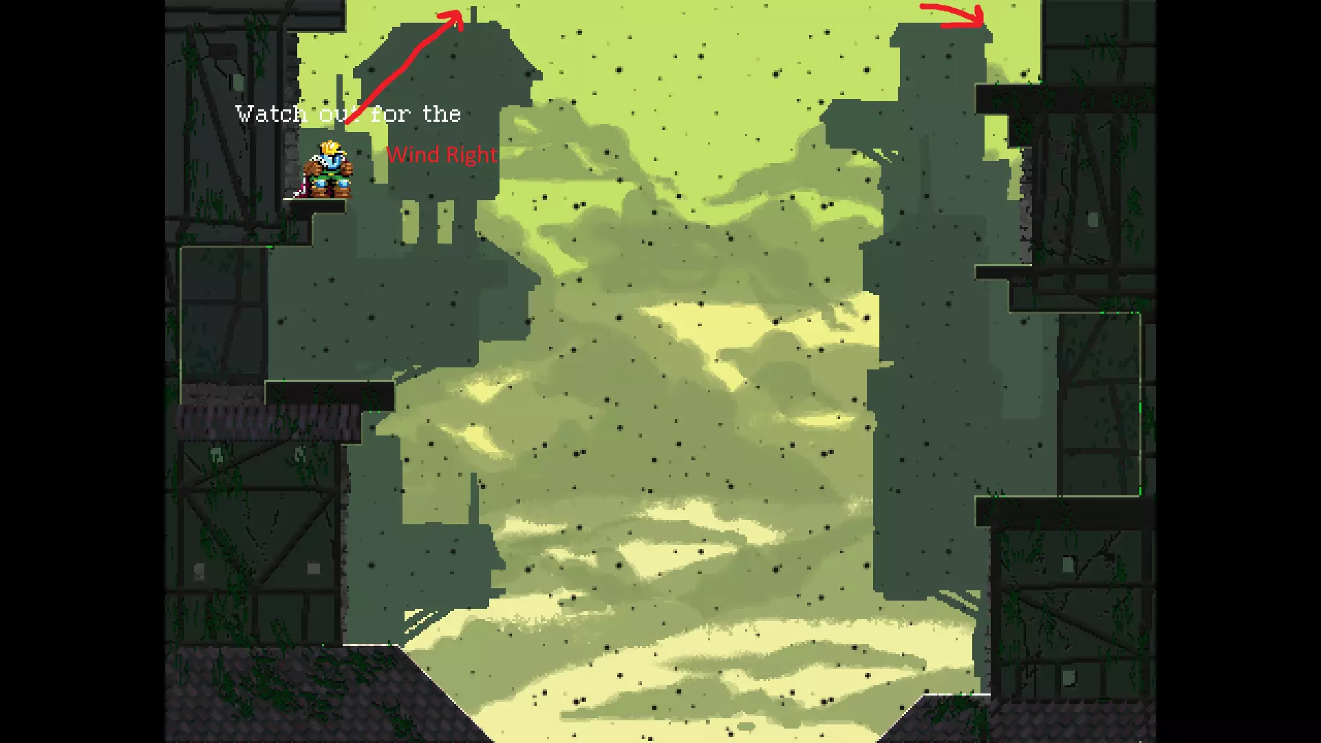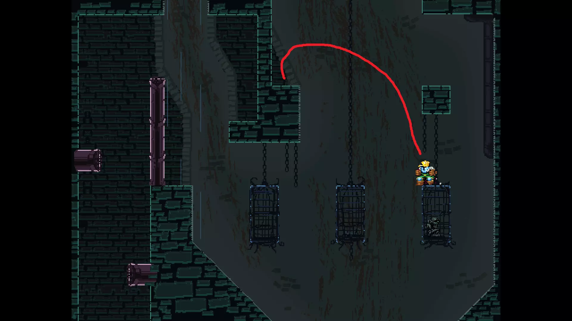请注意,以下跳跃需要【亚像素级】的精准操作。即使你处于这个精确像素位置,也可能无法成功,除非你使用蛇形戒指稍微向右移动,确保自己处于正确的亚像素位置。