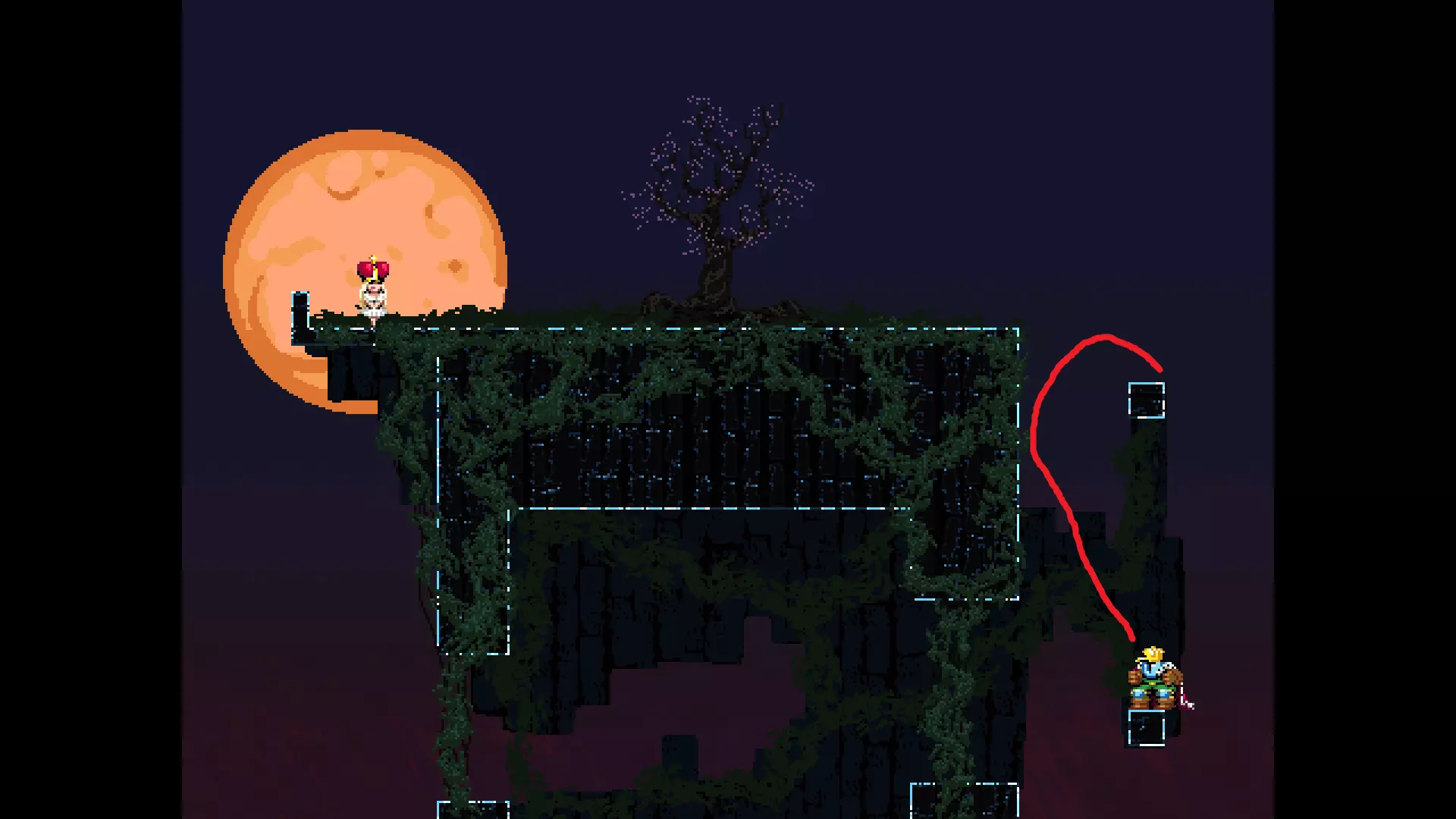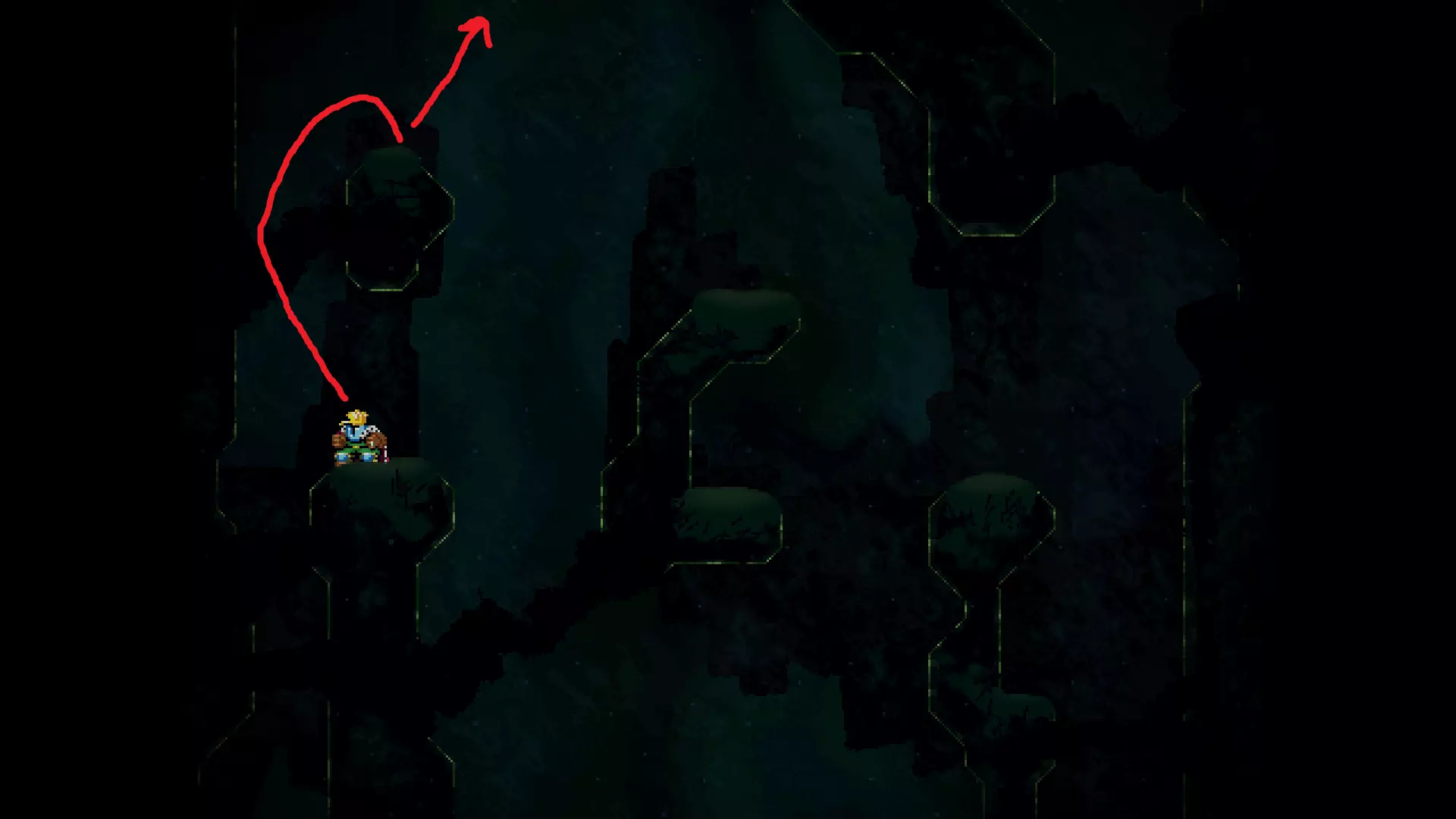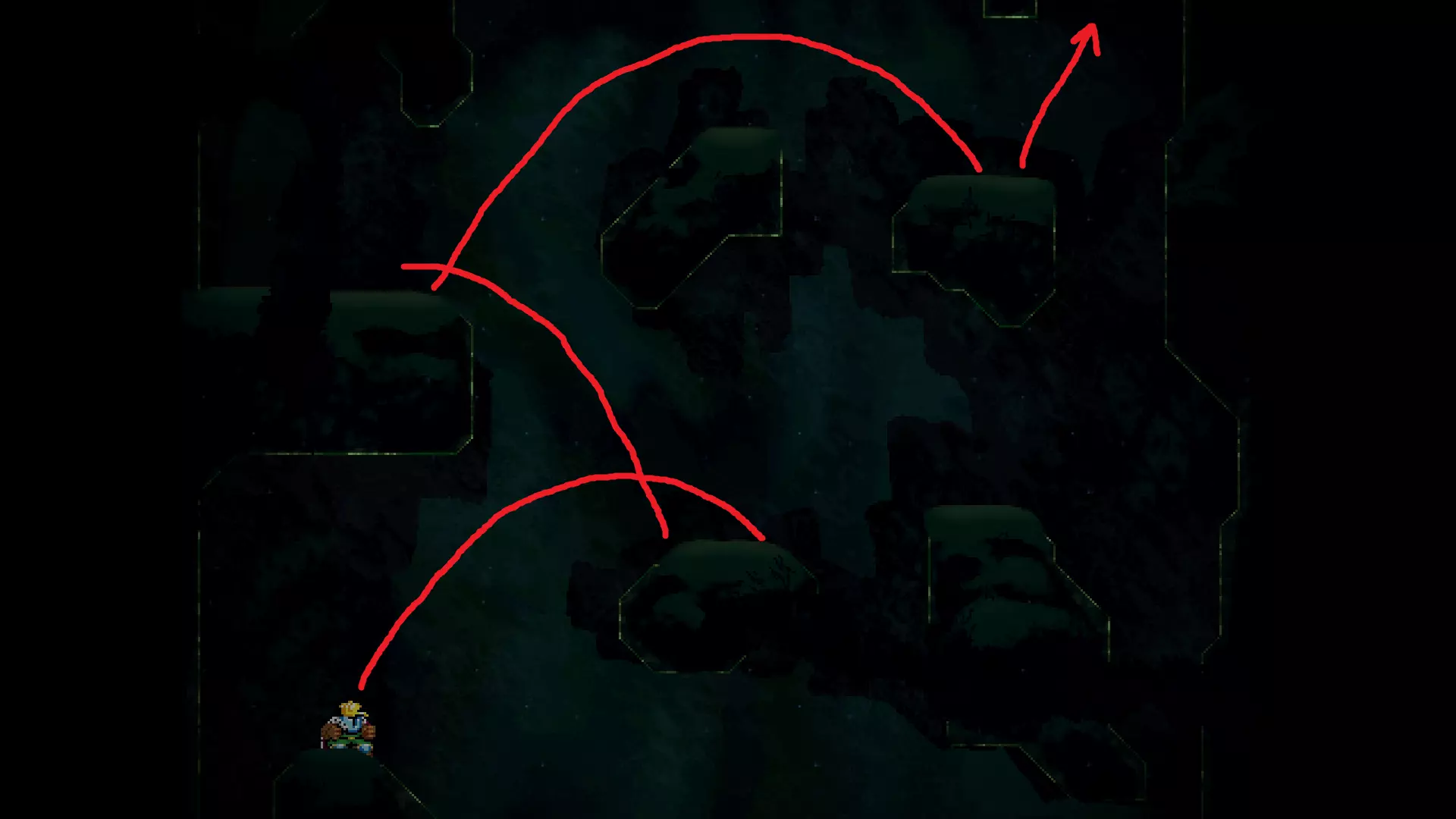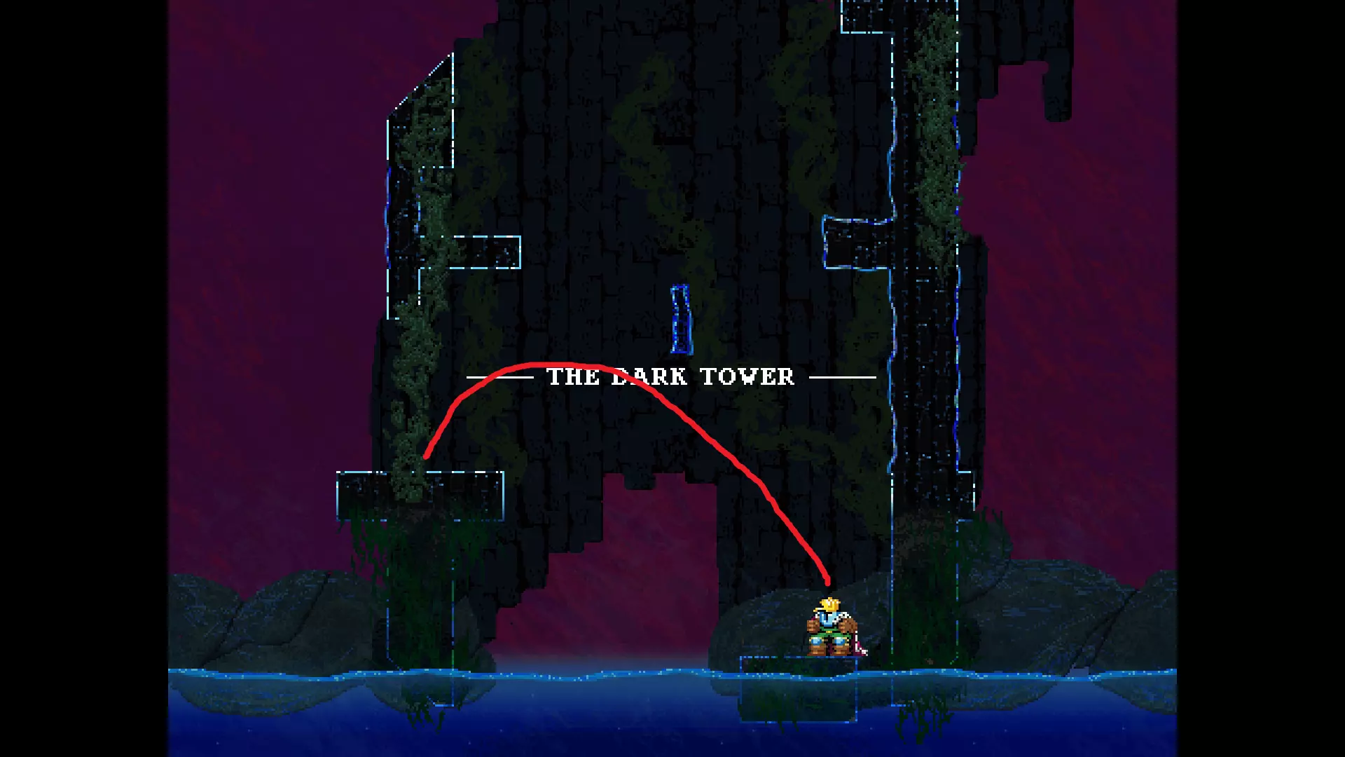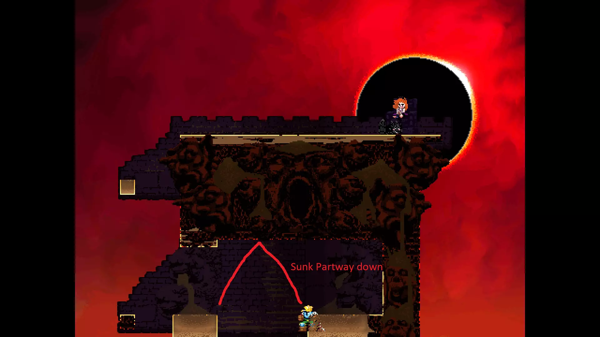 请注意,以下跳跃需要【亚像素级】的精准操作。即使你处于这个精确像素位置,也可能无法成功,除非你使用蛇形戒指稍微向右移动,确保自己处于正确的亚像素位置。