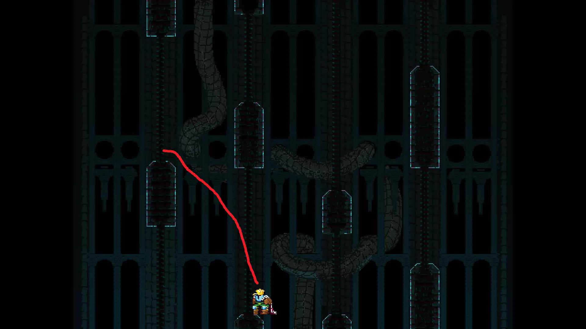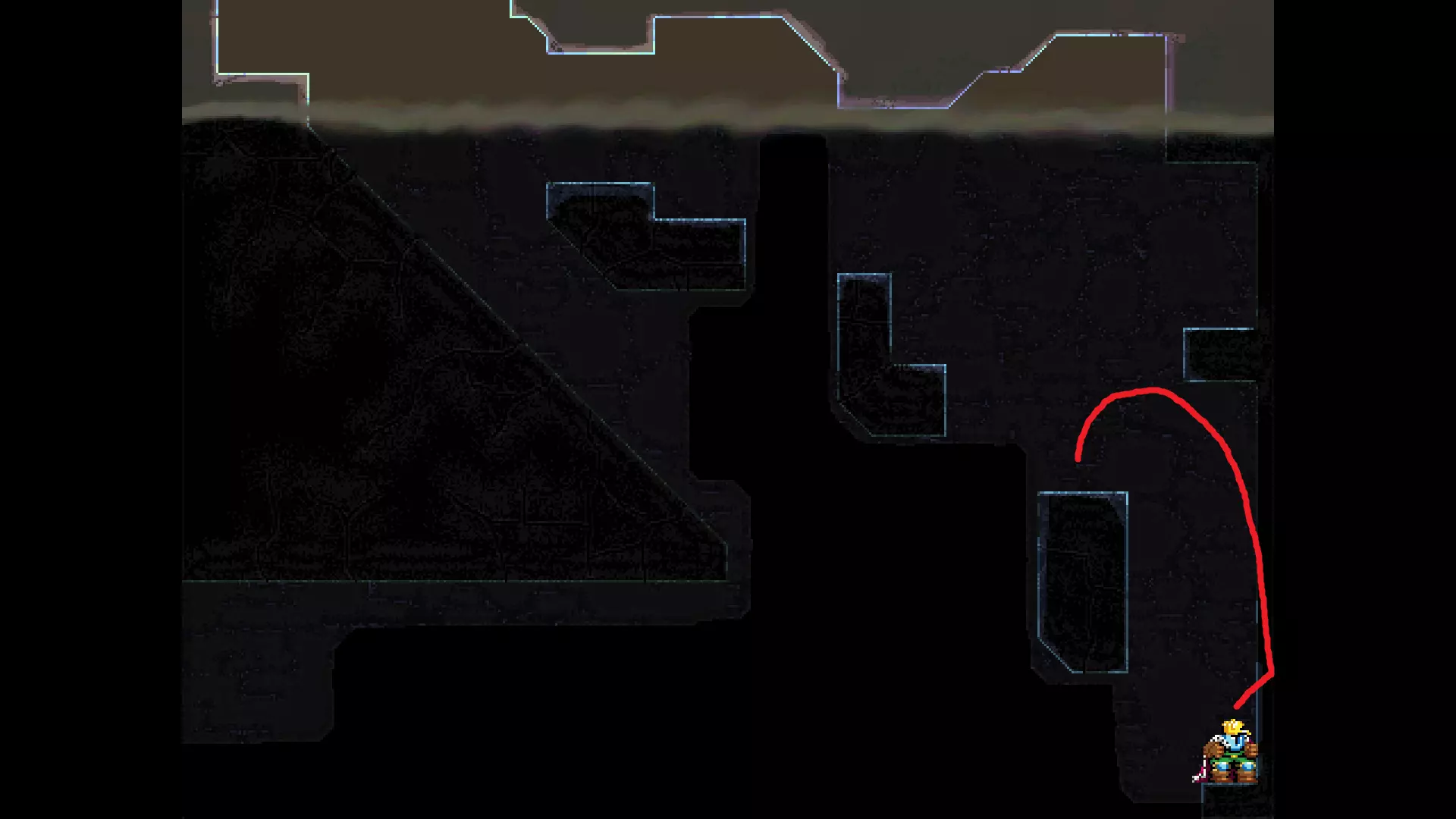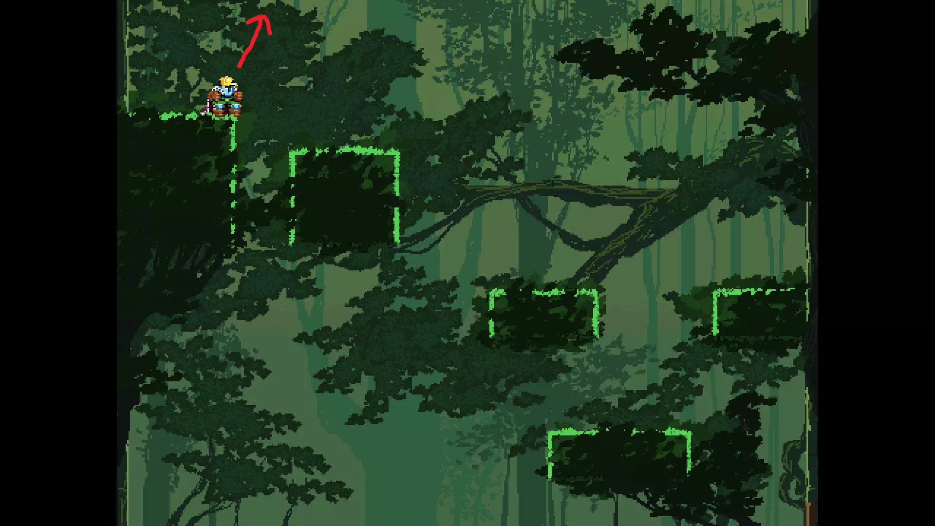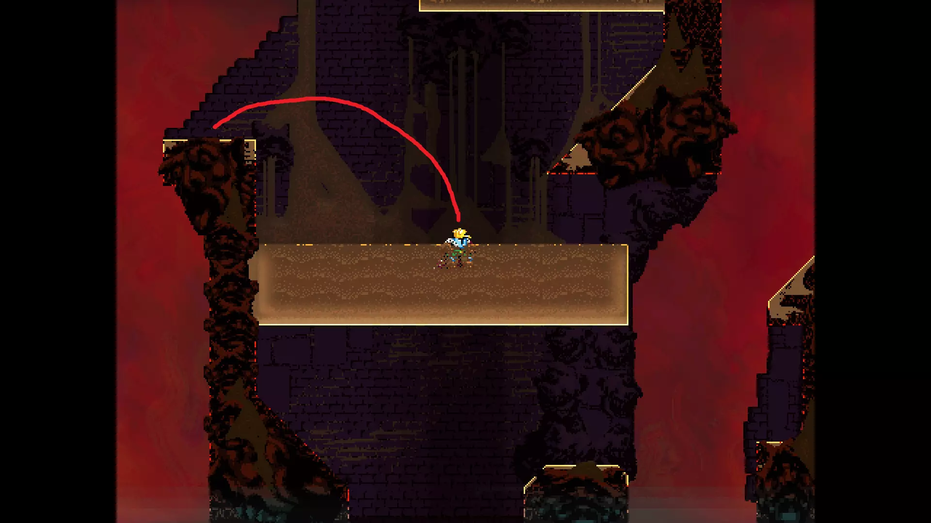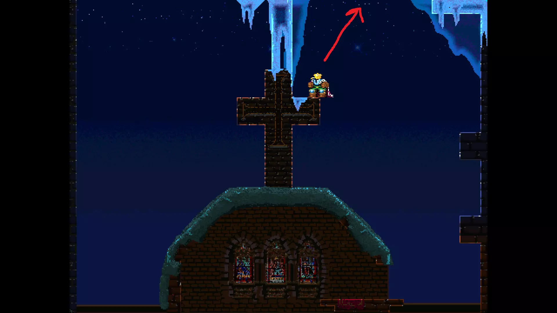 请注意,以下跳跃需要【亚像素级】的精准操作。即使你处于这个精确像素位置,也可能无法成功,除非你使用蛇形戒指稍微向右移动,确保自己处于正确的亚像素位置。