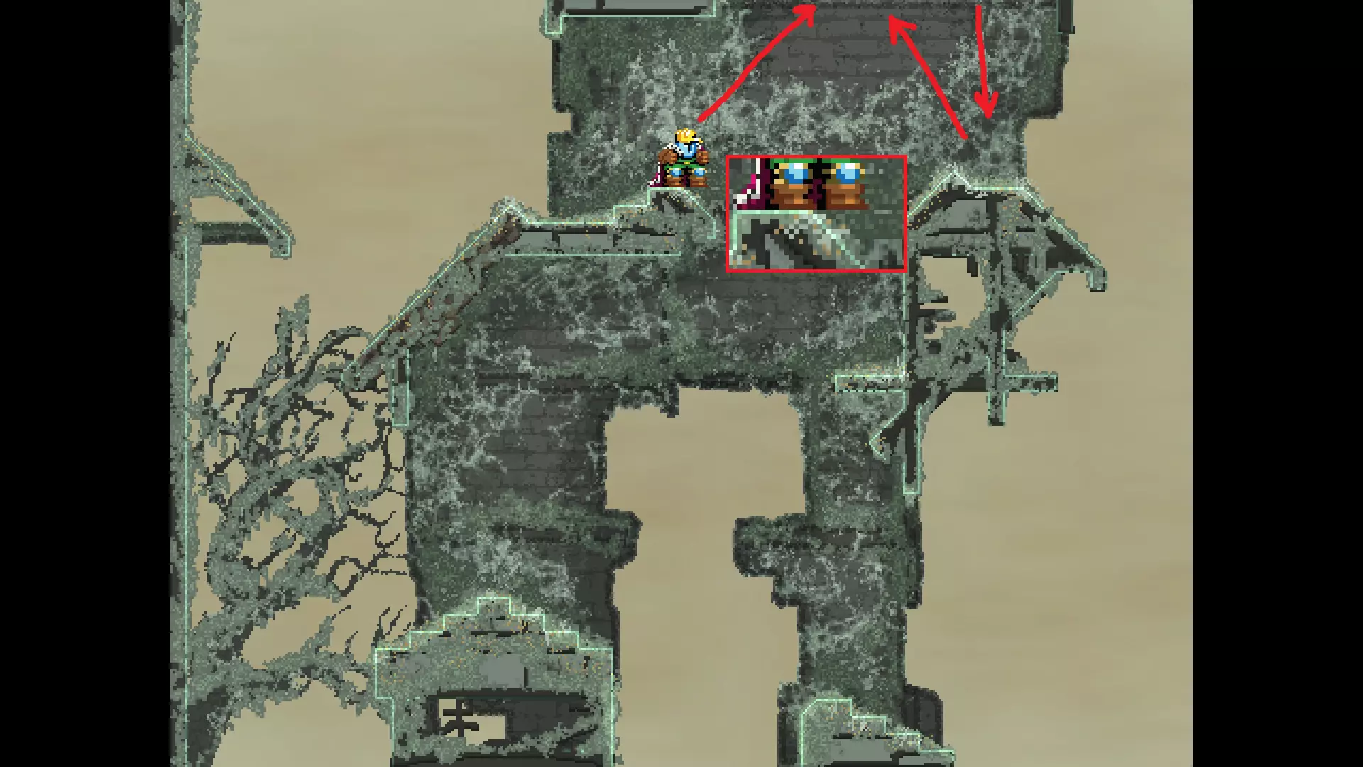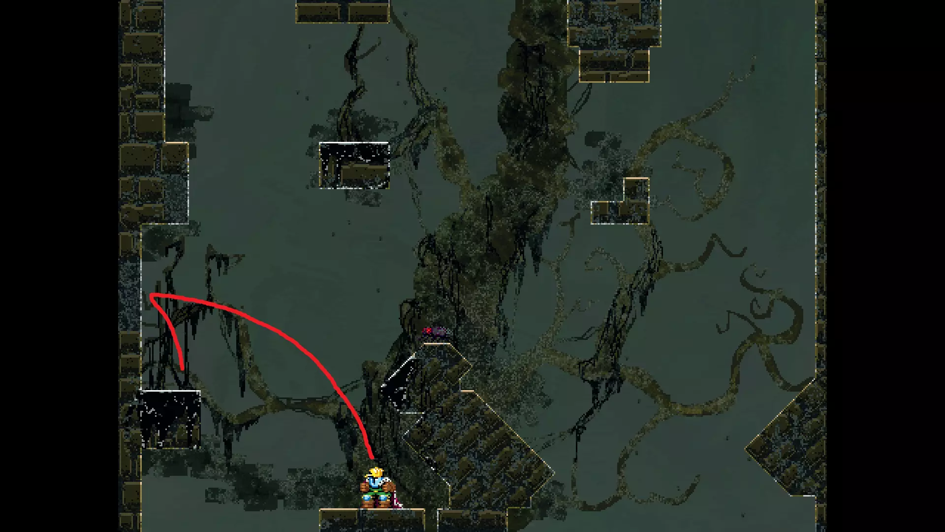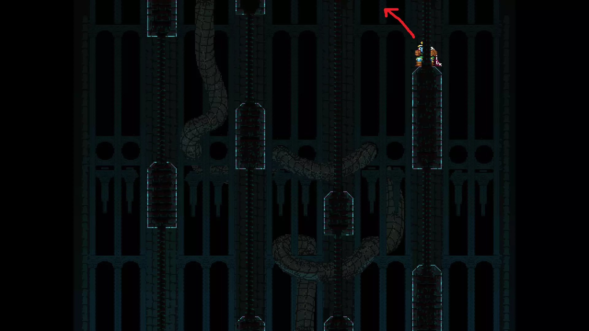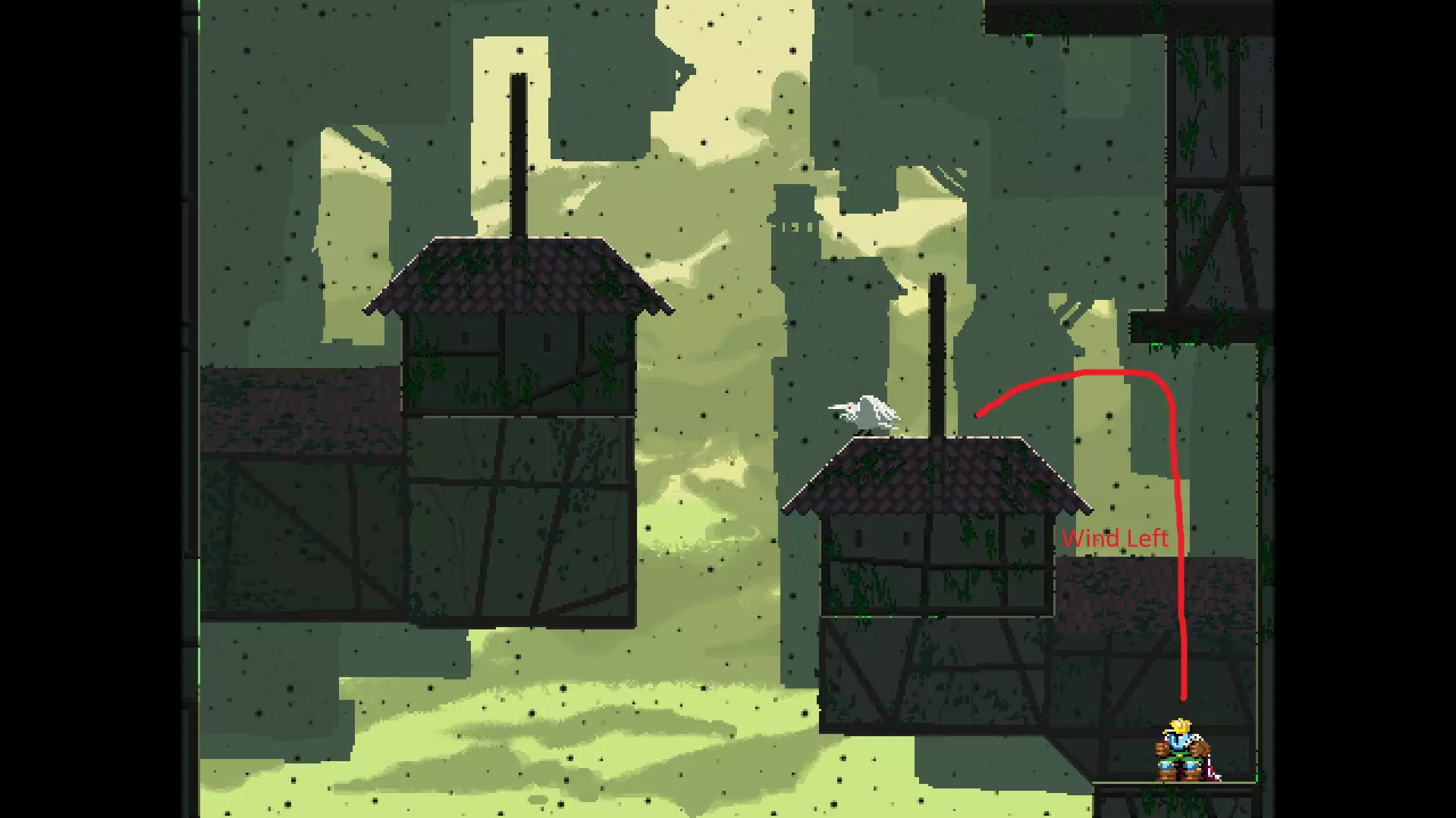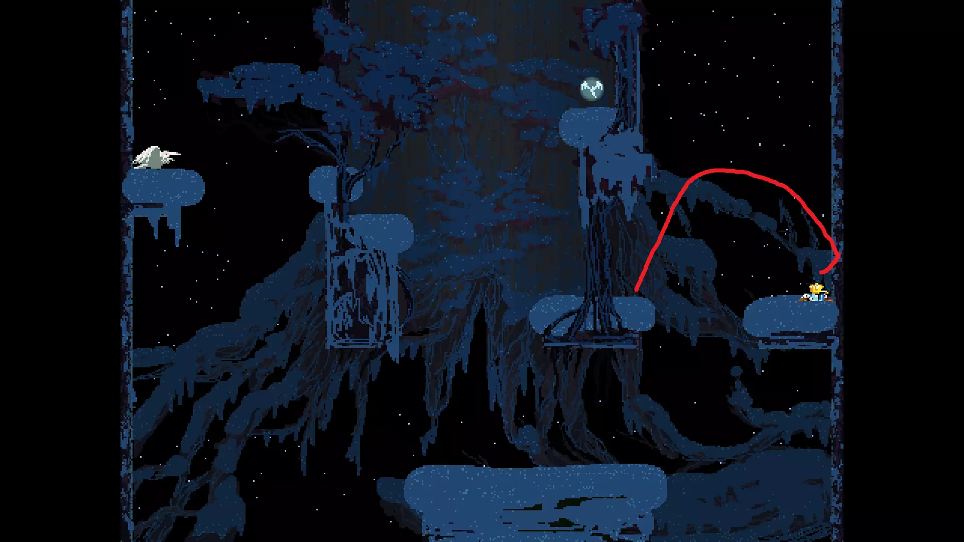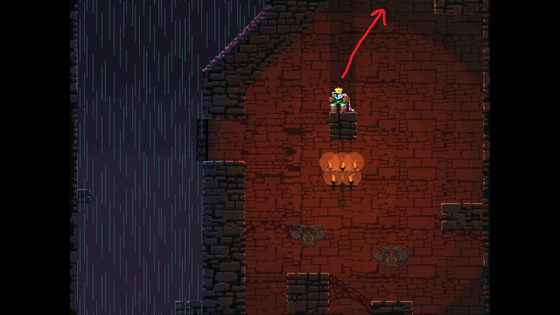 请注意,以下跳跃需要【亚像素级】的精准操作。即使你处于这个精确像素位置,也可能无法成功,除非你使用蛇形戒指稍微向右移动,确保自己处于正确的亚像素位置。