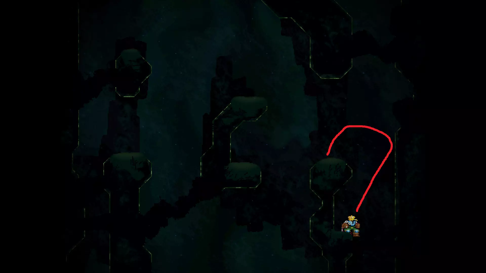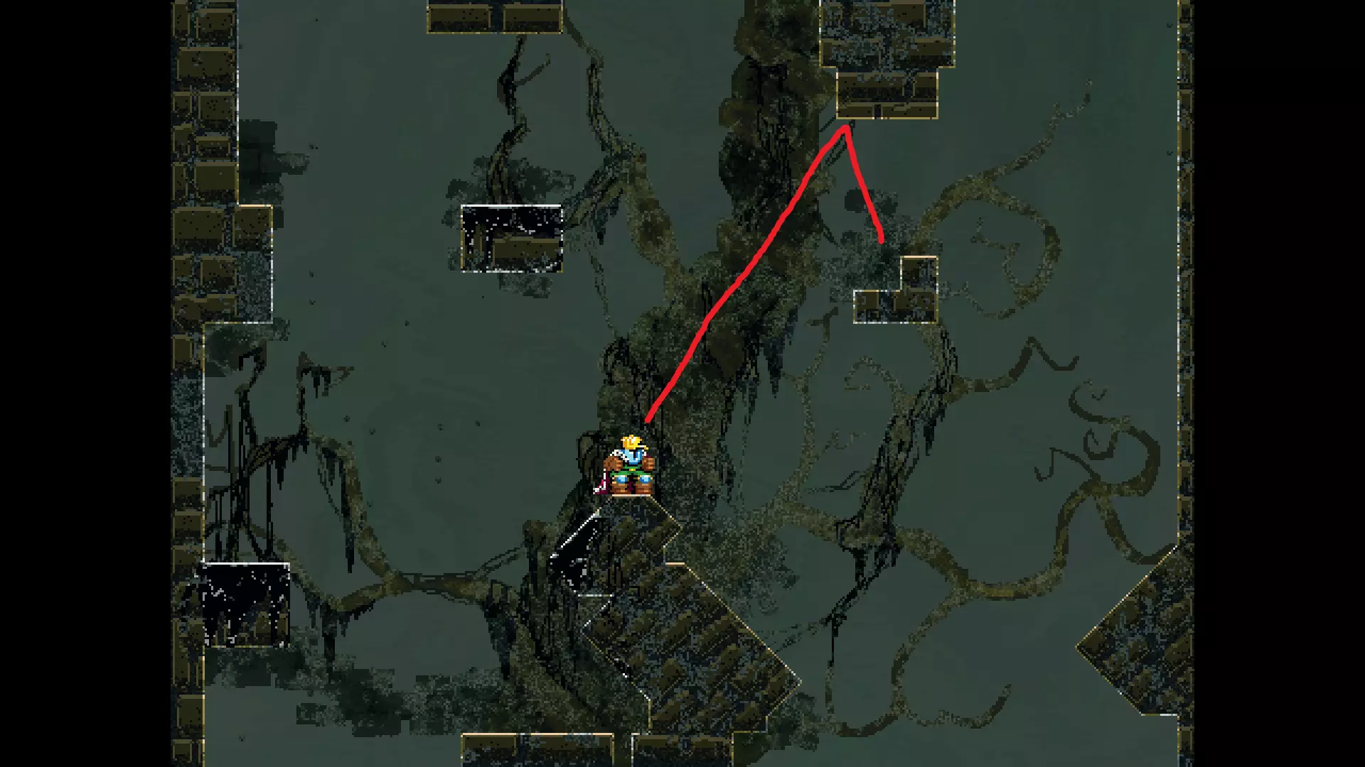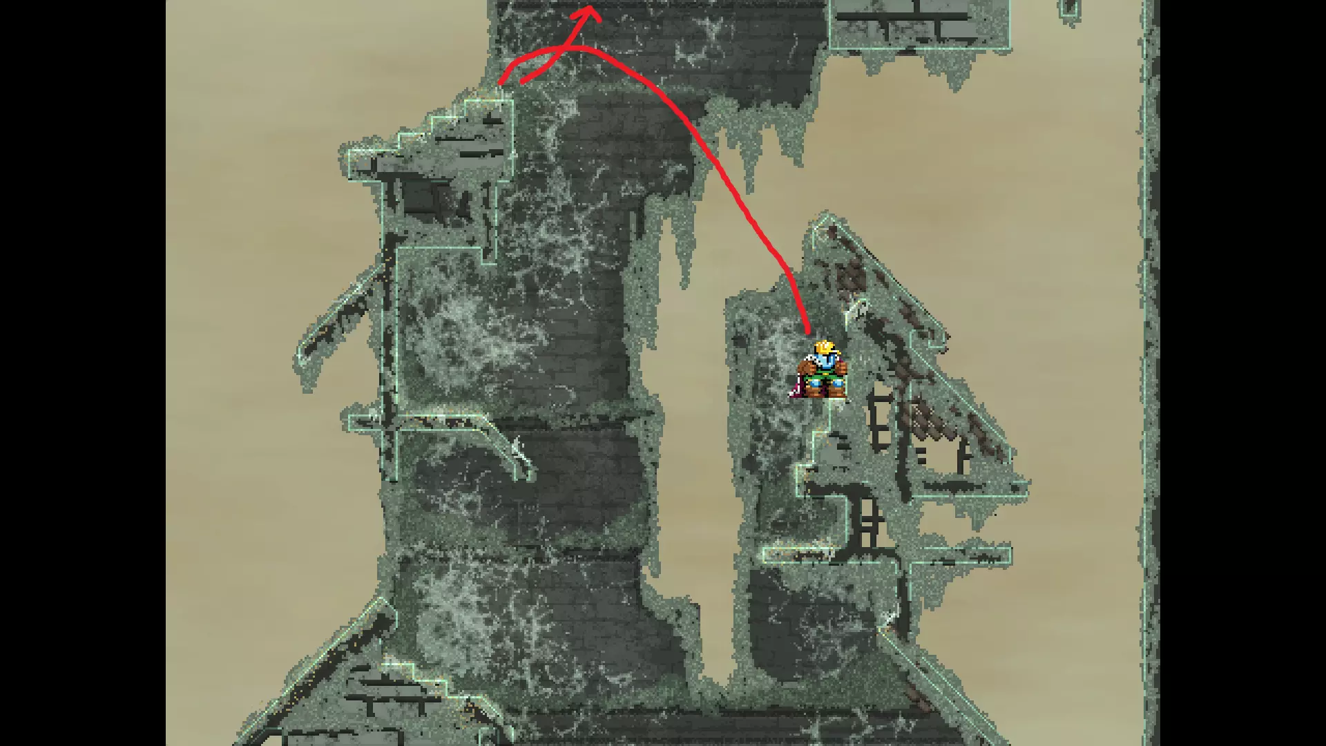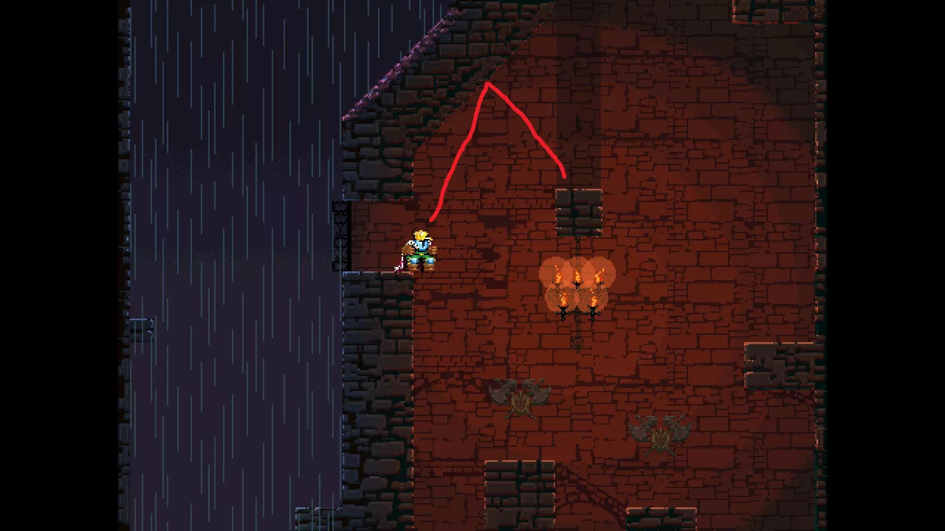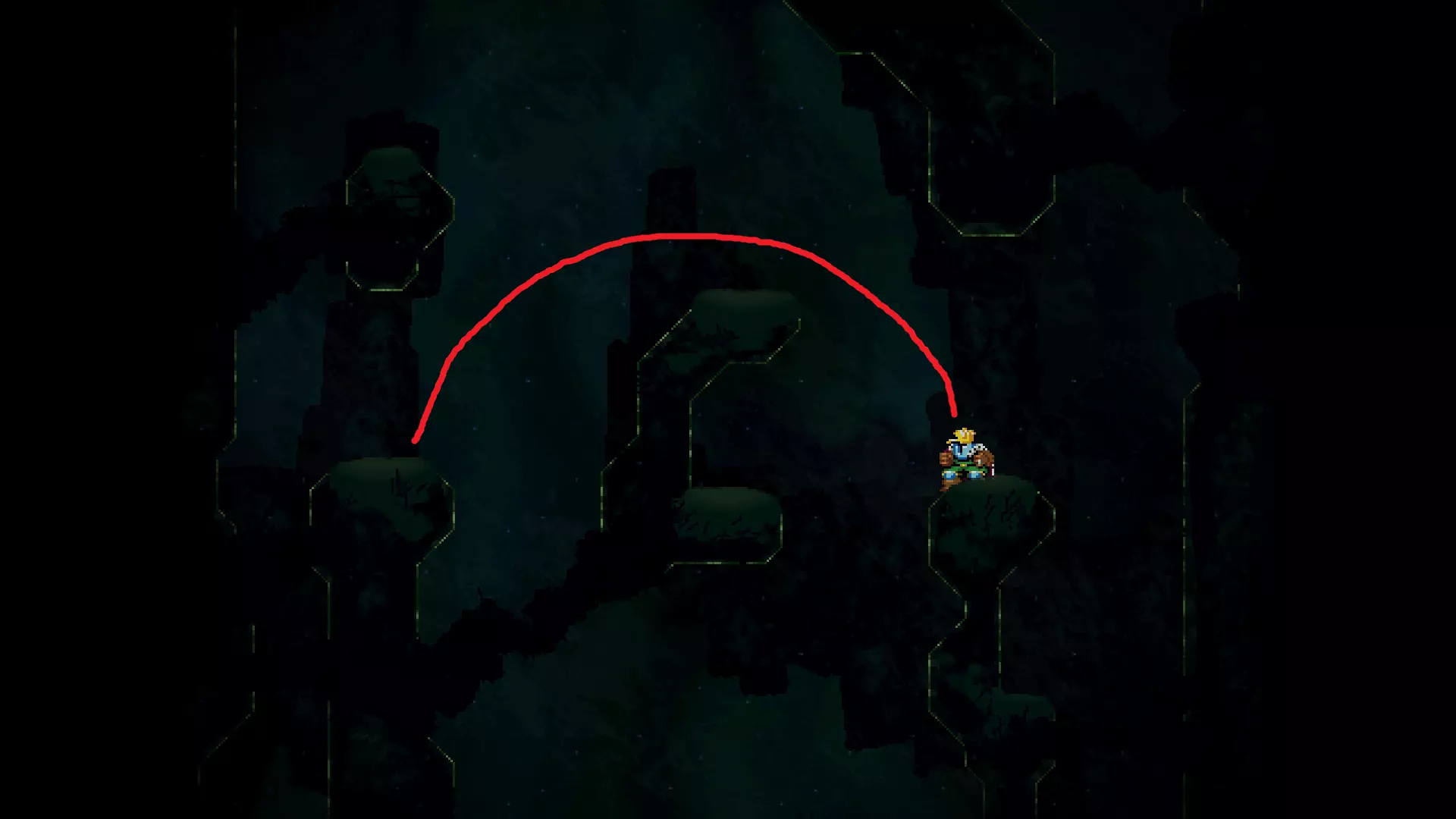 请注意,以下跳跃需要【亚像素级】的精准操作。即使你处于这个精确像素位置,也可能无法成功,除非你使用蛇形戒指稍微向右移动,确保自己处于正确的亚像素位置。