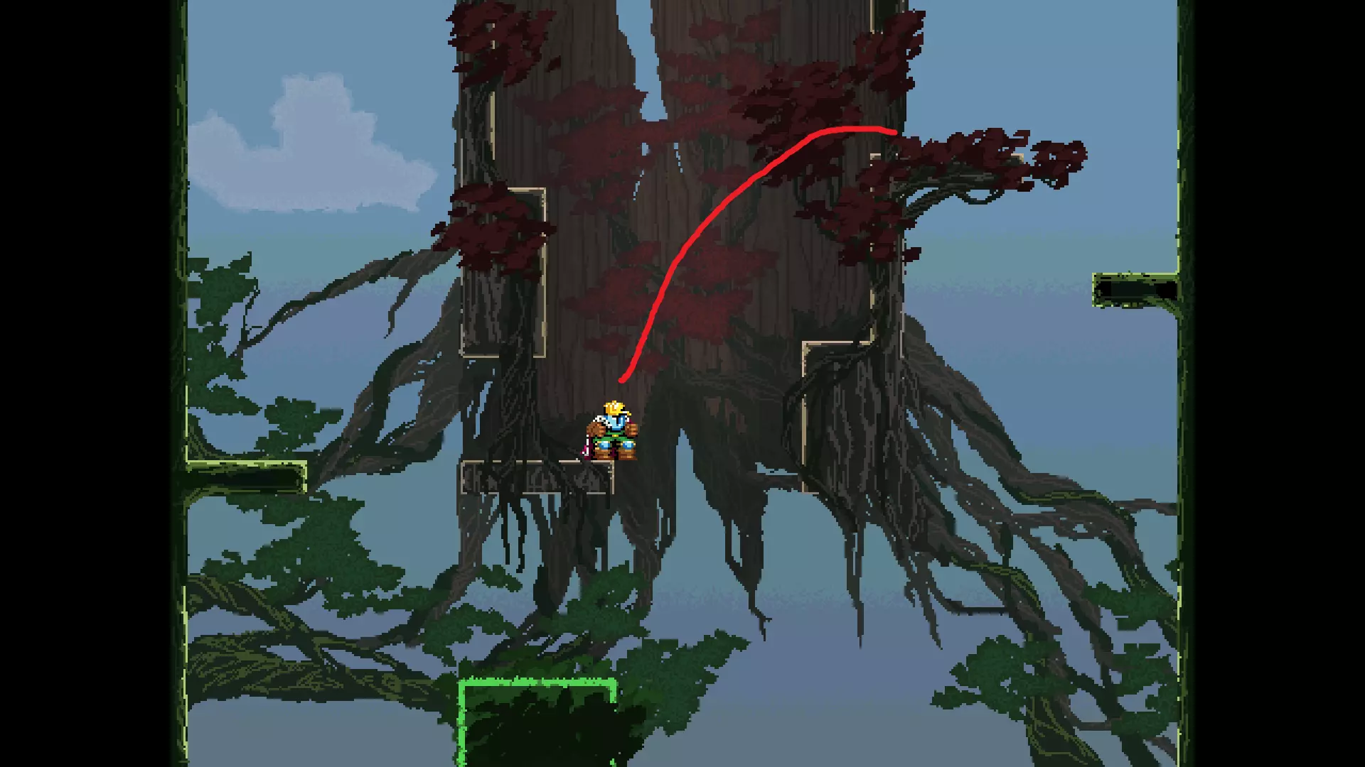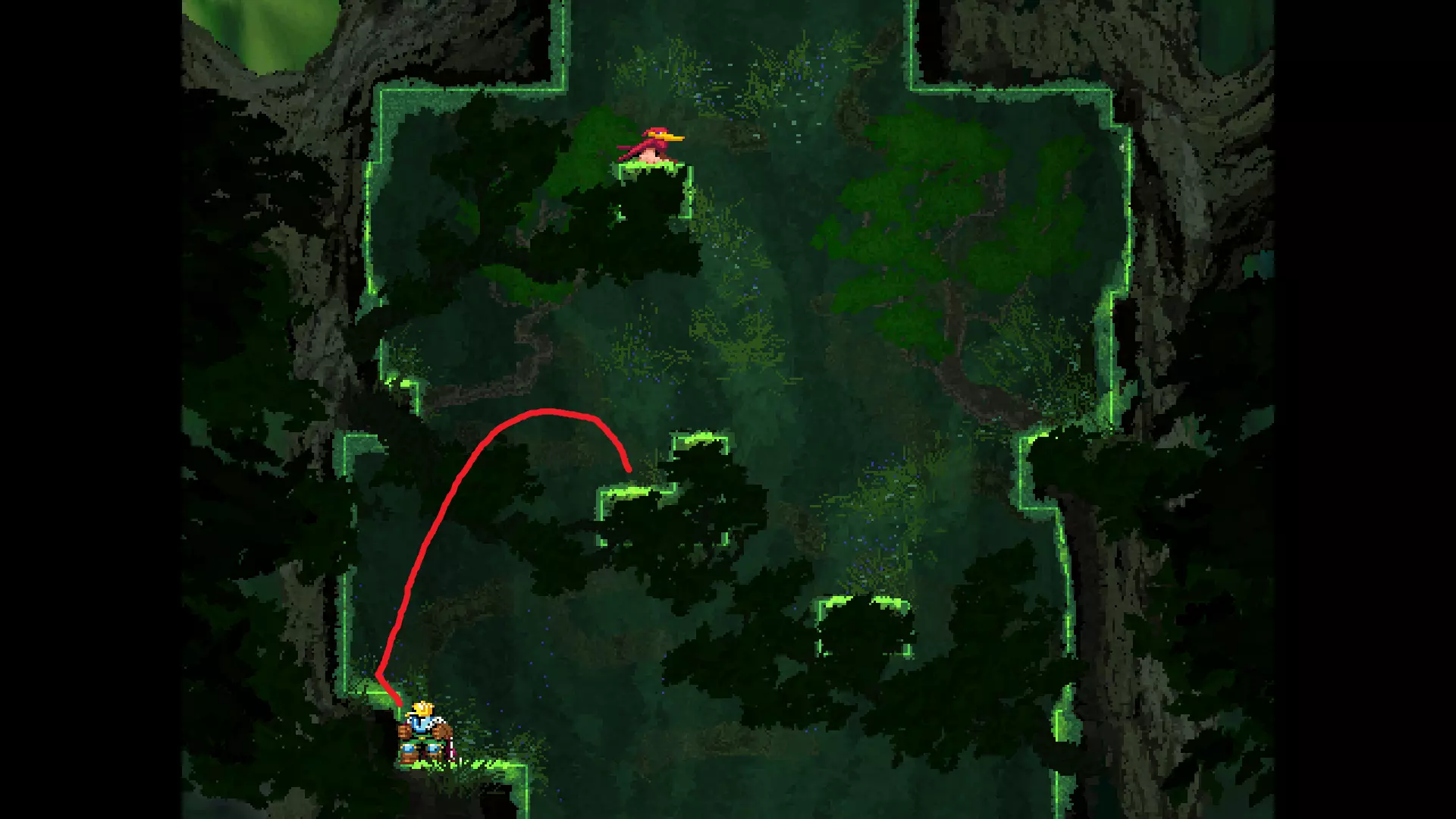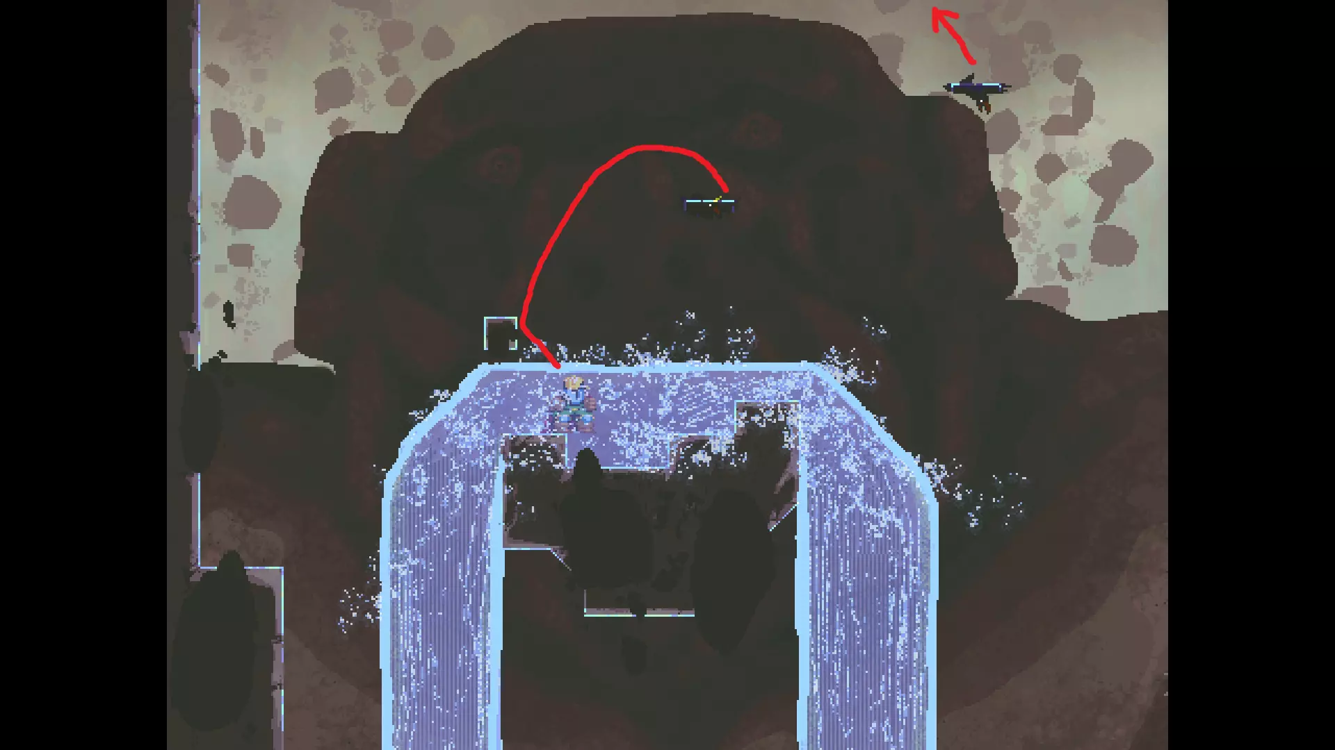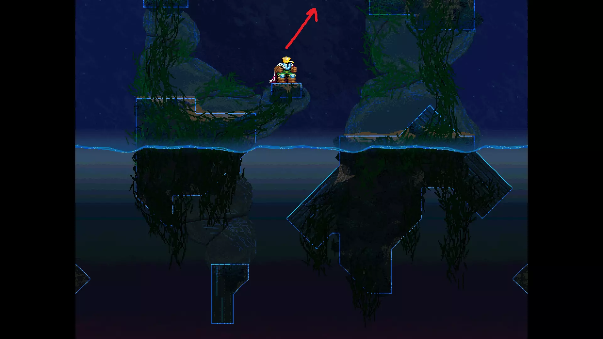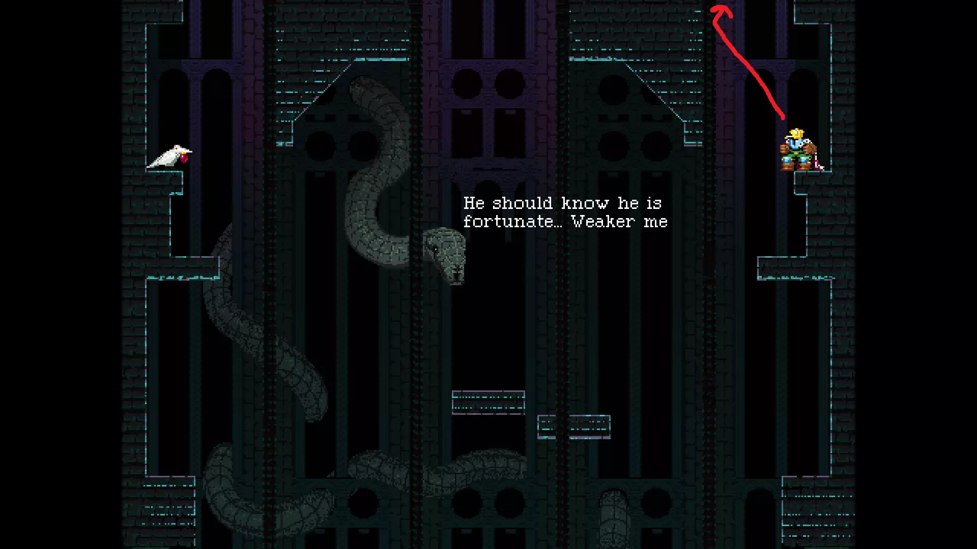 请注意,以下跳跃需要【亚像素级】的精准操作。即使你处于这个精确像素位置,也可能无法成功,除非你使用蛇形戒指稍微向右移动,确保自己处于正确的亚像素位置。