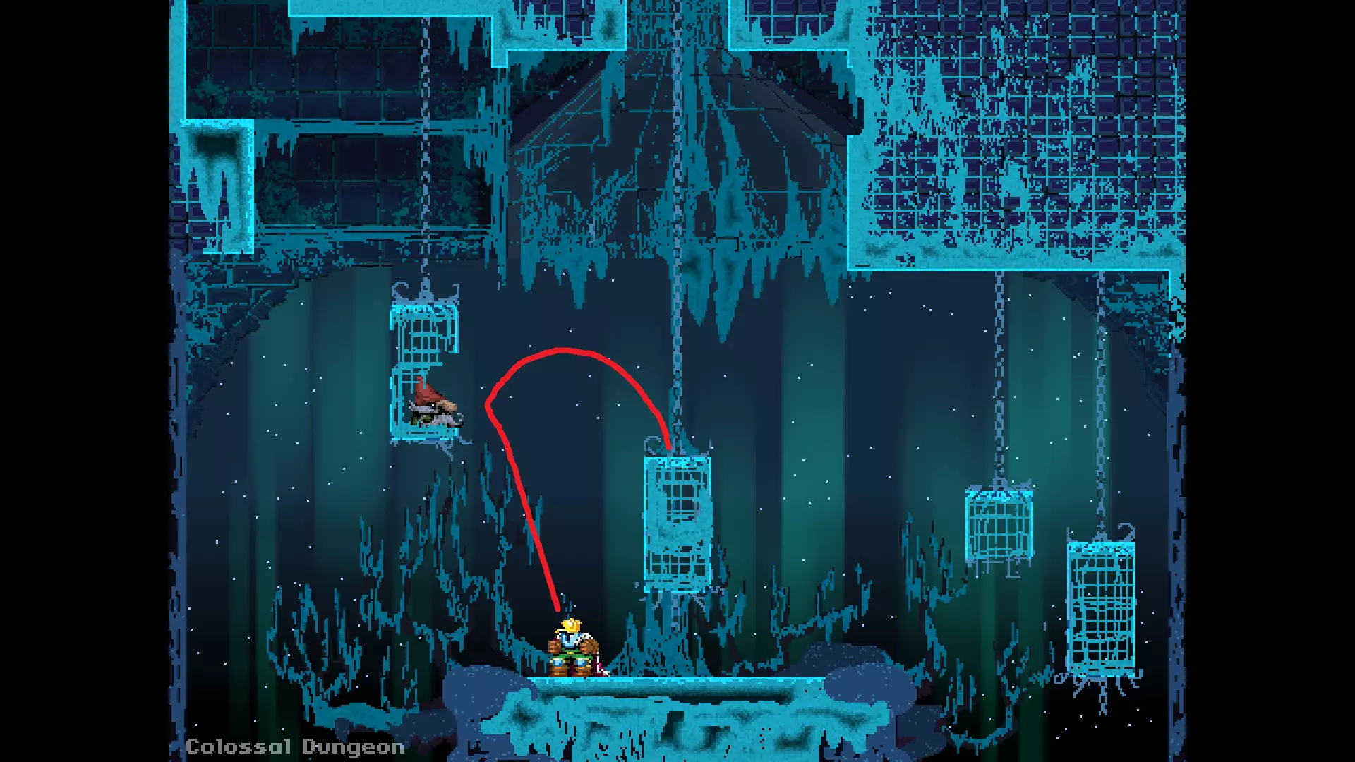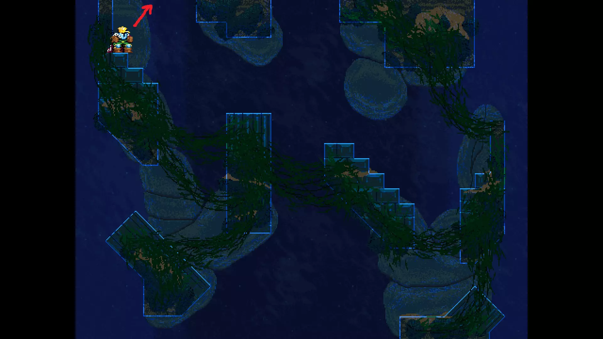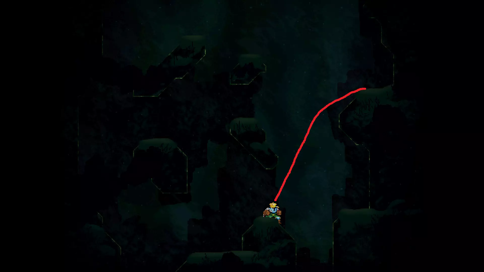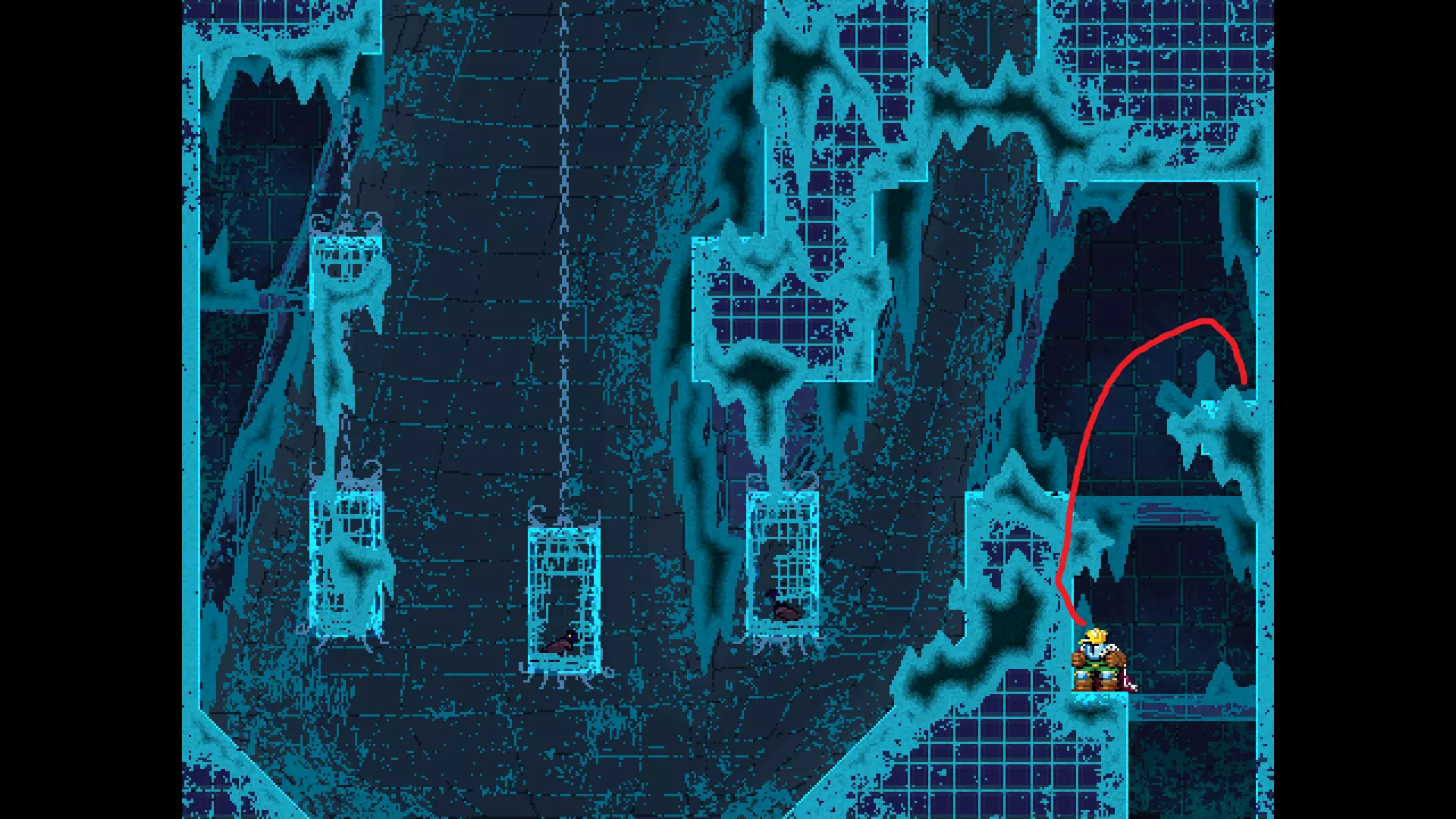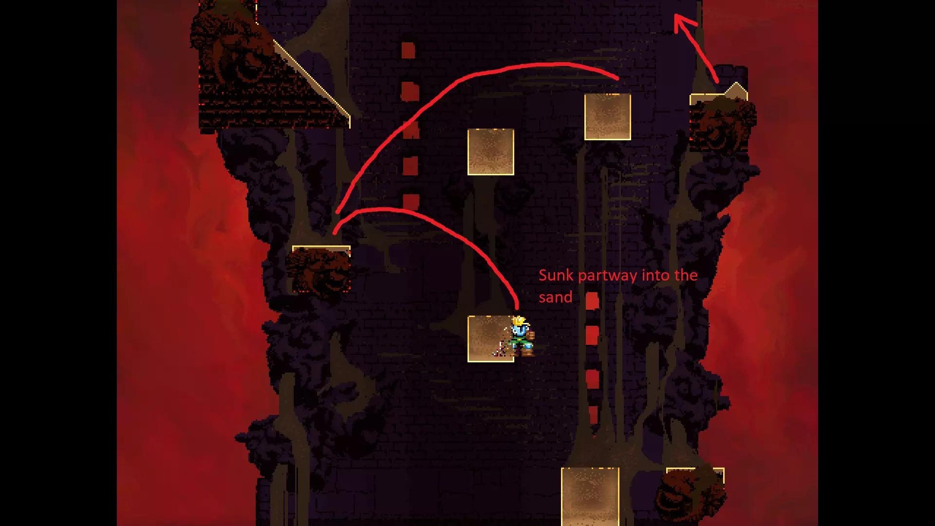 请注意,以下跳跃需要【亚像素级】的精准操作。即使你处于这个精确像素位置,也可能无法成功,除非你使用蛇形戒指稍微向右移动,确保自己处于正确的亚像素位置。