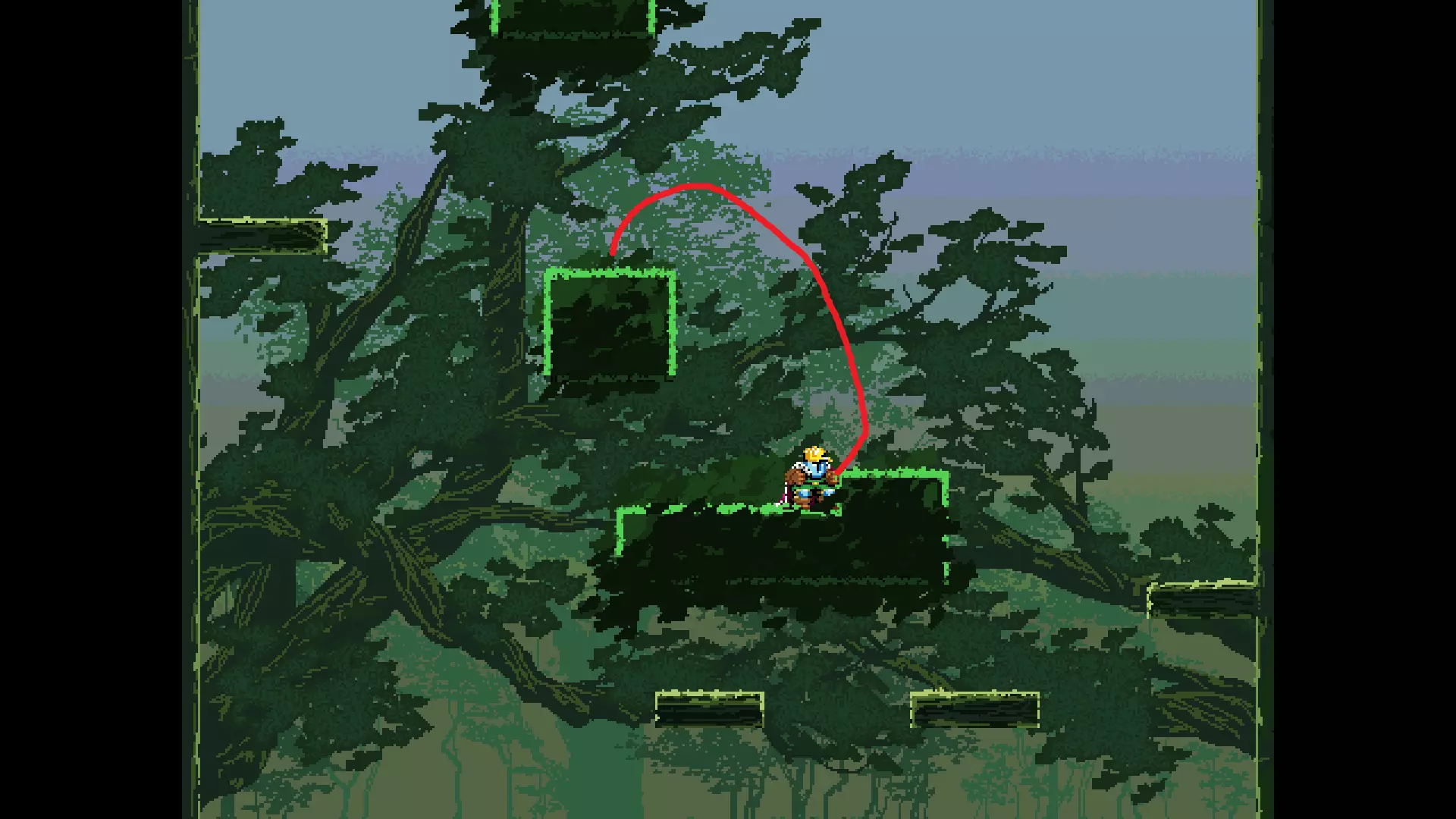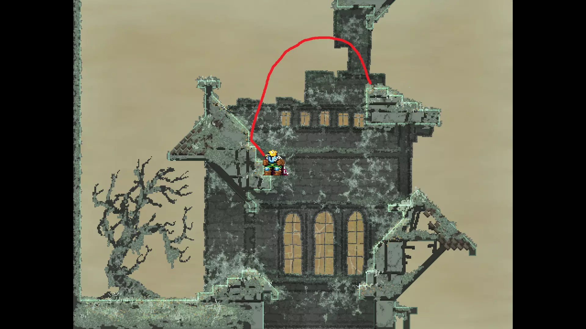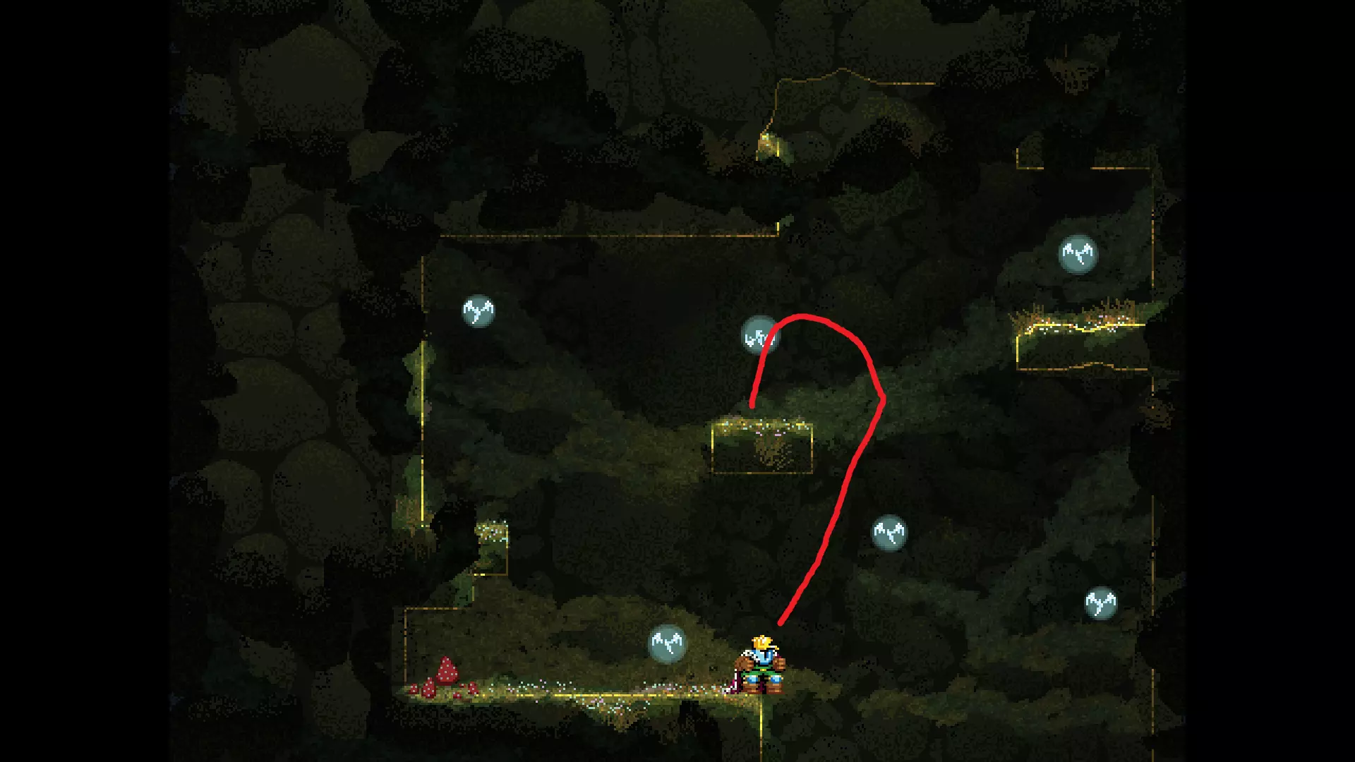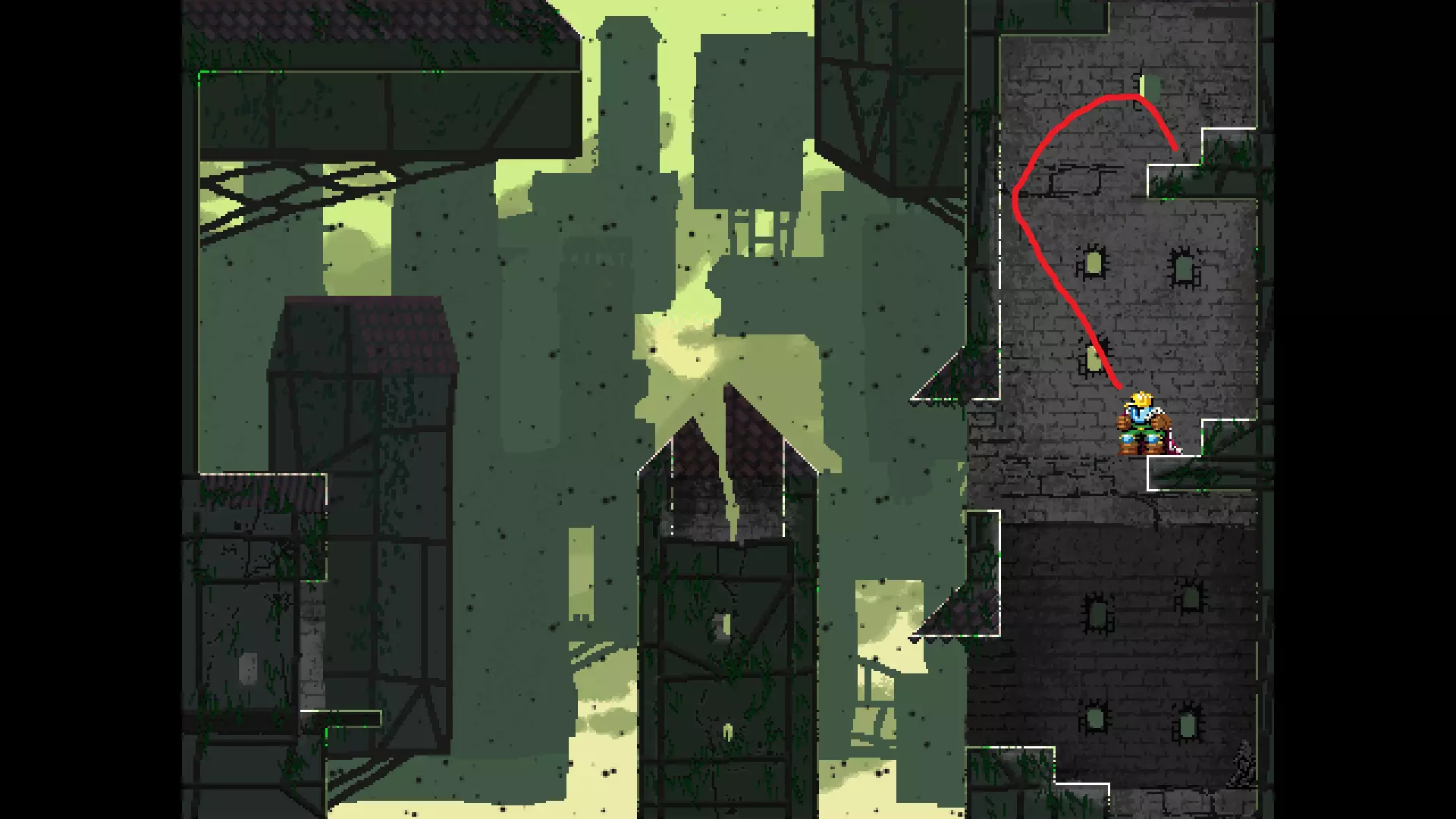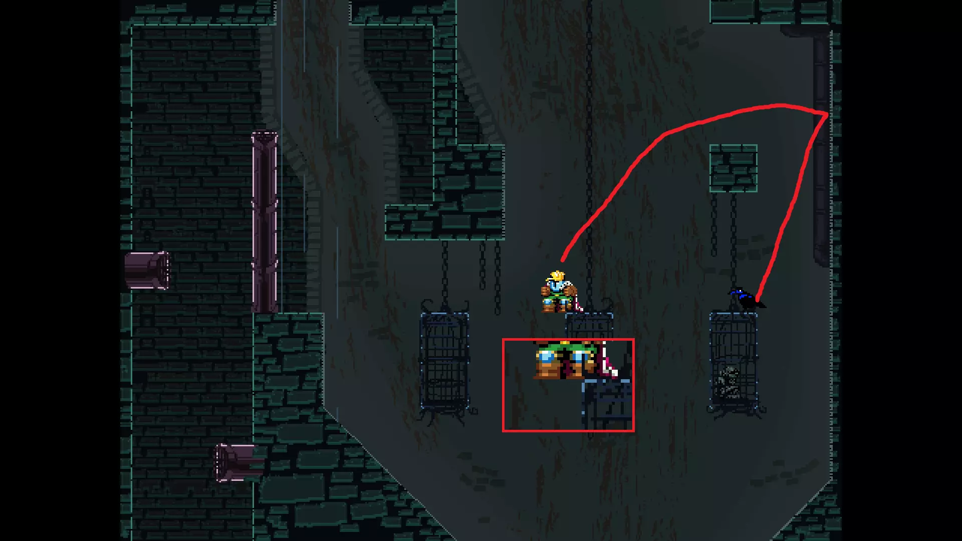 请注意,以下跳跃需要【亚像素级】的精准操作。即使你处于这个精确像素位置,也可能无法成功,除非你使用蛇形戒指稍微向右移动,确保自己处于正确的亚像素位置。