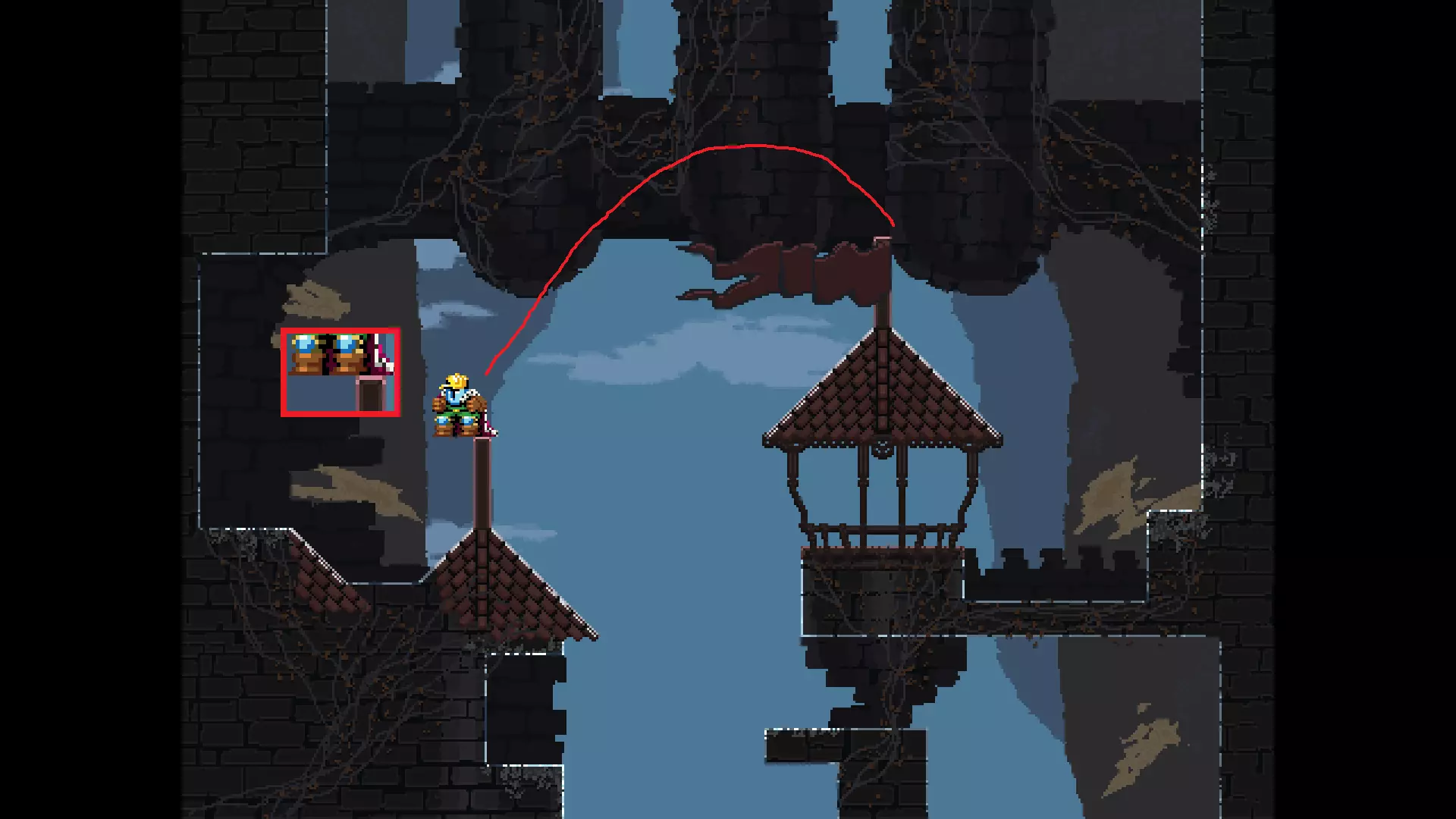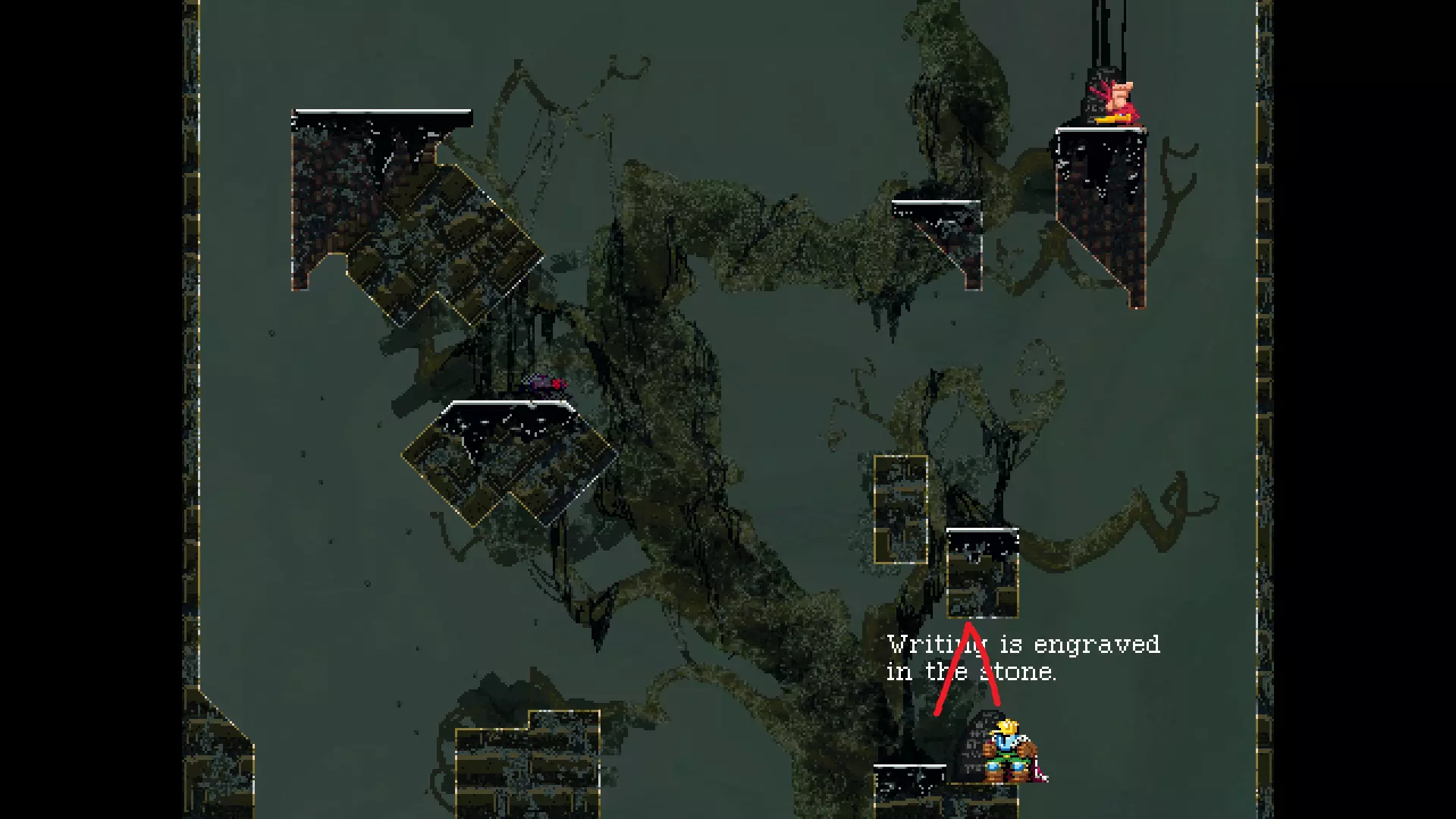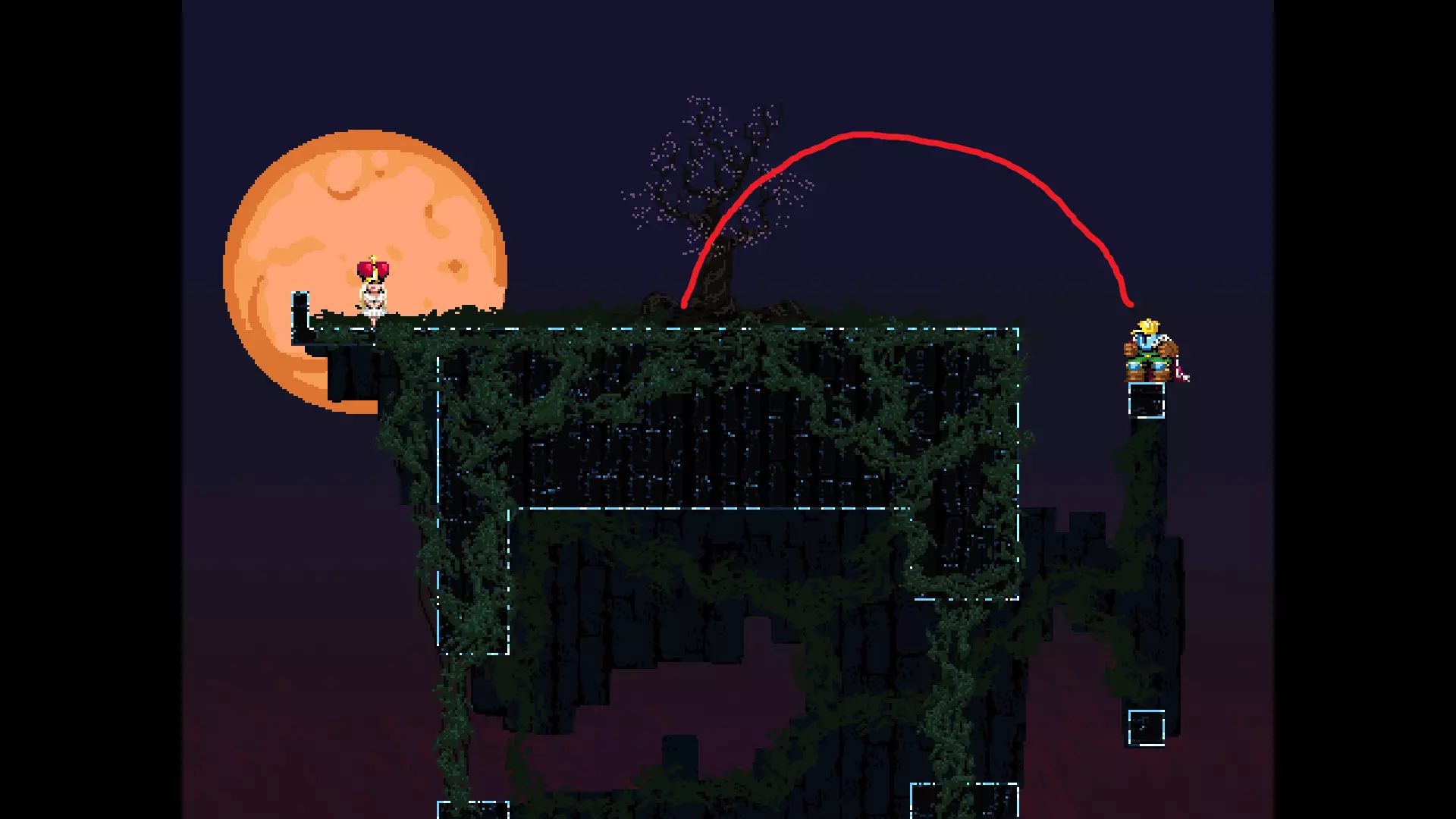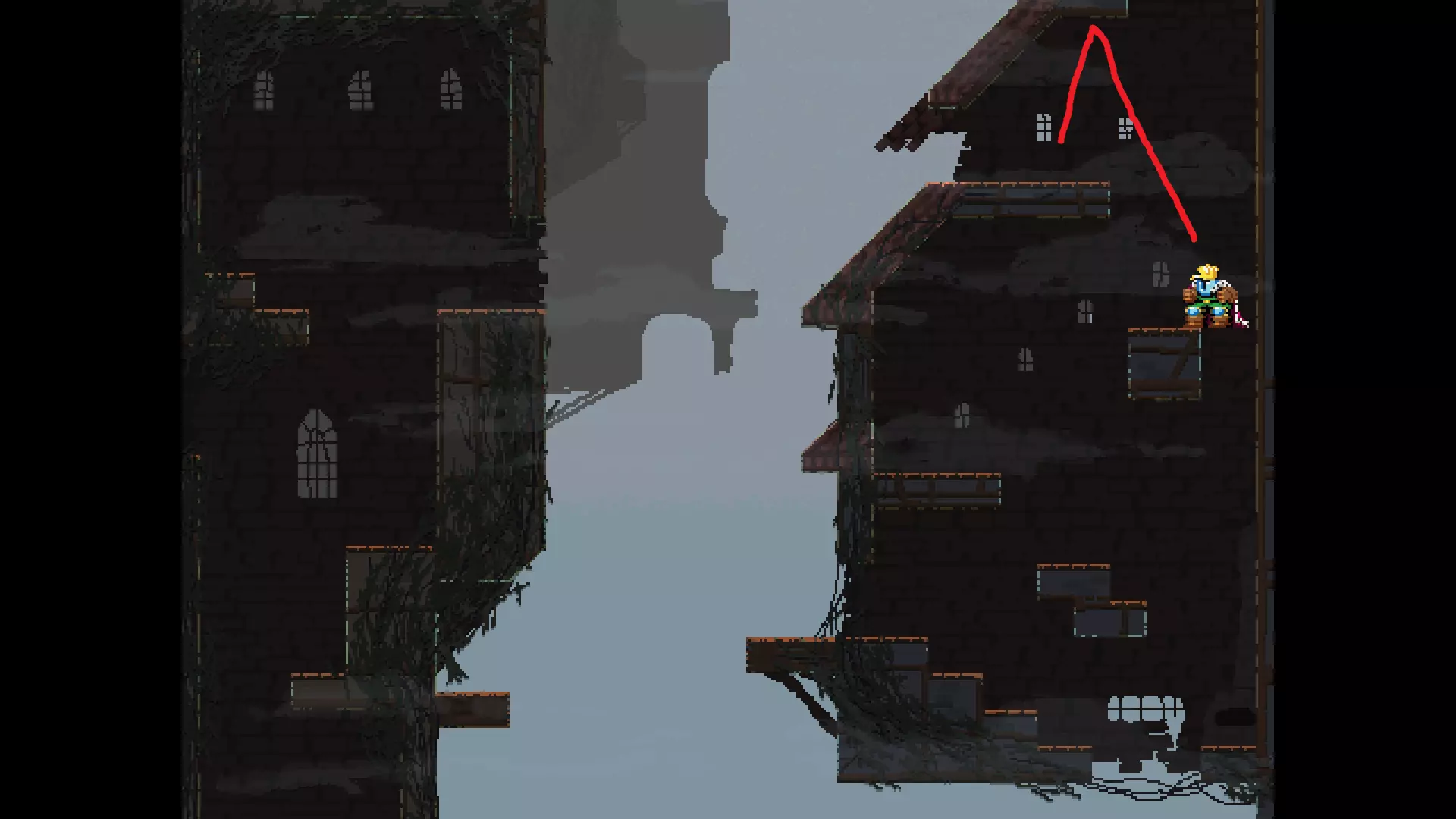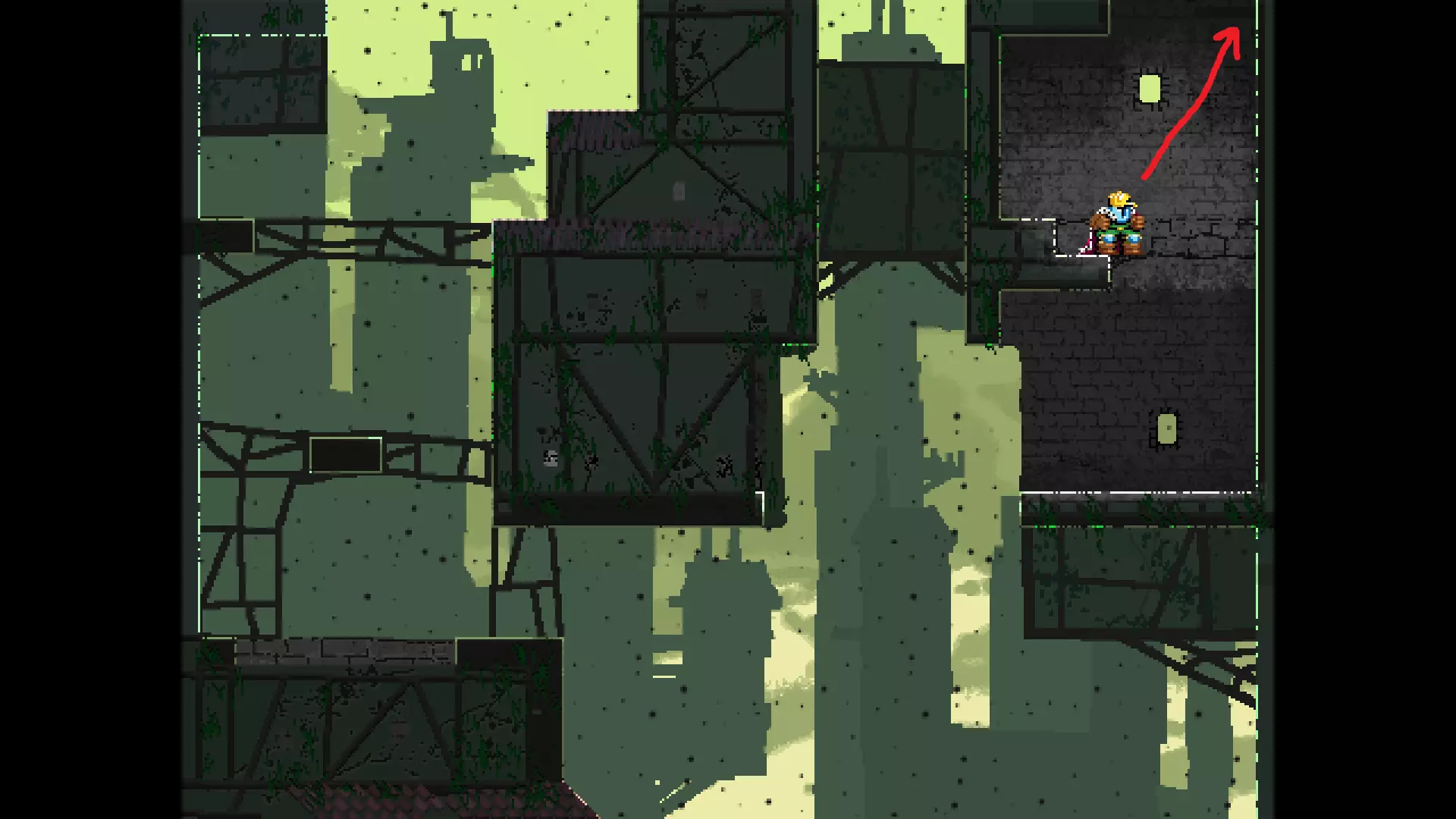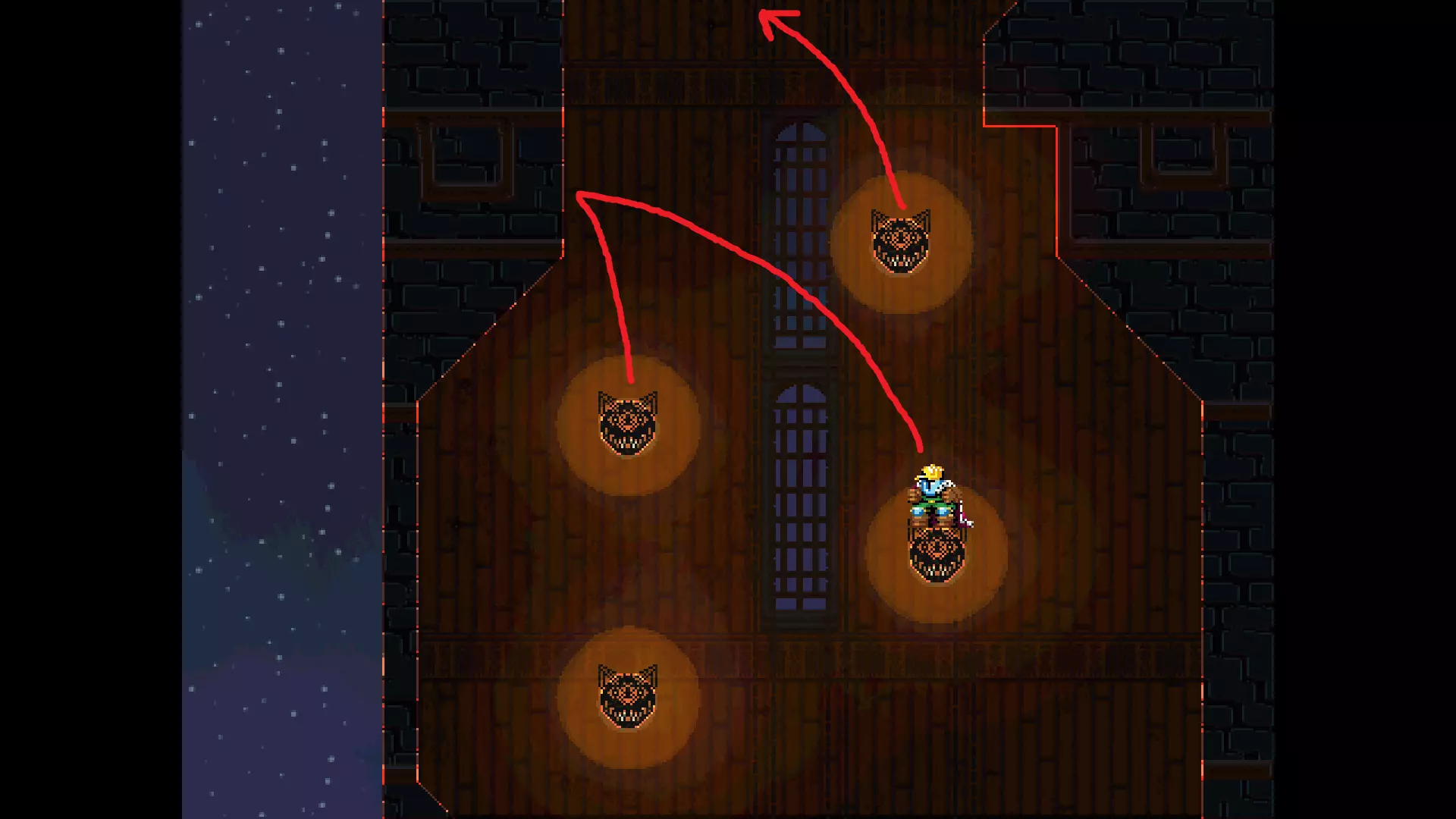 请注意,以下跳跃需要【亚像素级】的精准操作。即使你处于这个精确像素位置,也可能无法成功,除非你使用蛇形戒指稍微向右移动,确保自己处于正确的亚像素位置。