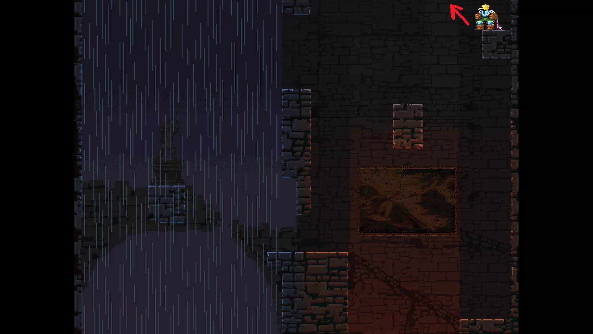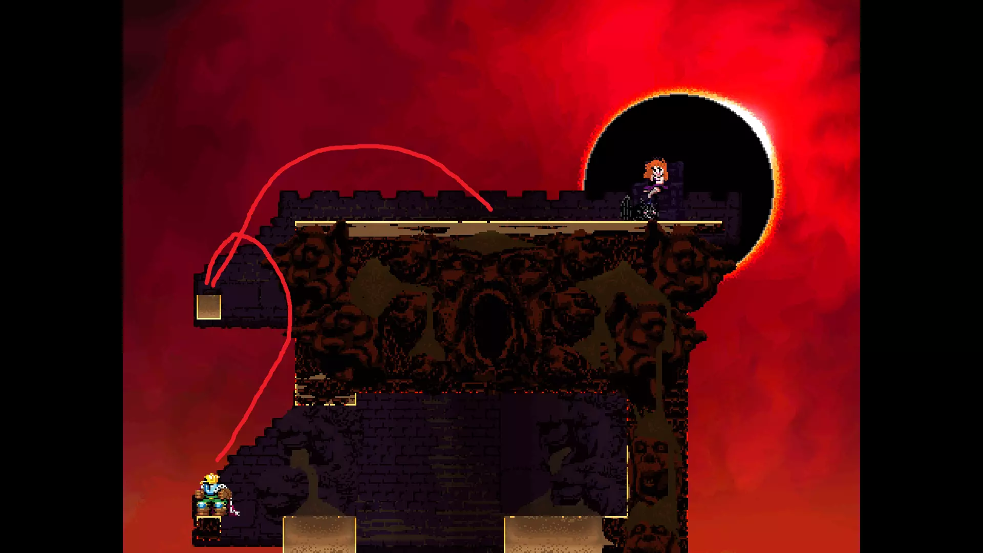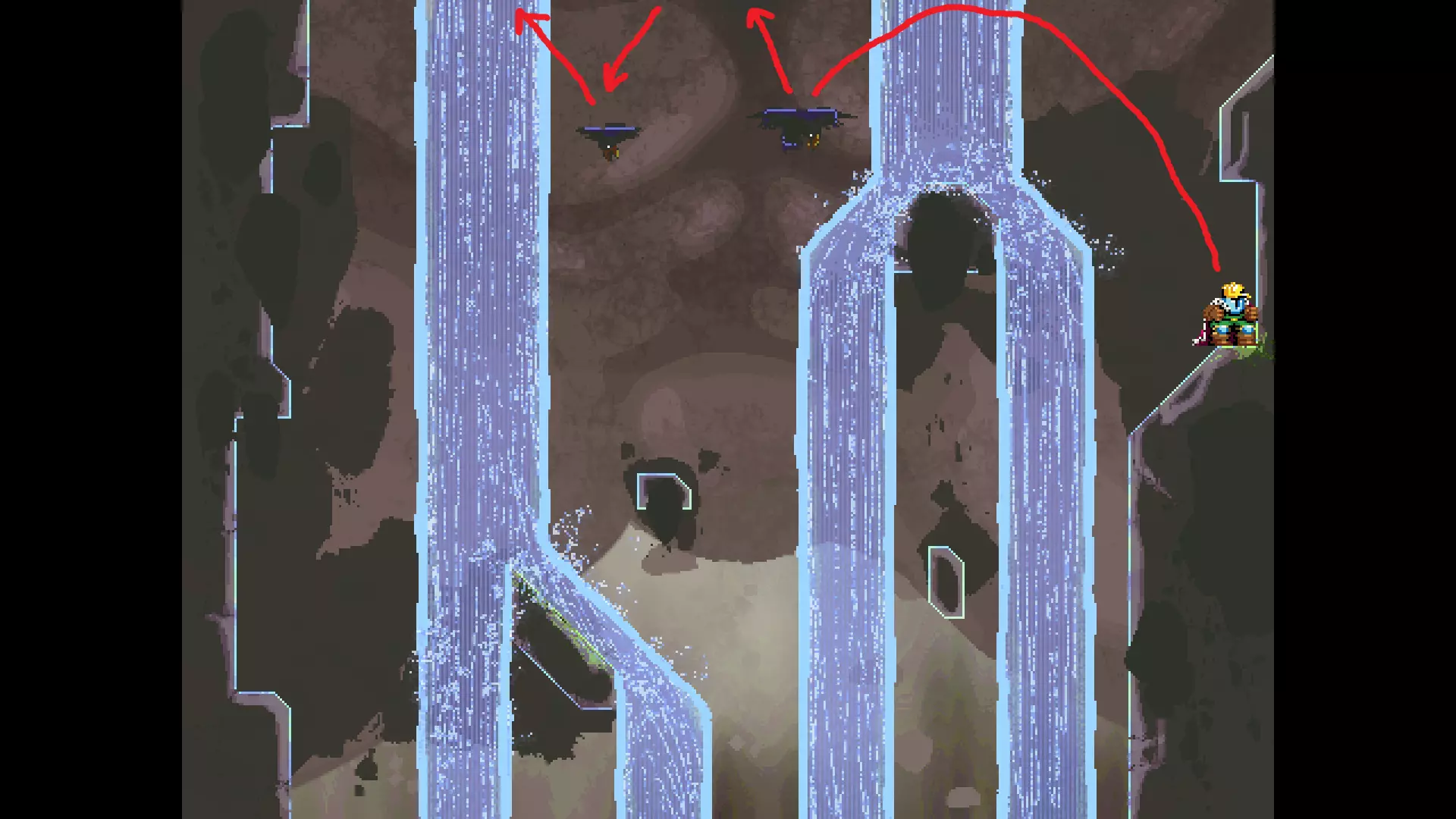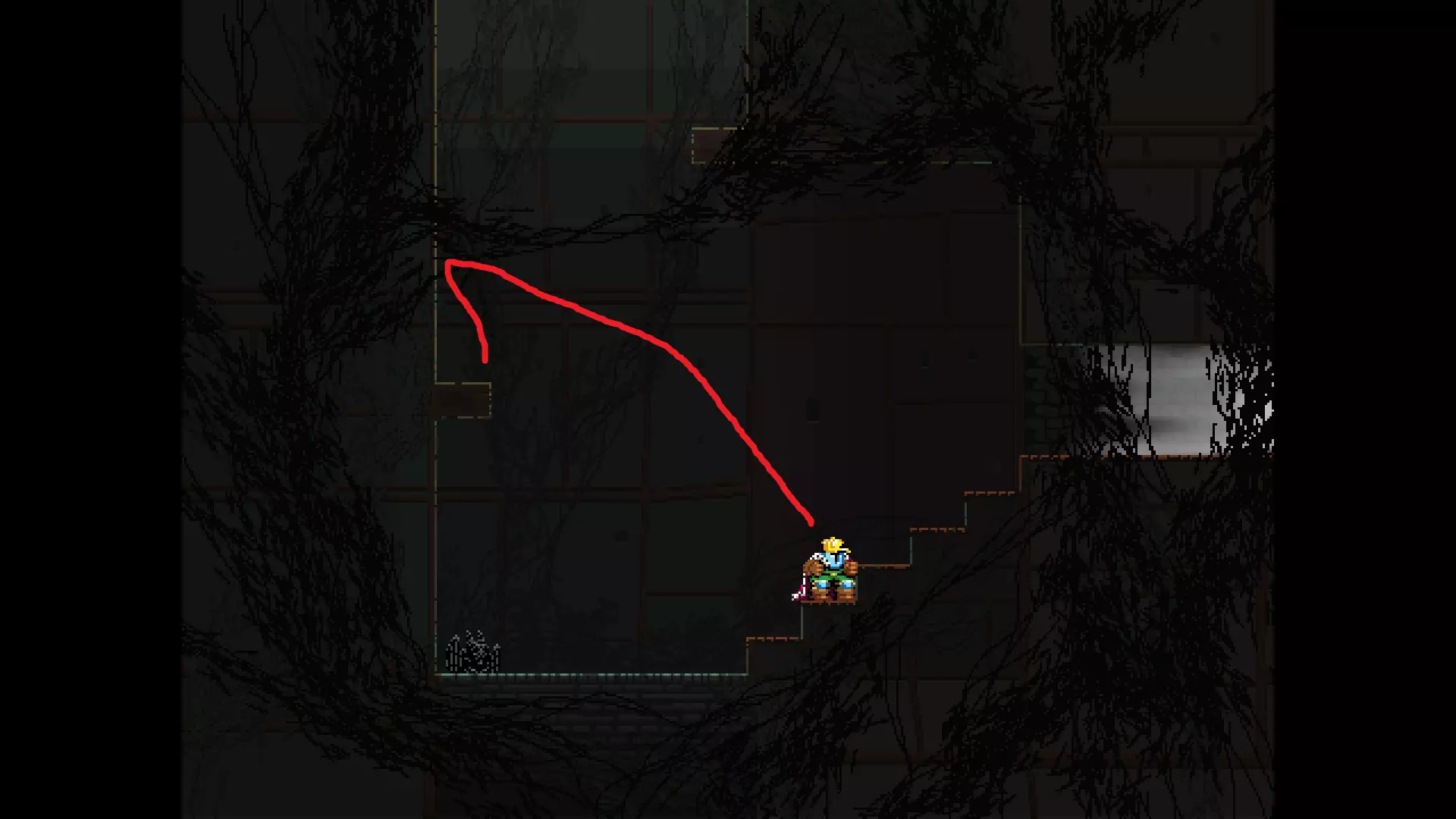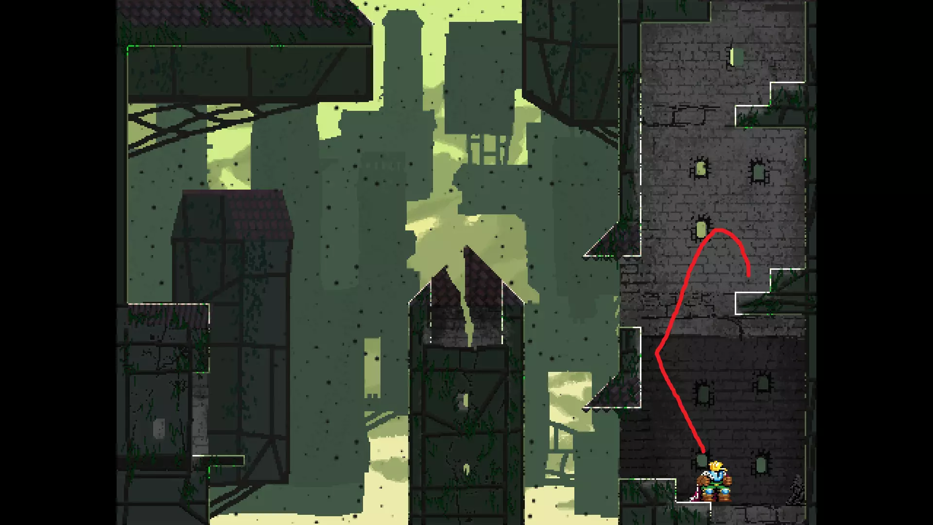 请注意,以下跳跃需要【亚像素级】的精准操作。即使你处于这个精确像素位置,也可能无法成功,除非你使用蛇形戒指稍微向右移动,确保自己处于正确的亚像素位置。