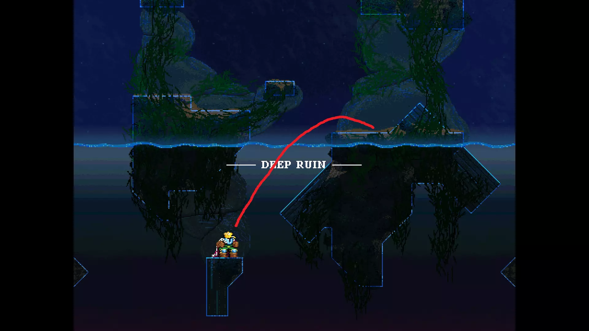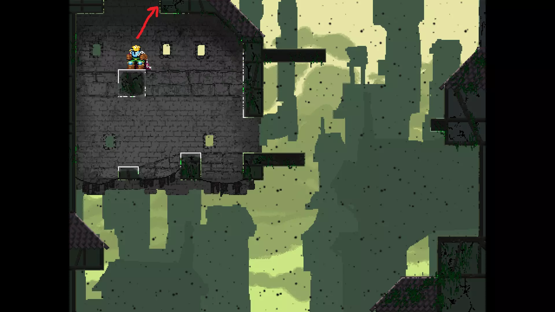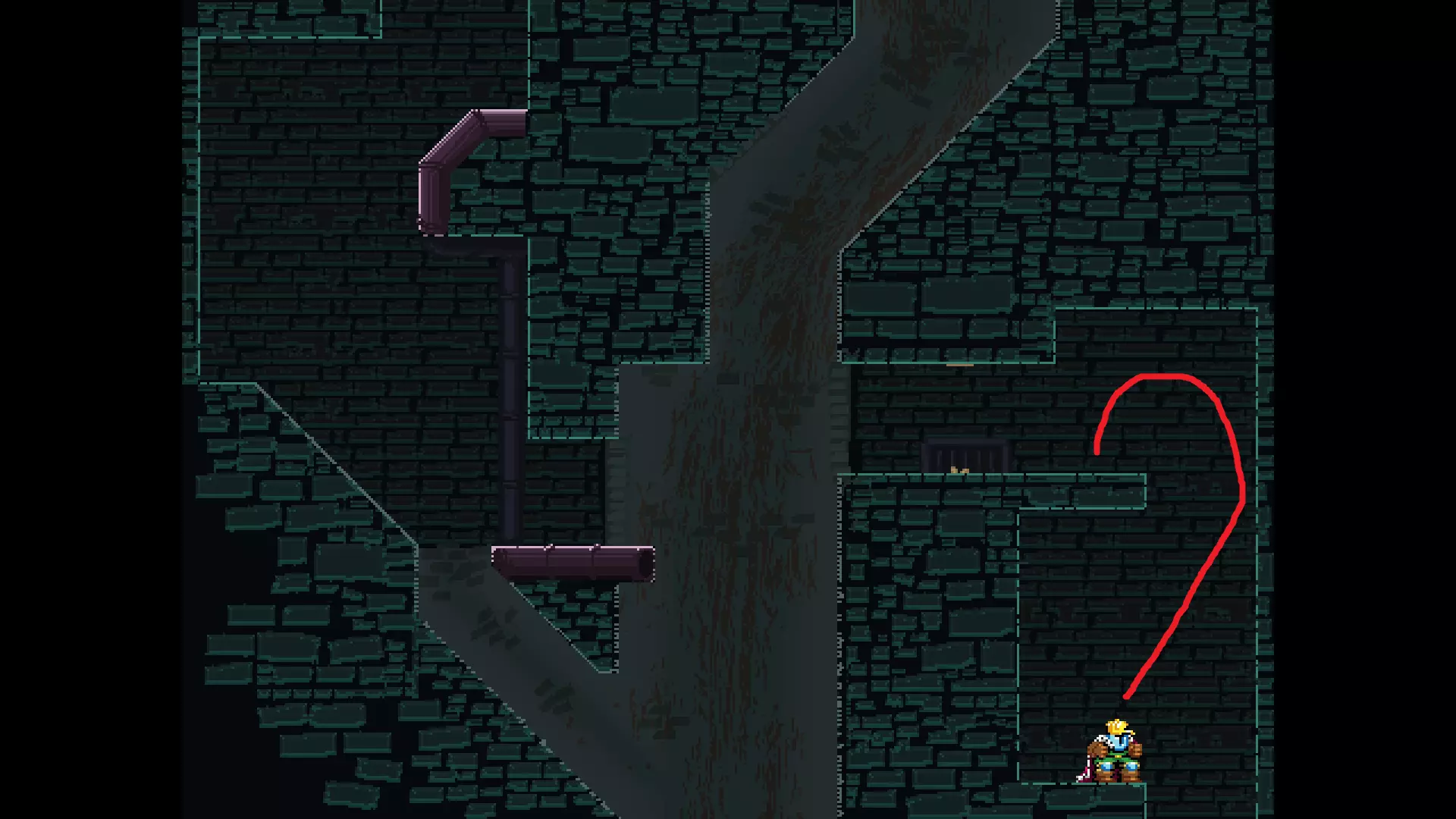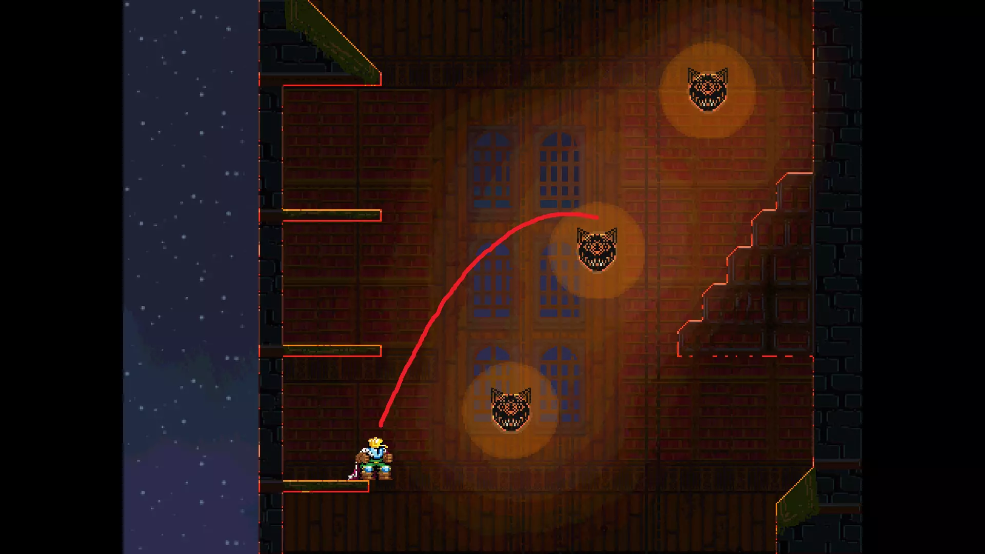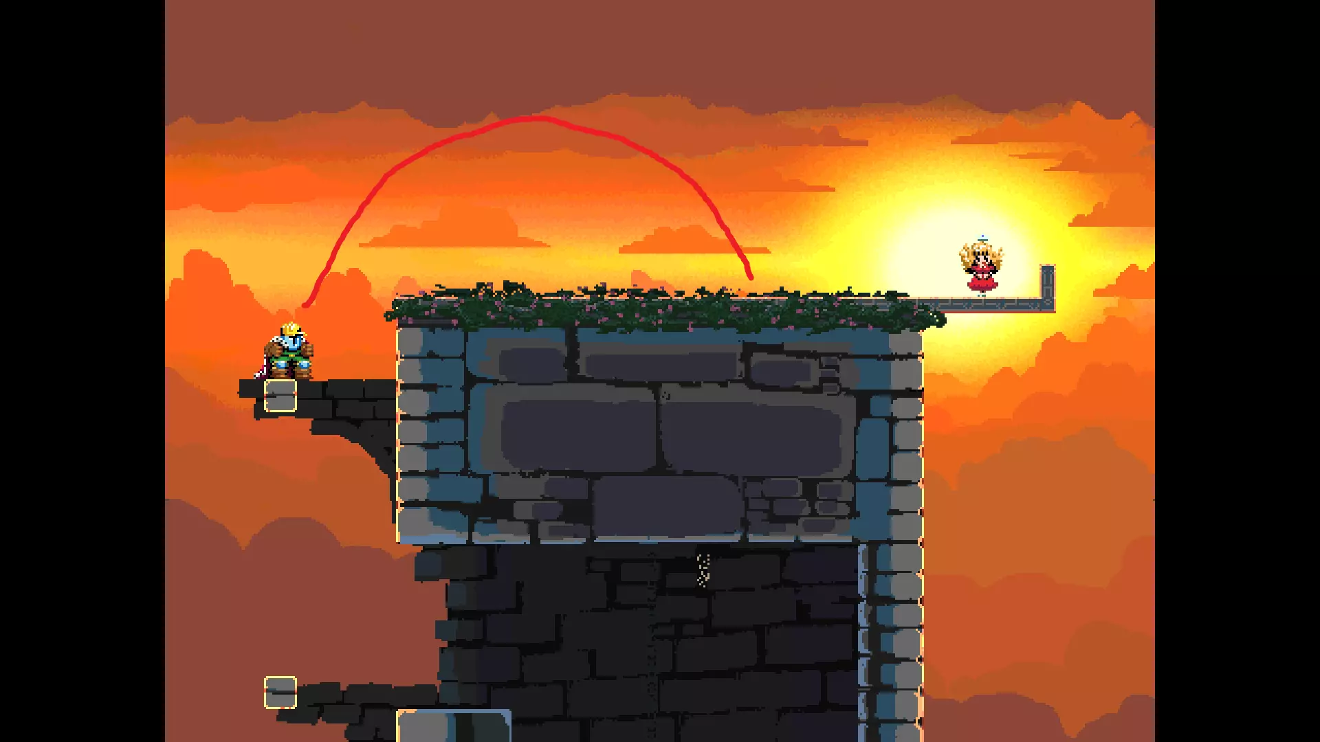 请注意,以下跳跃需要【亚像素级】的精准操作。即使你处于这个精确像素位置,也可能无法成功,除非你使用蛇形戒指稍微向右移动,确保自己处于正确的亚像素位置。