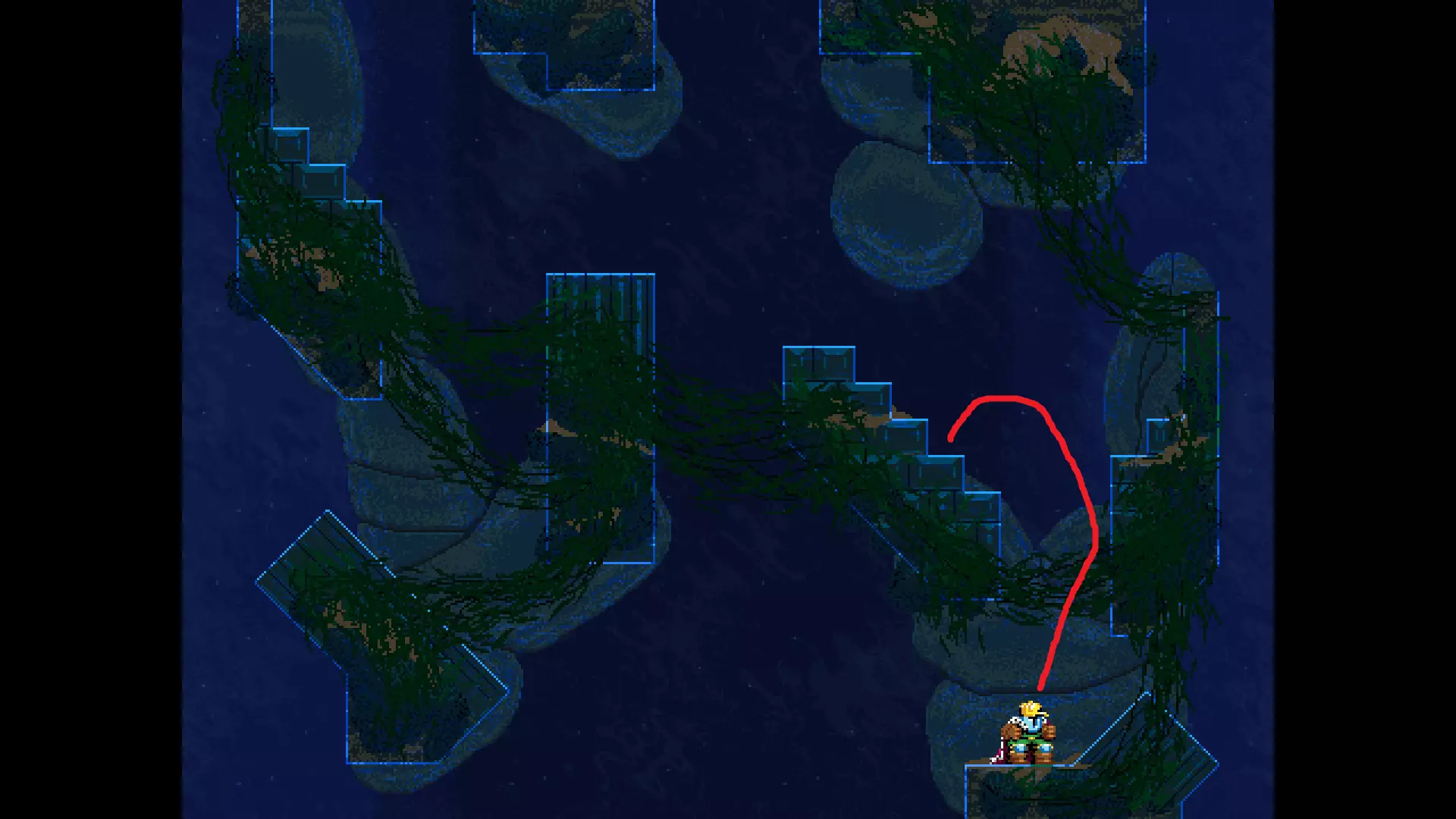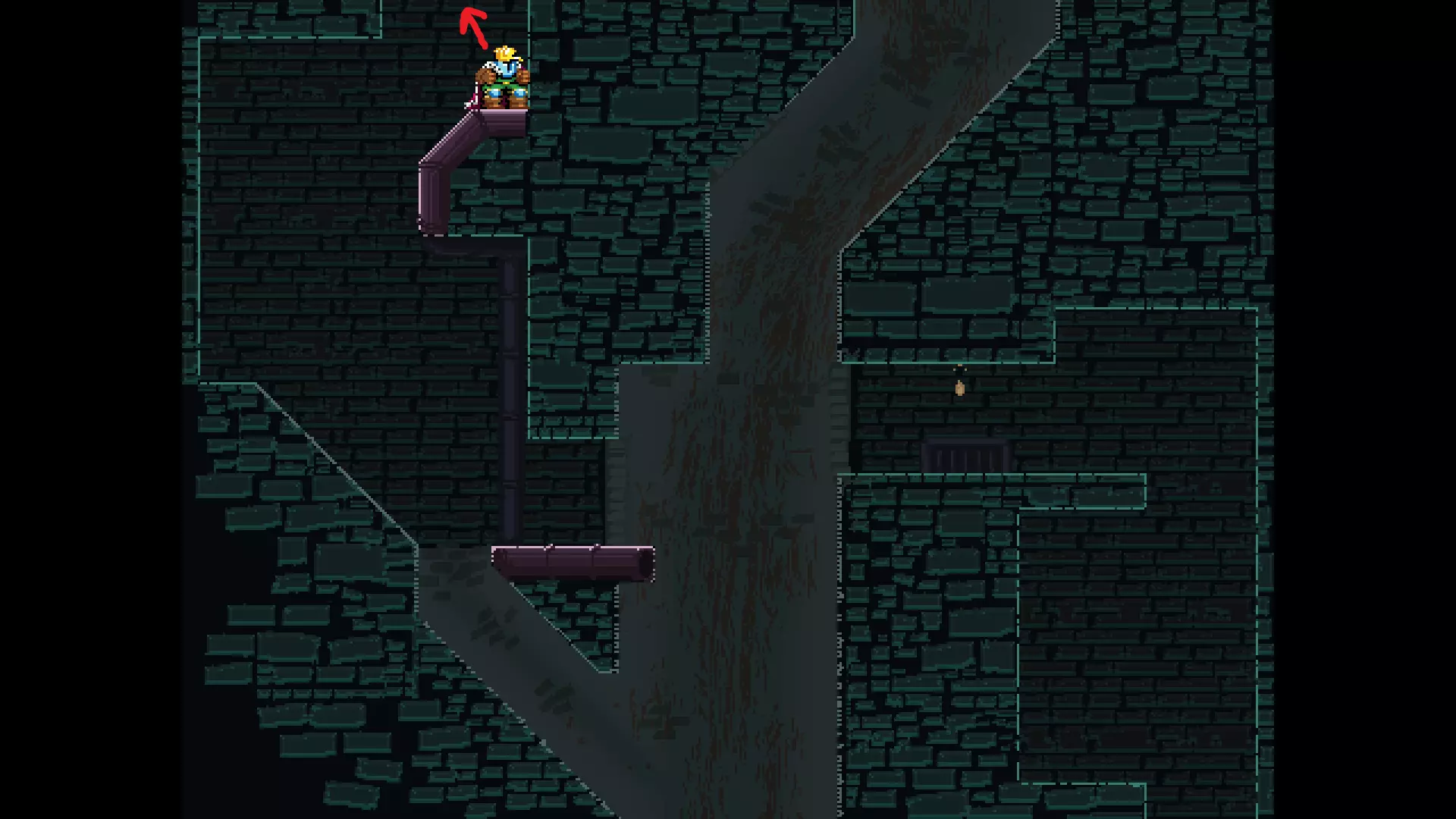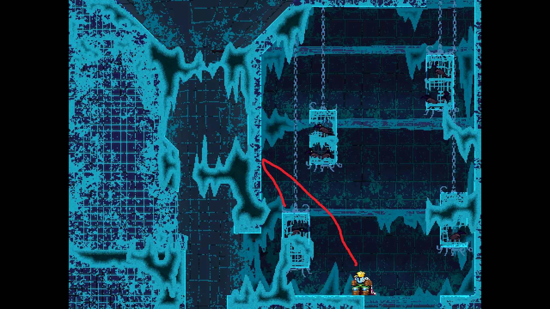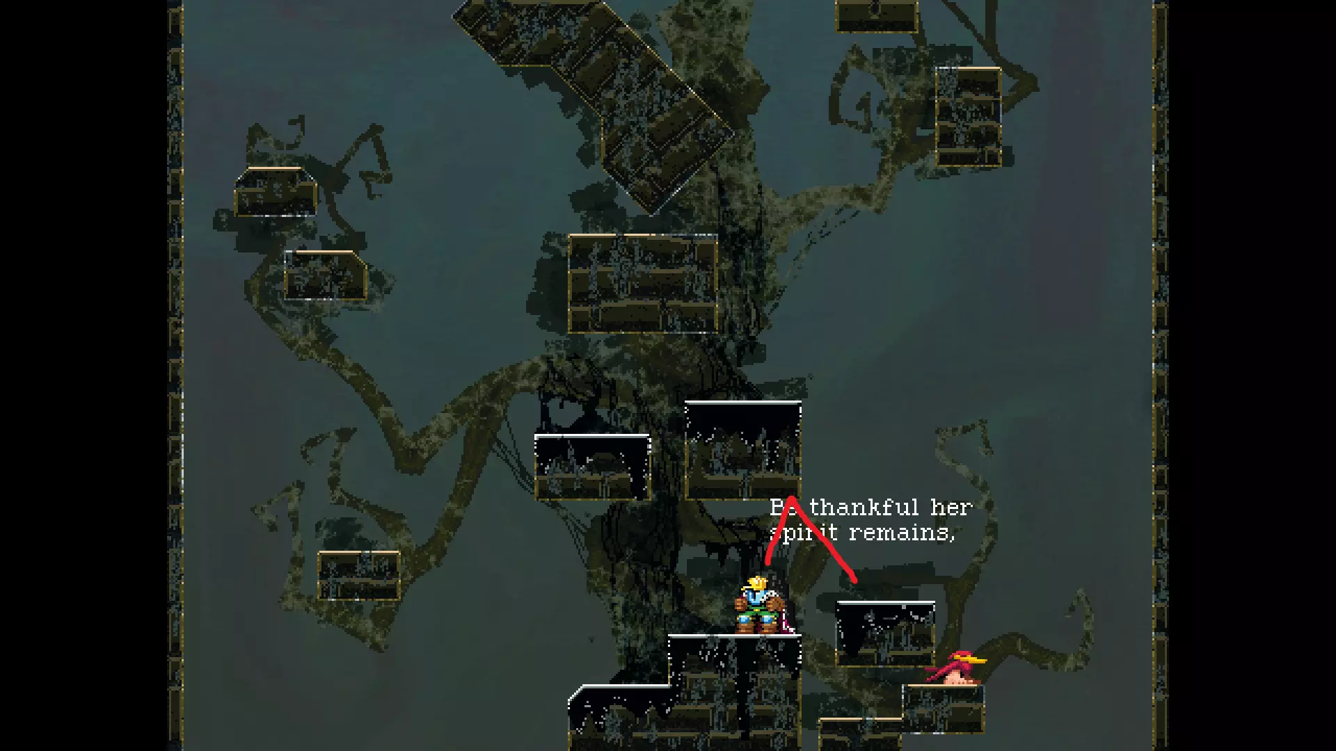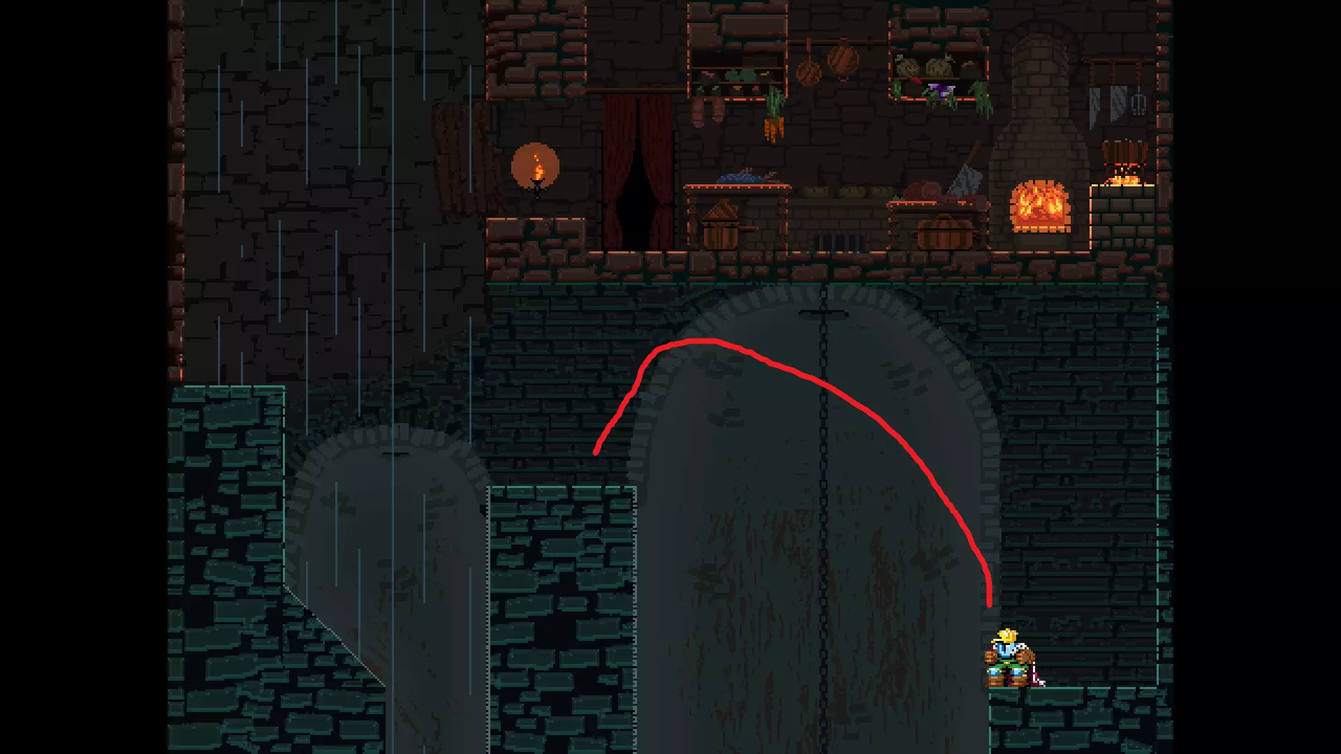 请注意,以下跳跃需要【亚像素级】的精准操作。即使你处于这个精确像素位置,也可能无法成功,除非你使用蛇形戒指稍微向右移动,确保自己处于正确的亚像素位置。