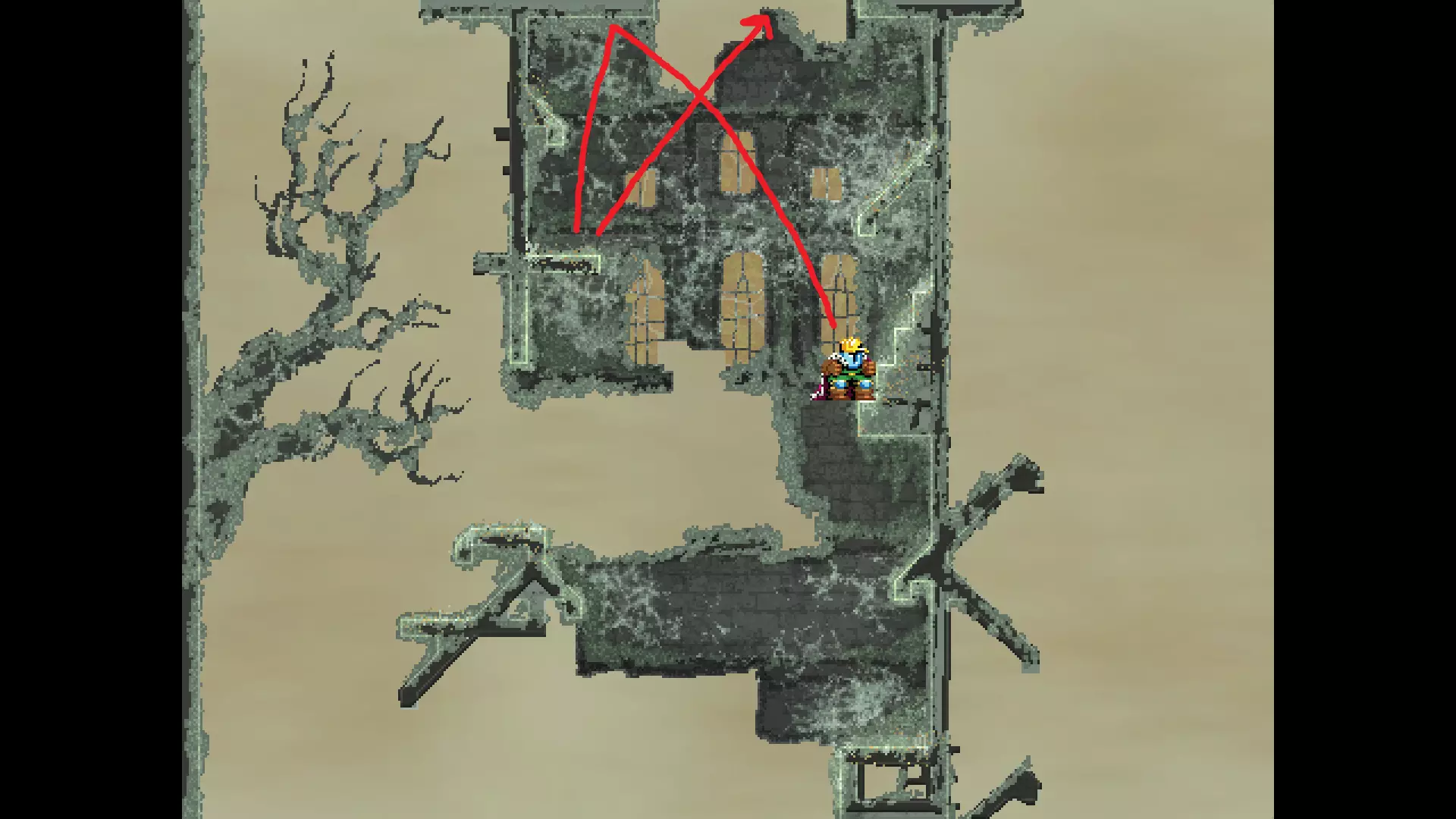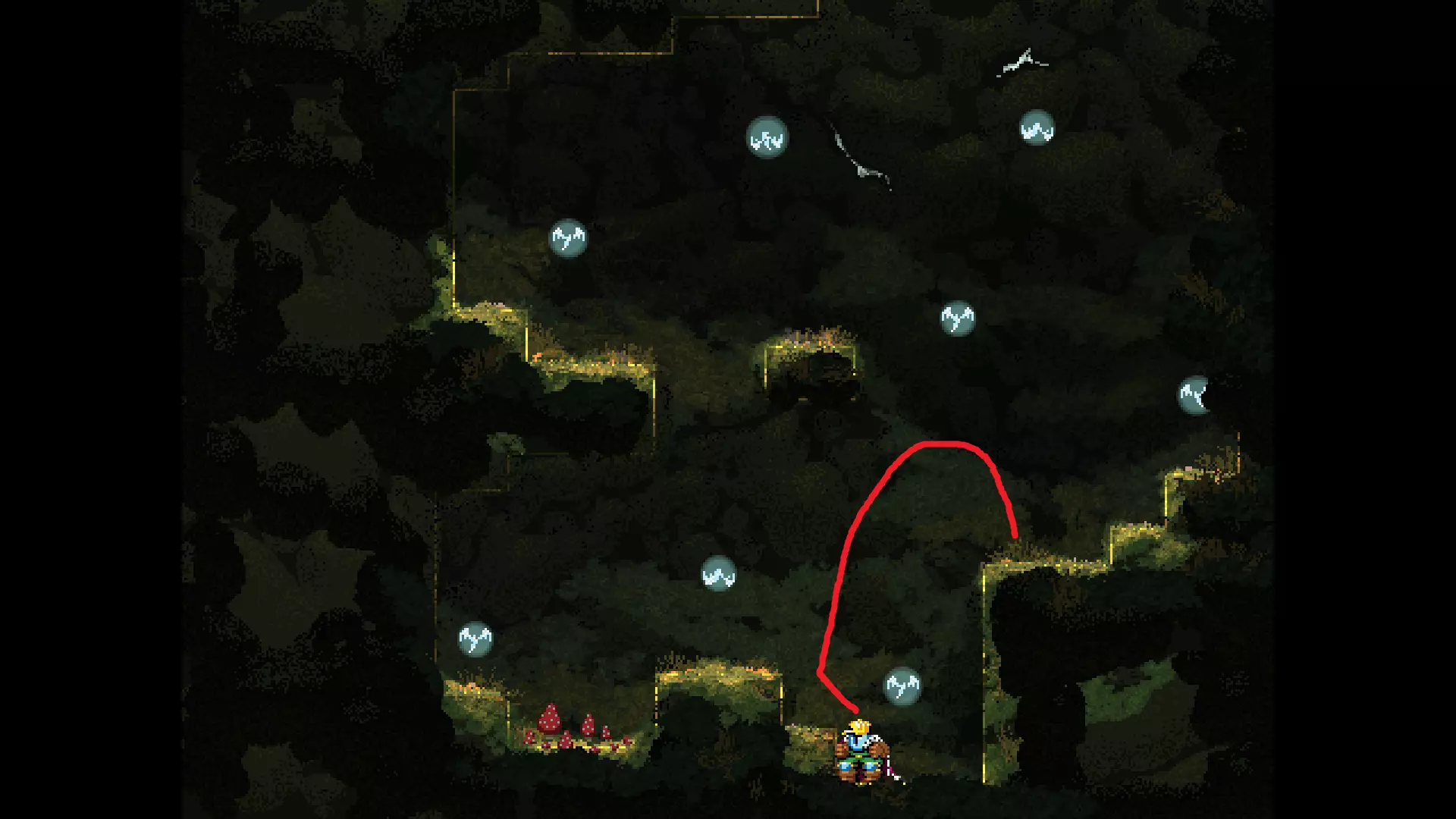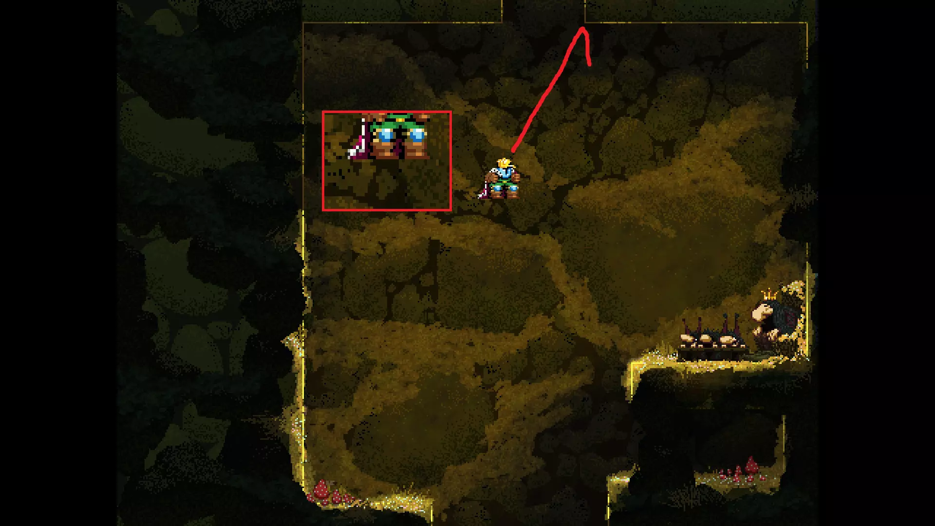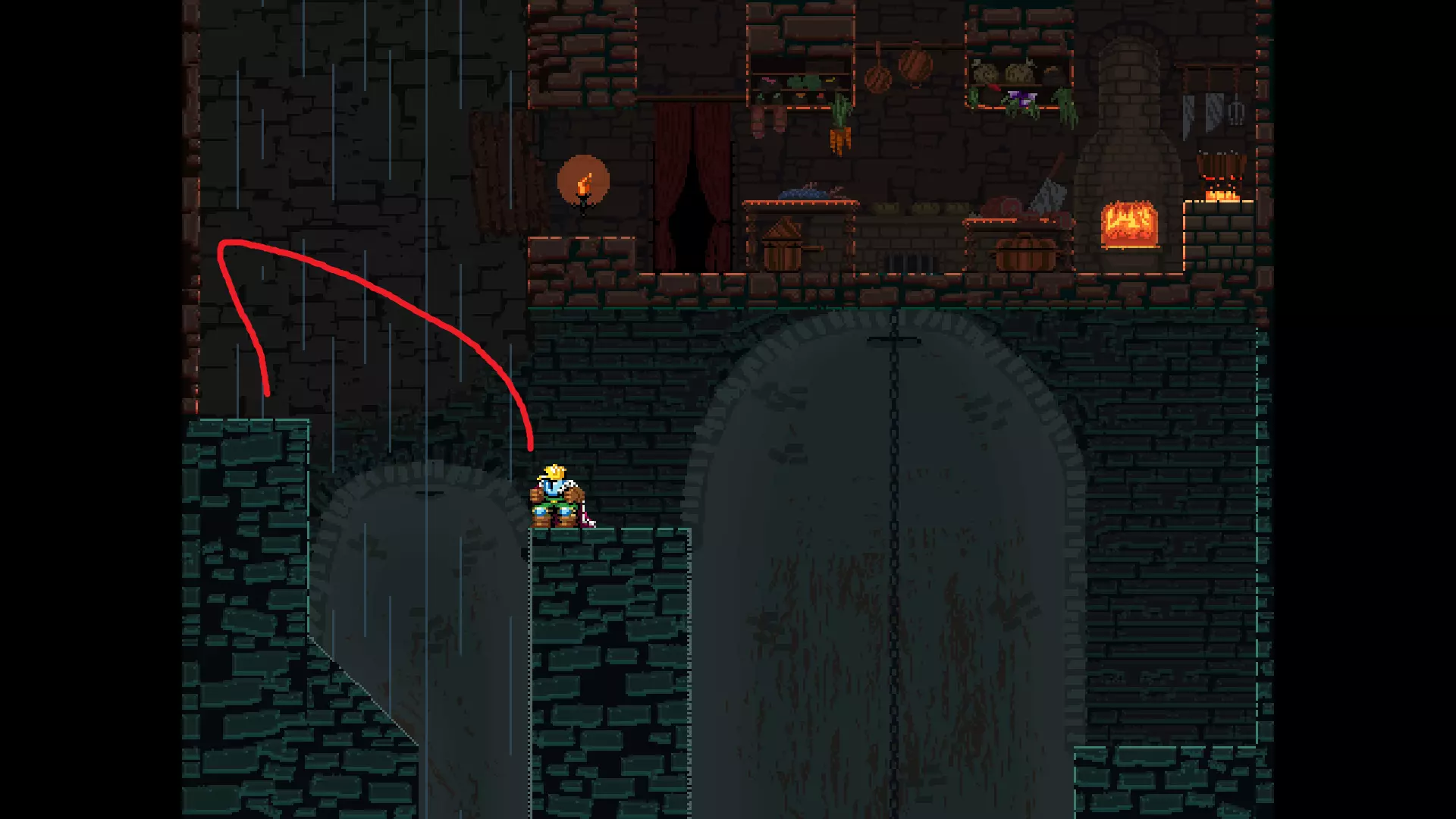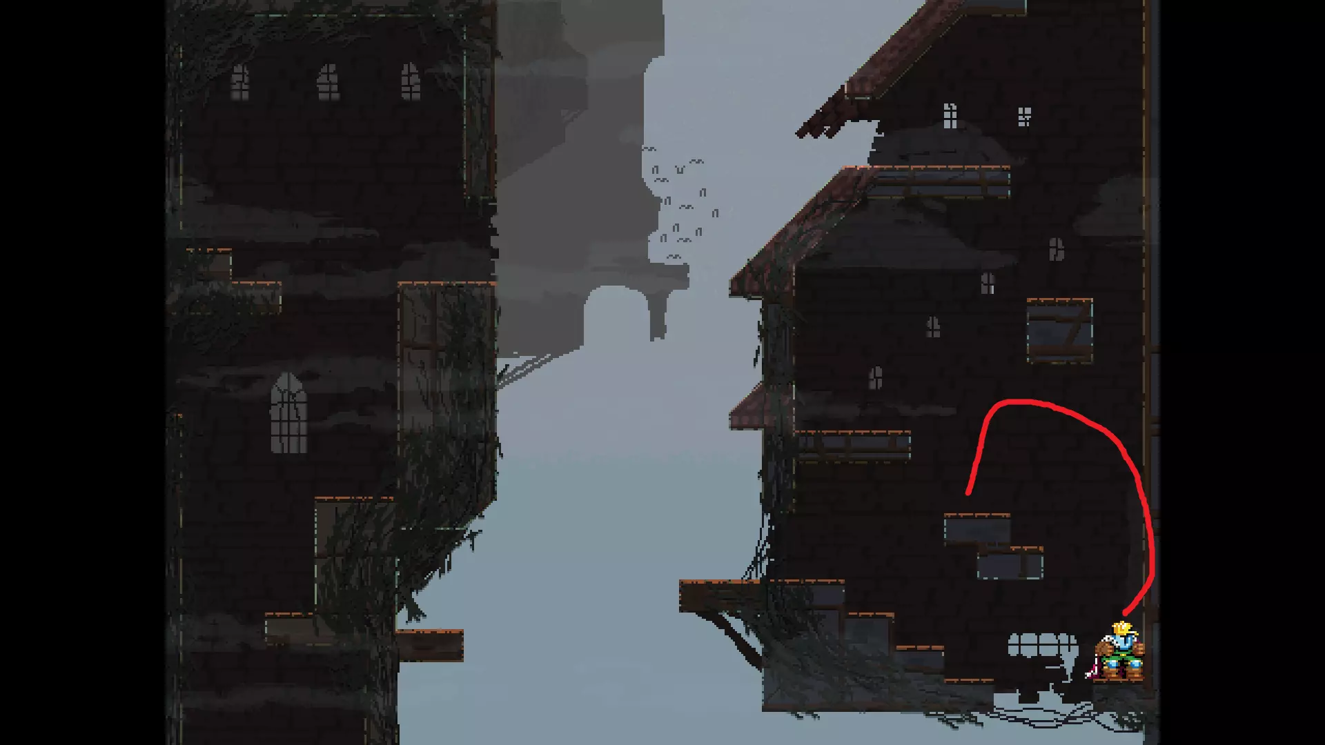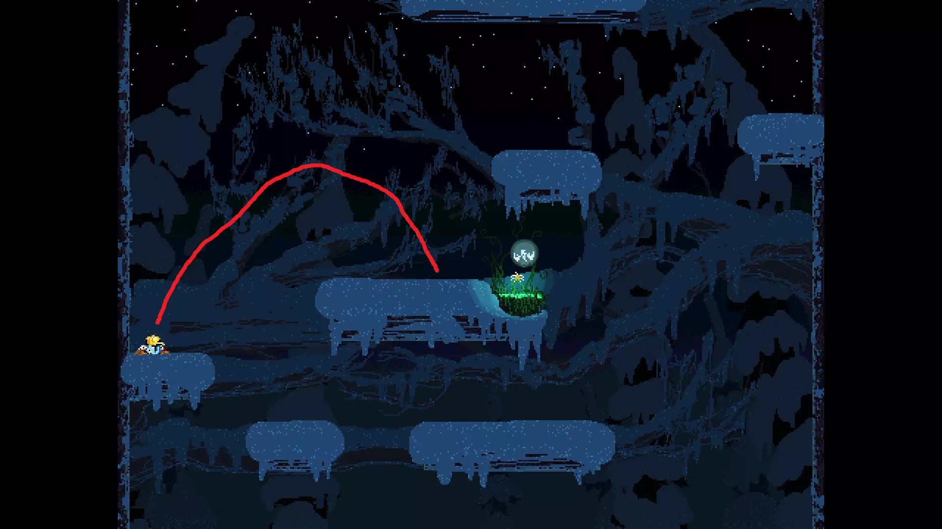 请注意,以下跳跃需要【亚像素级】的精准操作。即使你处于这个精确像素位置,也可能无法成功,除非你使用蛇形戒指稍微向右移动,确保自己处于正确的亚像素位置。