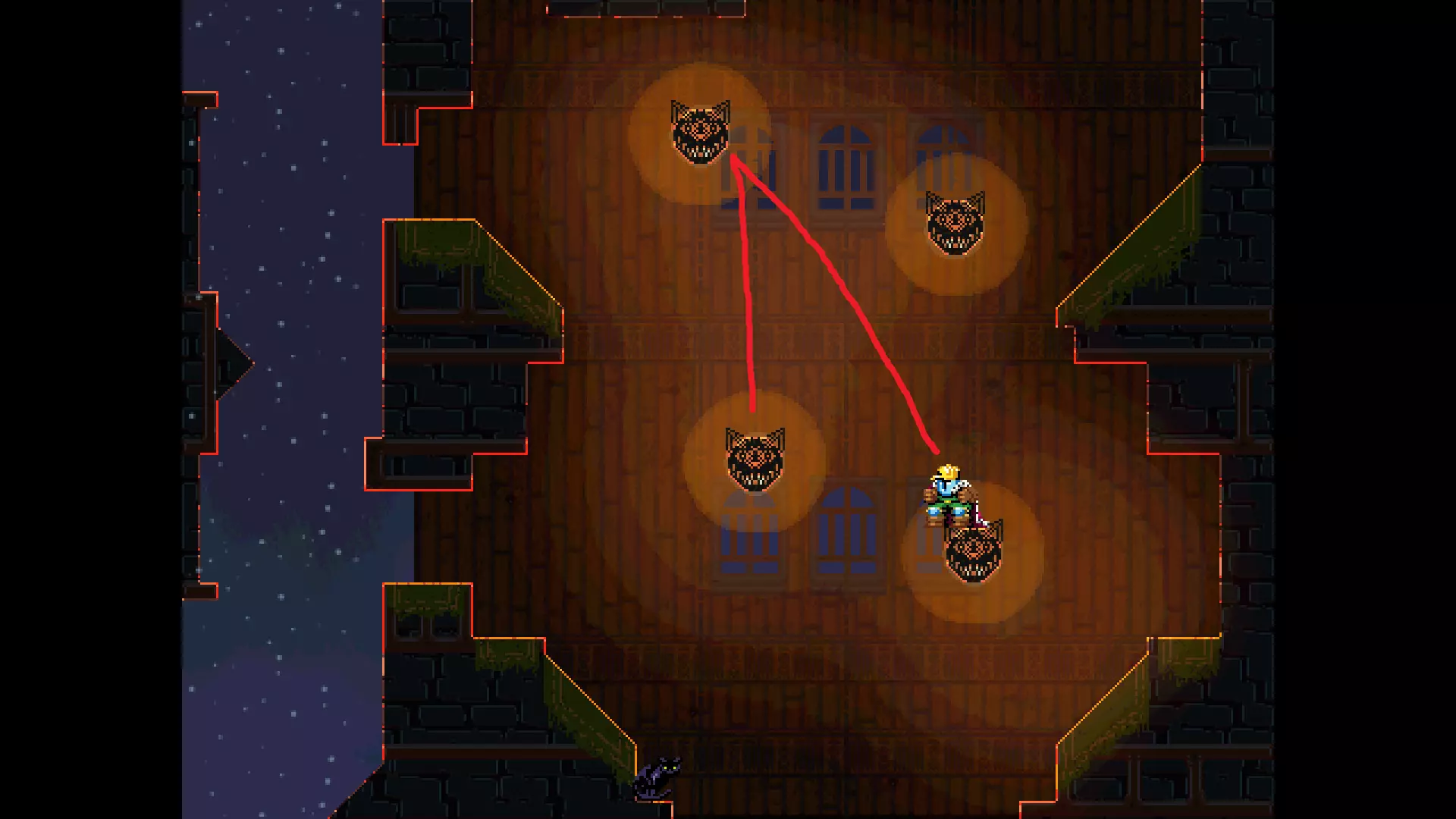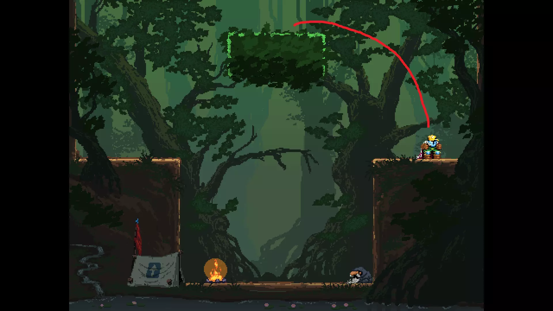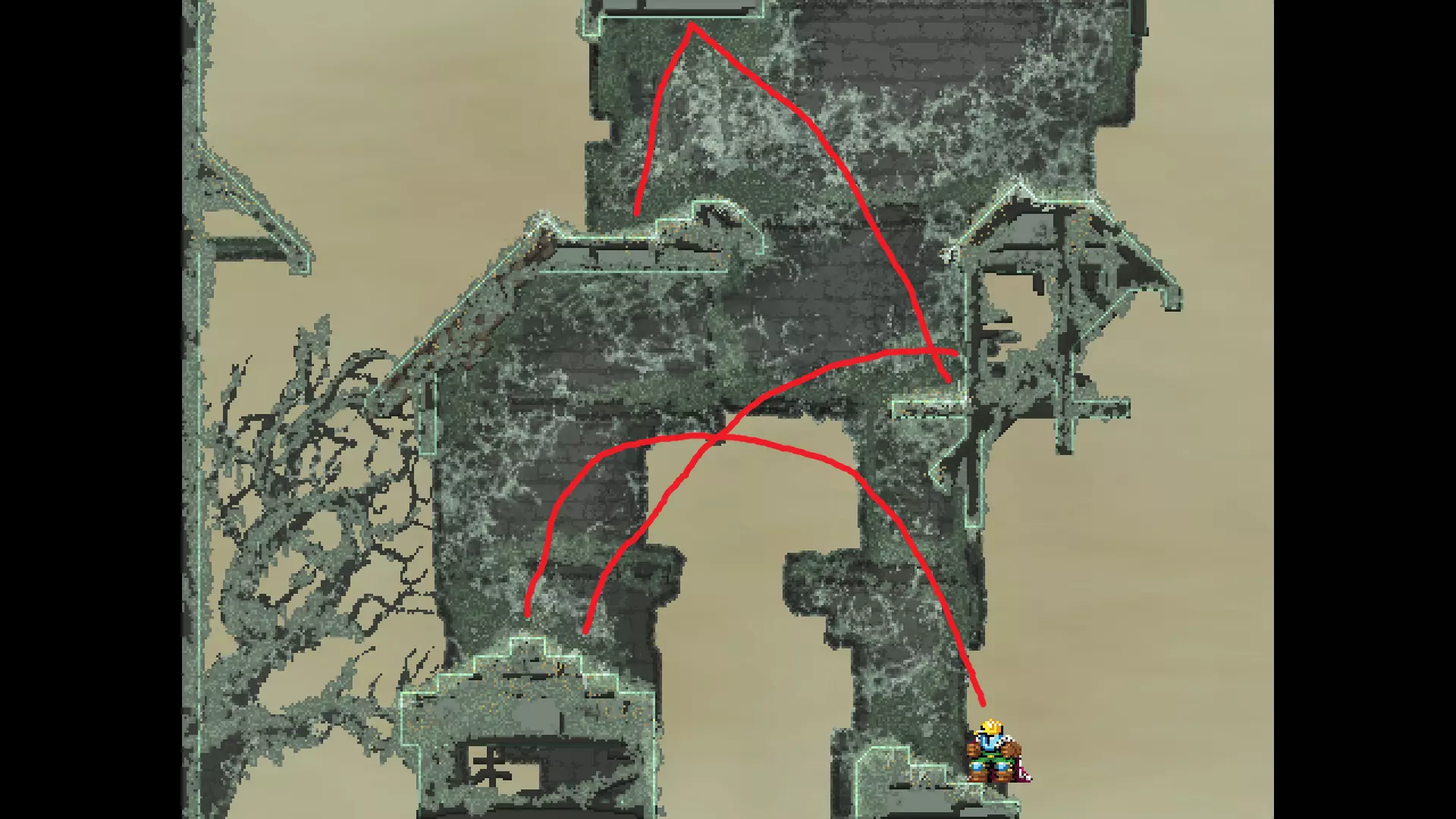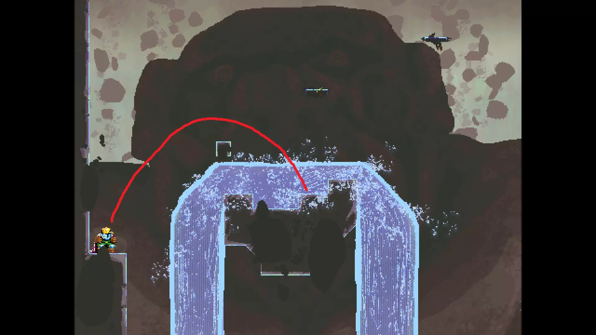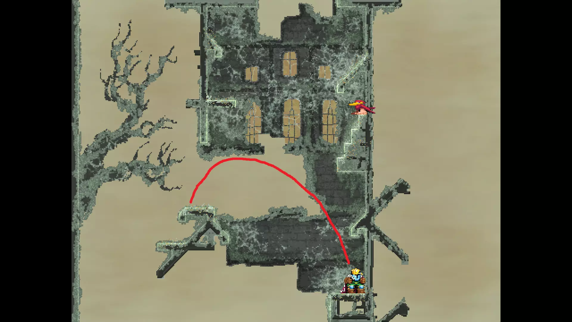 请注意,以下跳跃需要【亚像素级】的精准操作。即使你处于这个精确像素位置,也可能无法成功,除非你使用蛇形戒指稍微向右移动,确保自己处于正确的亚像素位置。