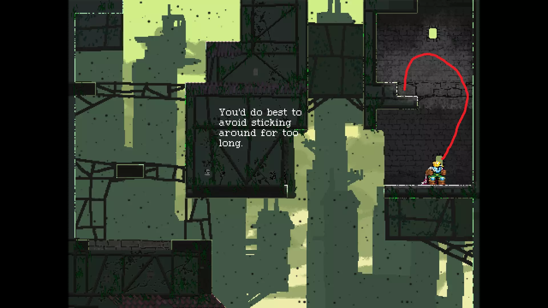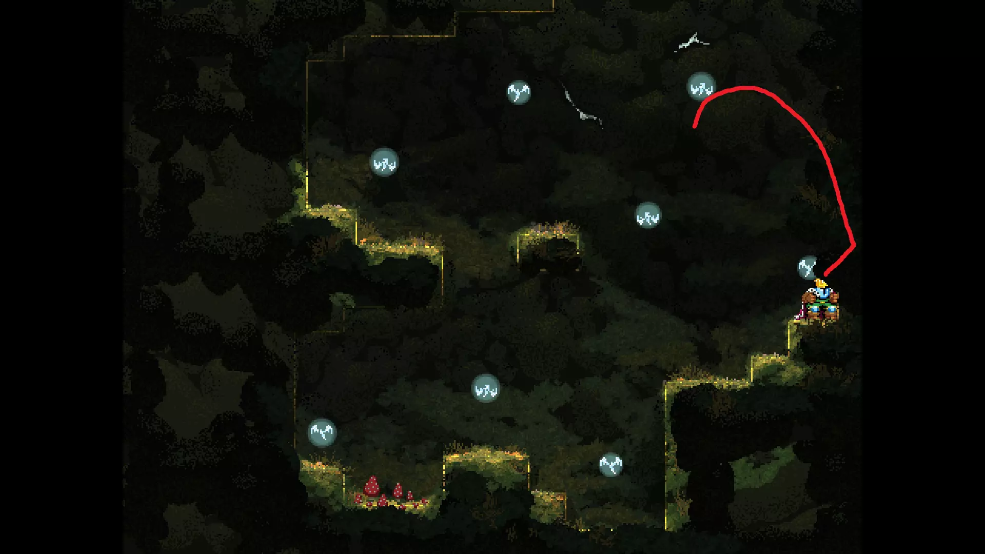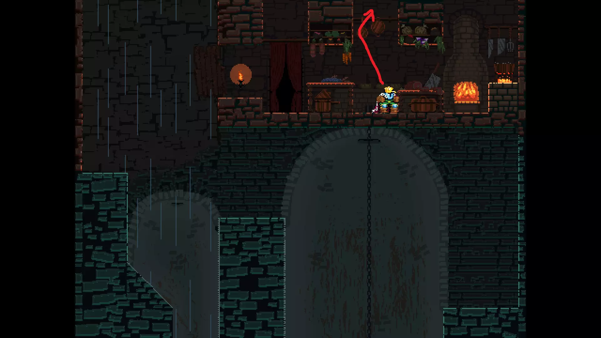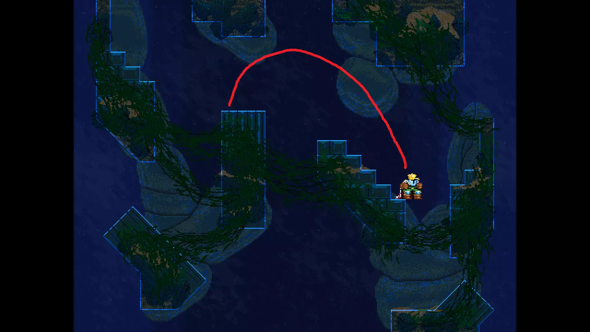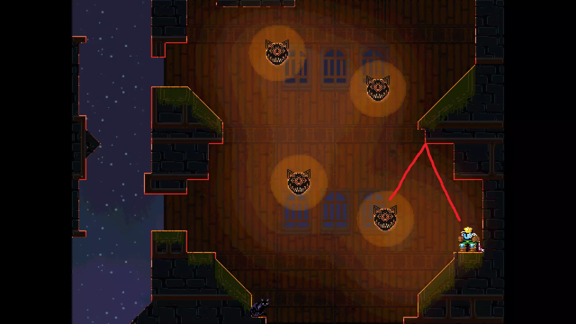 请注意,以下跳跃需要【亚像素级】的精准操作。即使你处于这个精确像素位置,也可能无法成功,除非你使用蛇形戒指稍微向右移动,确保自己处于正确的亚像素位置。