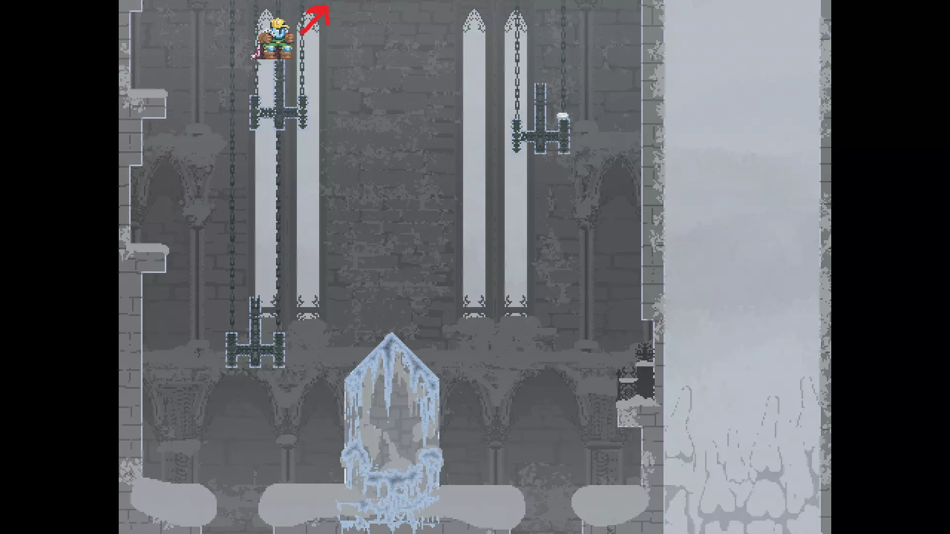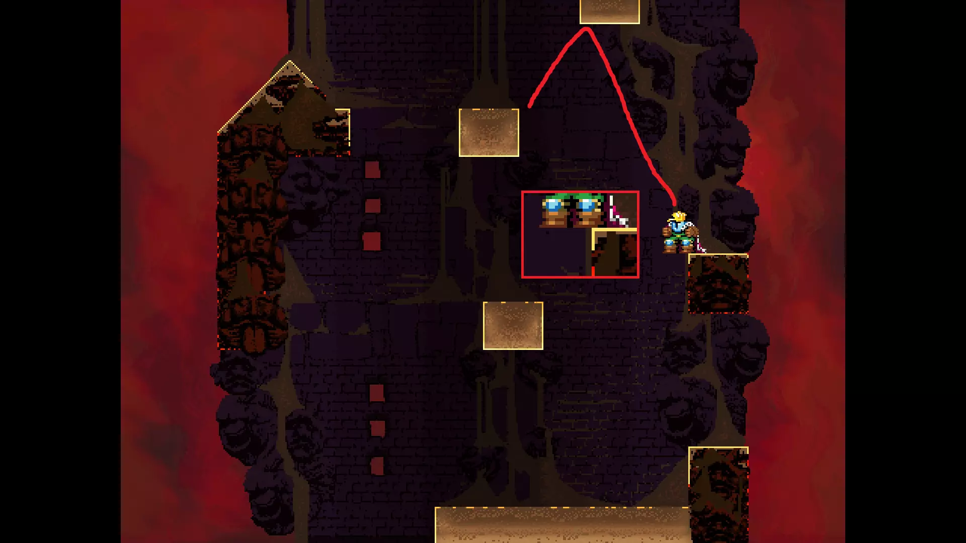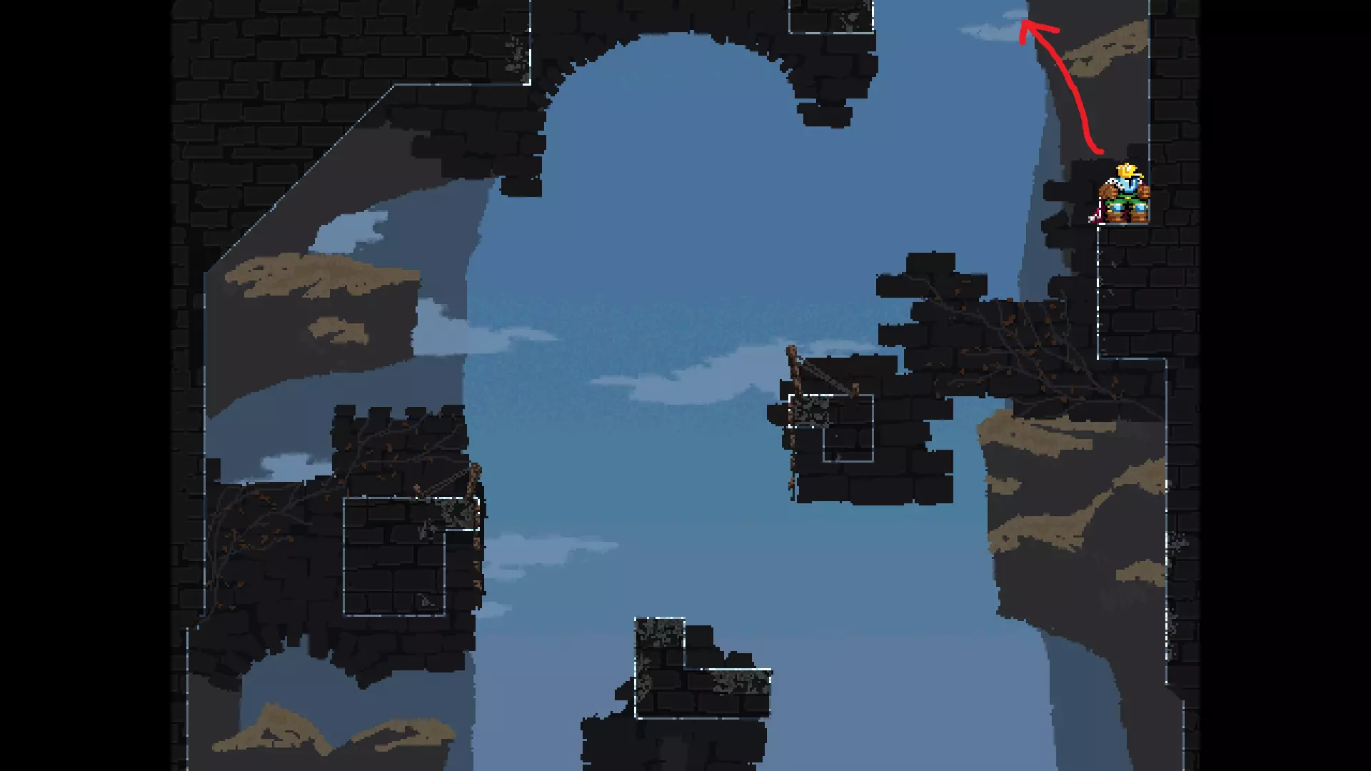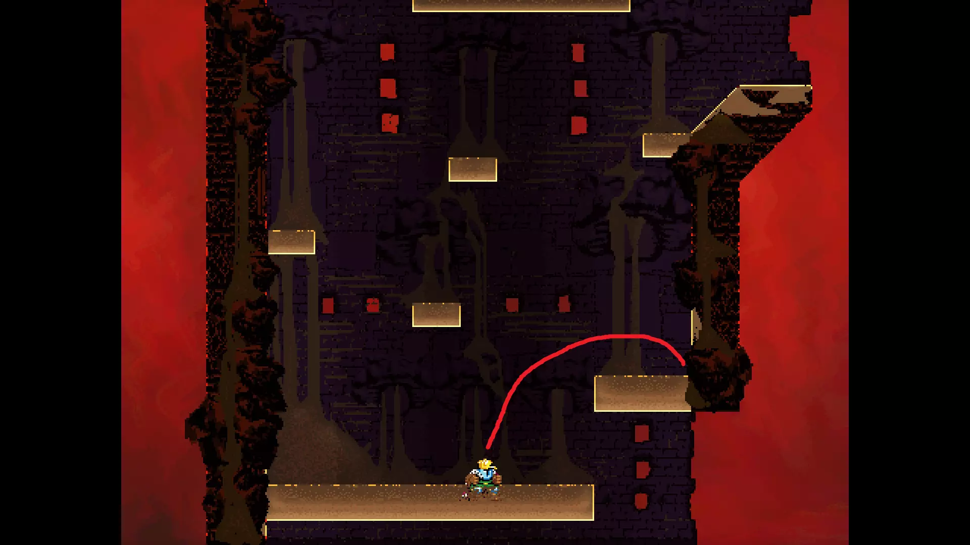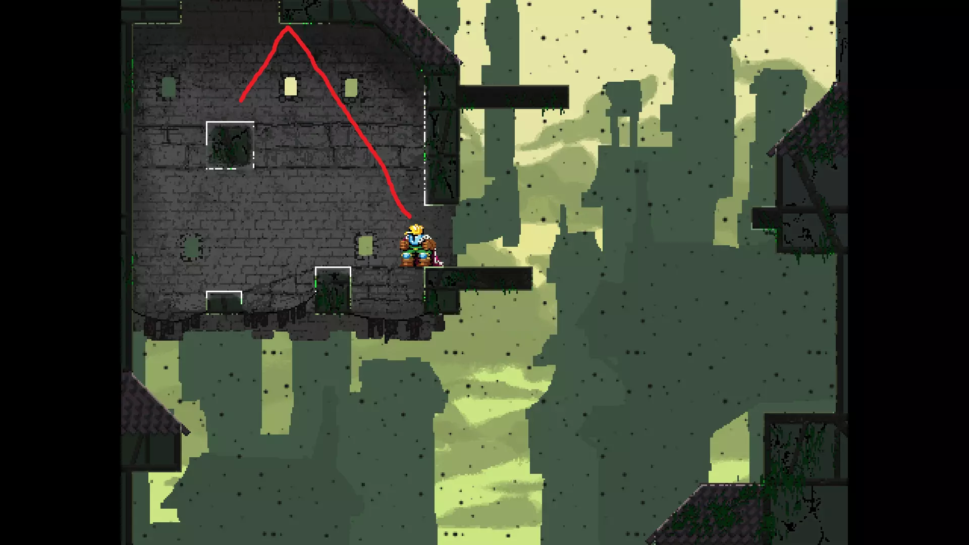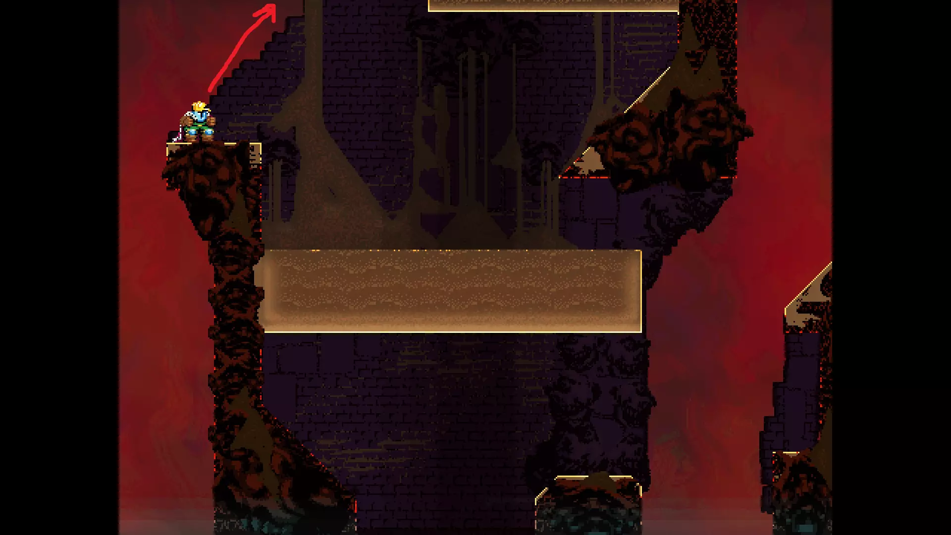 每个可全力施展的跳跃动作的截图与引导箭头。 简介 本指南旨在帮助那些需要一点额外帮助来冲过终点线的玩家。我是那种会观看他人通关视频并学习其操作的玩家。这款游戏本身已经足够困难,没必要再做一些不必要的跳跃。如果我能用全力跳跃来确保成功,我就会这么做。 如果你也是这样的玩家,那么本指南适合你。如果你想完全靠自己完成所有挑战,我尊重你,但请现在离开。 本指南并非旨在展示所有情况下最快或最佳的跳跃方式,而只是展示我能够确保使用全力跳跃就能成功的位置。请密切注意脚部的位置。有些跳跃比其他跳跃要精确得多。如果是像素级精准,我会显示脚部的放大窗口来帮助你对齐。特别感谢Jump King Discord中那些疯狂的人们,他们指出了我遗漏的许多跳跃点。尤其要感谢kebb、Memzy64u、DrJump_、Rossiyan和Abaddon。主游戏 - 传说中的宝贝