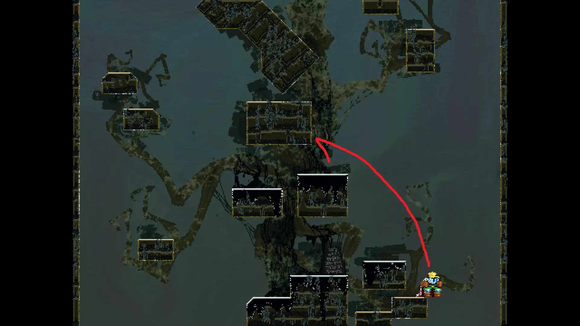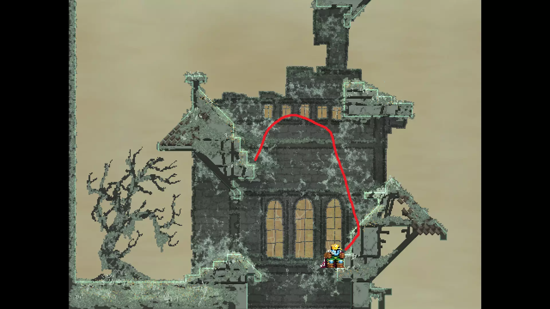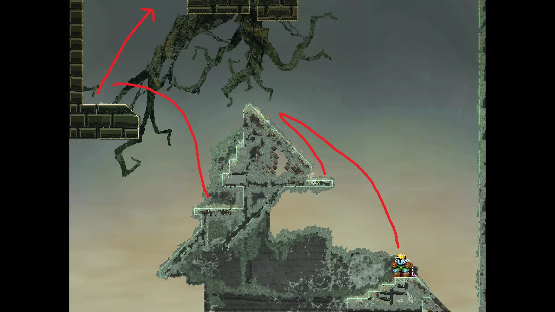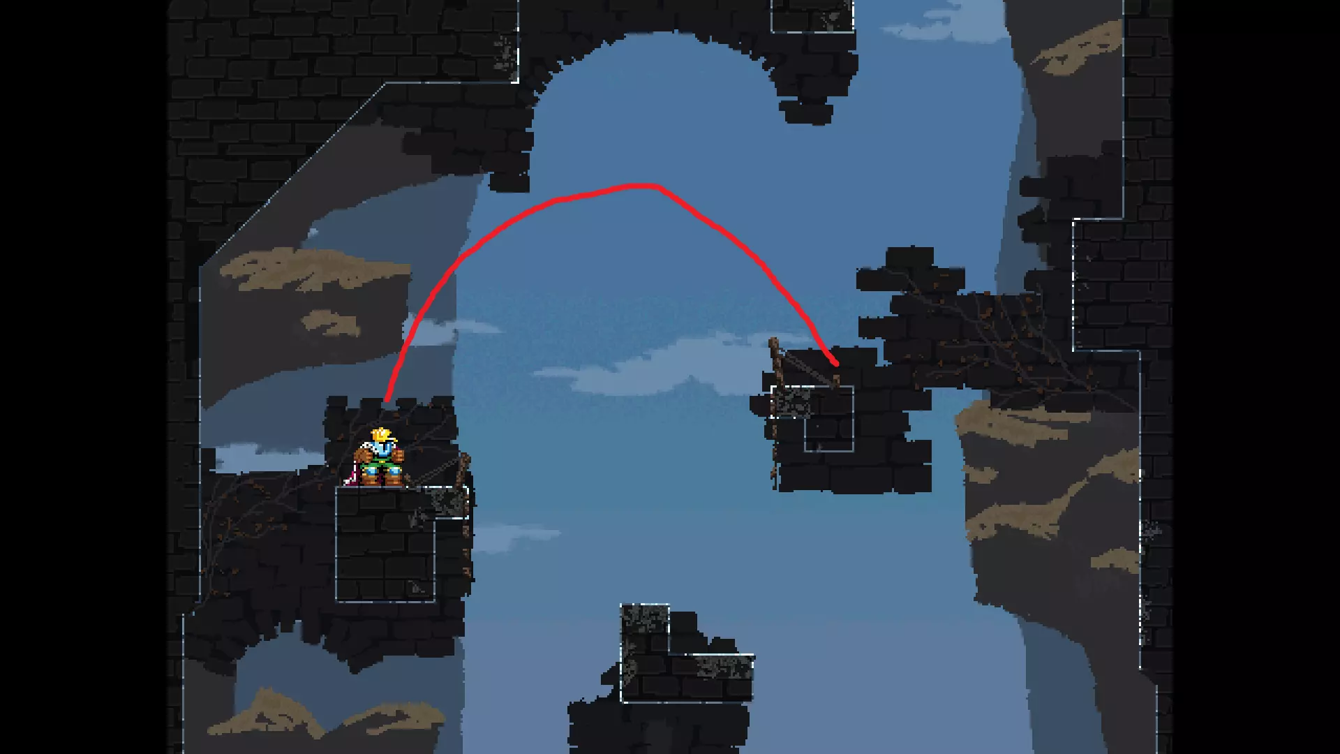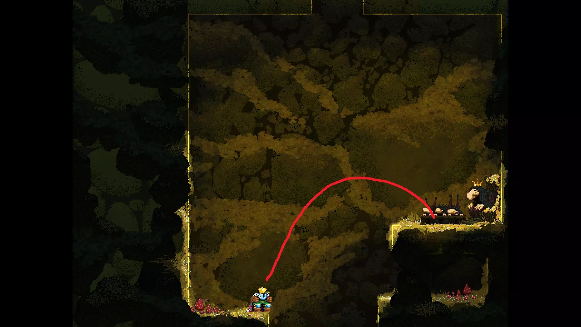 每个可全力施展的跳跃动作的截图与引导箭头。 简介 本指南旨在帮助那些需要一点额外帮助来冲过终点线的玩家。我是那种会观看他人通关视频并学习其操作的玩家。这款游戏本身已经足够困难,没必要再做一些不必要的跳跃。如果我能用全力跳跃来确保成功,我就会这么做。 如果你也是这样的玩家,那么本指南适合你。如果你想完全靠自己完成所有挑战,我尊重你,但请现在离开。 本指南并非旨在展示所有情况下最快或最佳的跳跃方式,而只是展示我能够确保使用全力跳跃就能成功的位置。请密切注意脚部的位置。有些跳跃比其他跳跃要精确得多。如果是像素级精准,我会显示脚部的放大窗口来帮助你对齐。特别感谢Jump King Discord中那些疯狂的人们,他们指出了我遗漏的许多跳跃点。尤其要感谢kebb、Memzy64u、DrJump_、Rossiyan和Abaddon。主游戏 - 传说中的宝贝