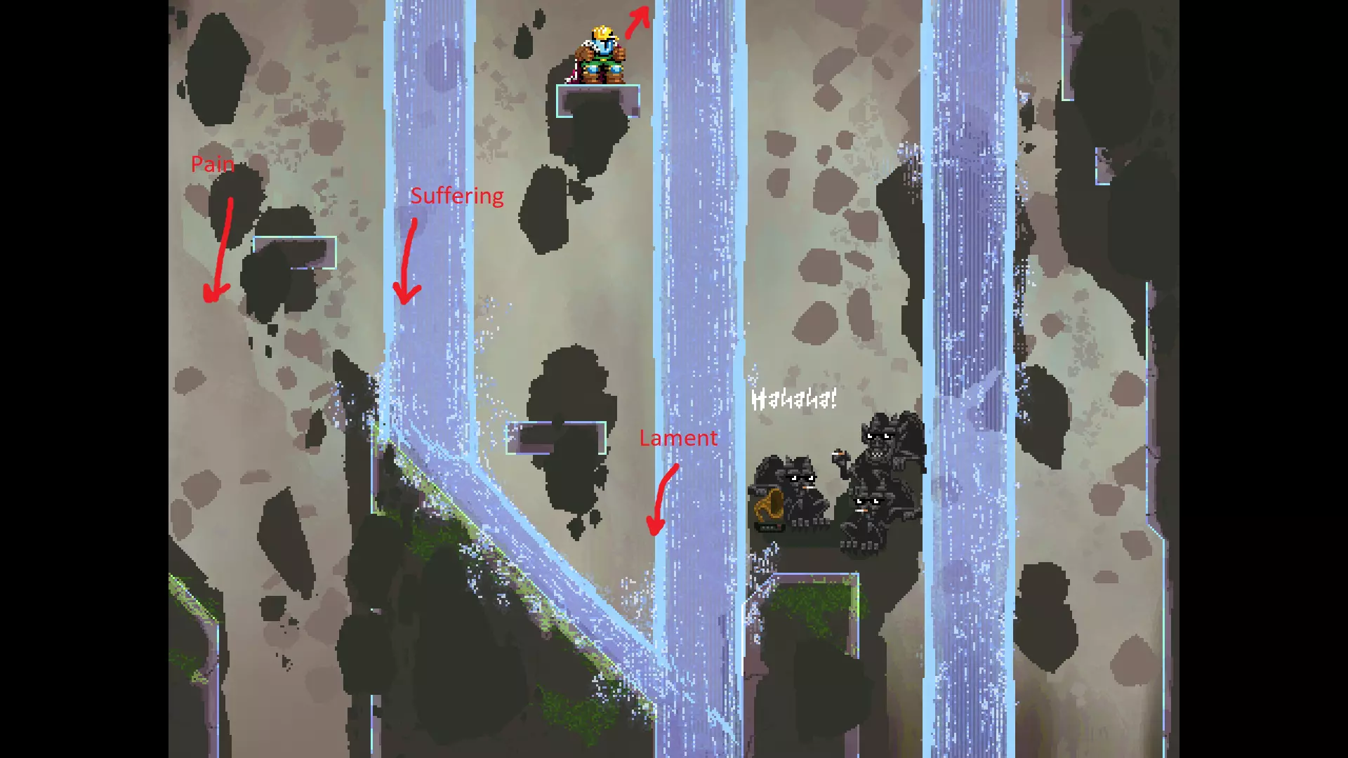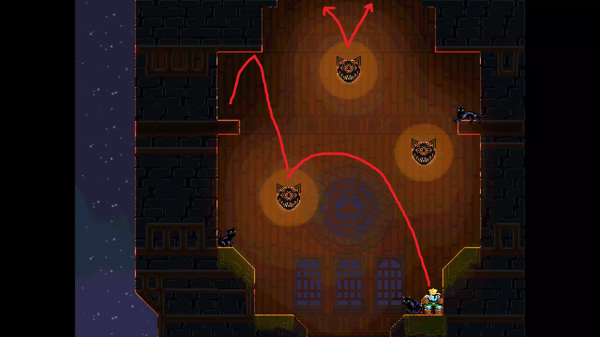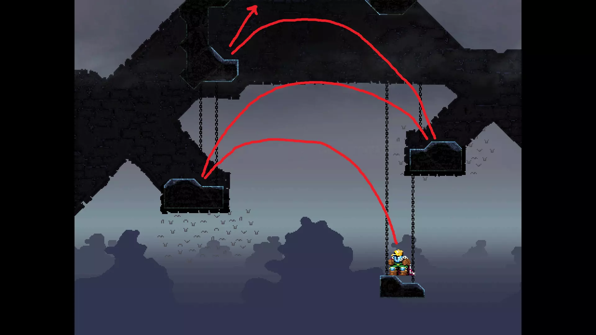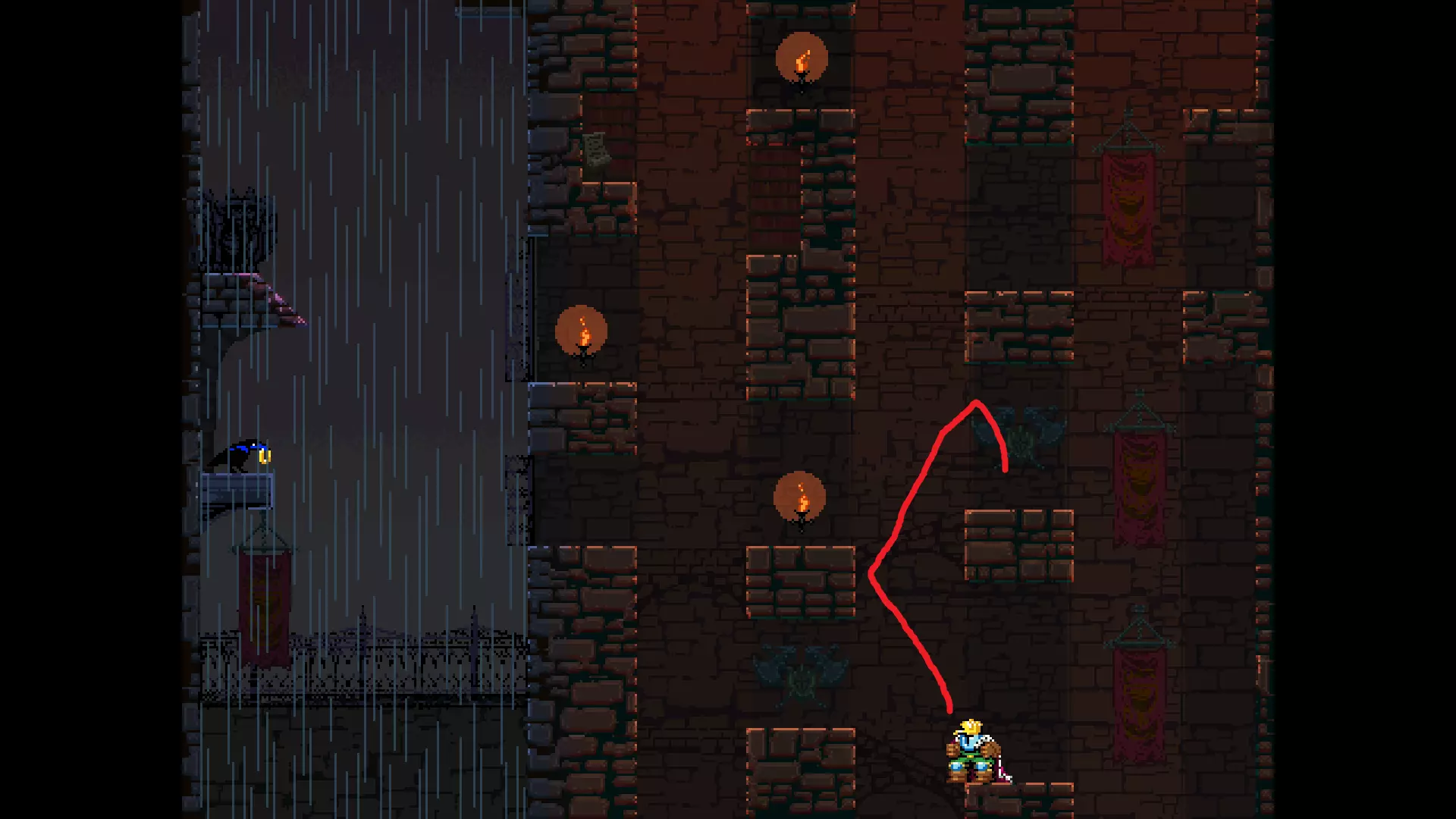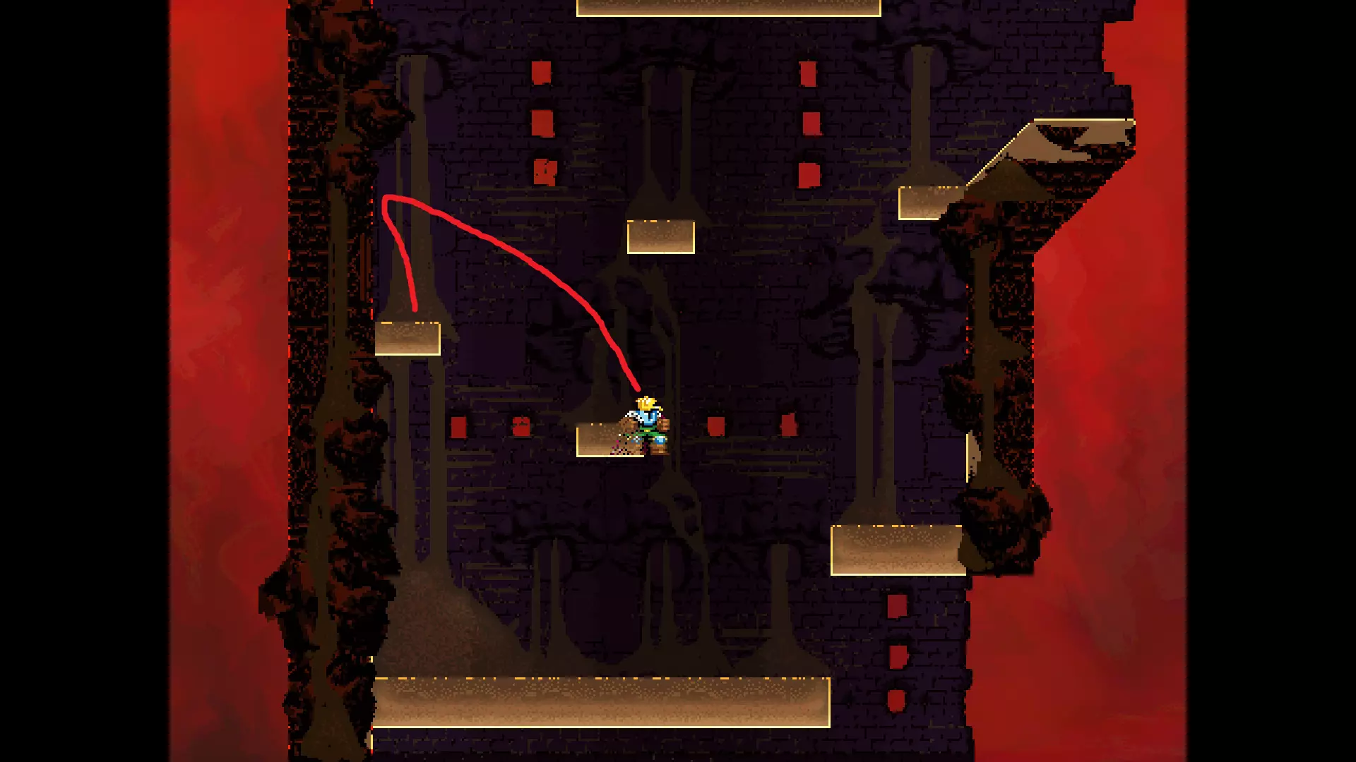 每个可全力施展的跳跃动作的截图与引导箭头。 简介 本指南旨在帮助那些需要一点额外帮助来冲过终点线的玩家。我是那种会观看他人通关视频并学习其操作的玩家。这款游戏本身已经足够困难,没必要再做一些不必要的跳跃。如果我能用全力跳跃来确保成功,我就会这么做。 如果你也是这样的玩家,那么本指南适合你。如果你想完全靠自己完成所有挑战,我尊重你,但请现在离开。 本指南并非旨在展示所有情况下最快或最佳的跳跃方式,而只是展示我能够确保使用全力跳跃就能成功的位置。请密切注意脚部的位置。有些跳跃比其他跳跃要精确得多。如果是像素级精准,我会显示脚部的放大窗口来帮助你对齐。特别感谢Jump King Discord中那些疯狂的人们,他们指出了我遗漏的许多跳跃点。尤其要感谢kebb、Memzy64u、DrJump_、Rossiyan和Abaddon。主游戏 - 传说中的宝贝