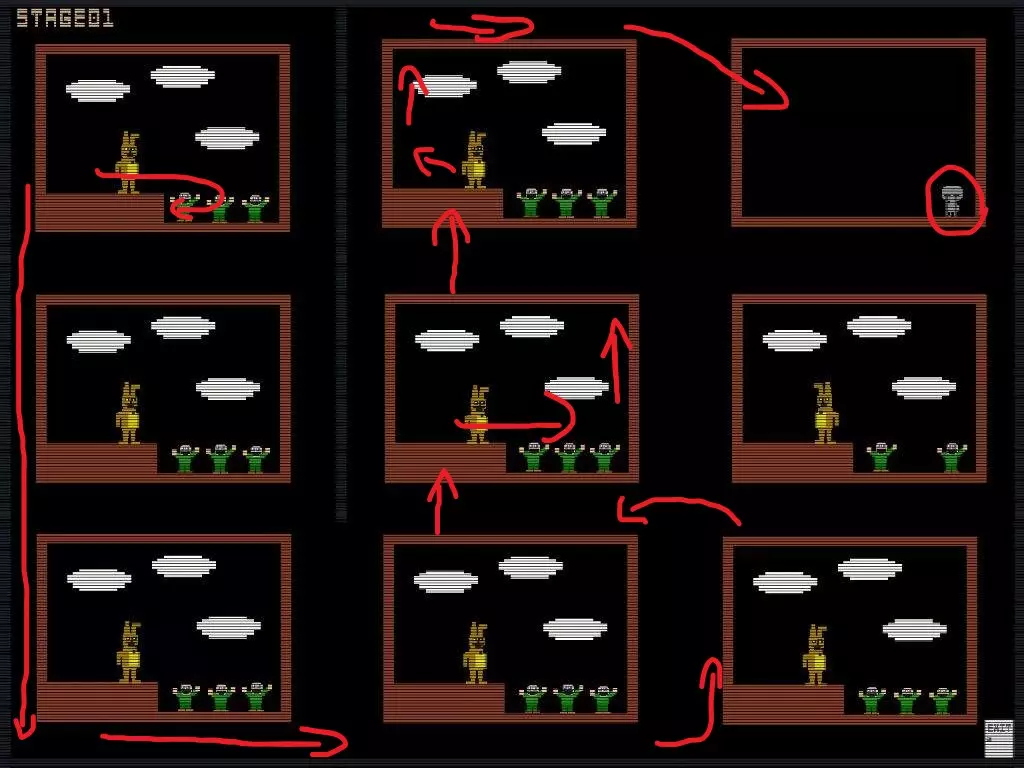 如果你正确完成了气球男孩小游戏,当你掉落时应该能找到一些气球。跳到气球上并拿到蛋糕。 之后通关第二夜。 好结局/真结局 第三夜 在这一夜,你需要在监控上找到所有纸杯蛋糕。以下是所有位置。