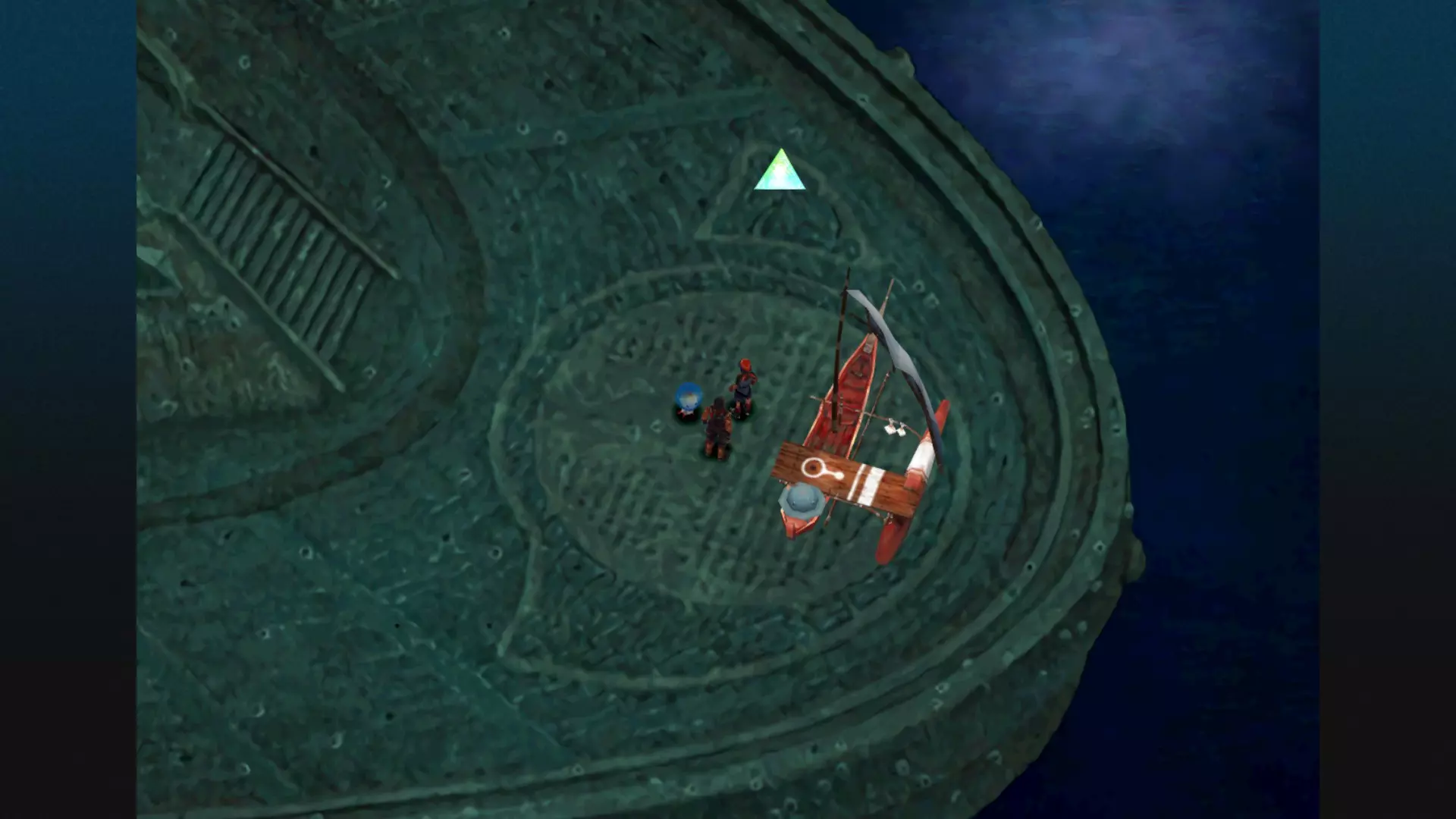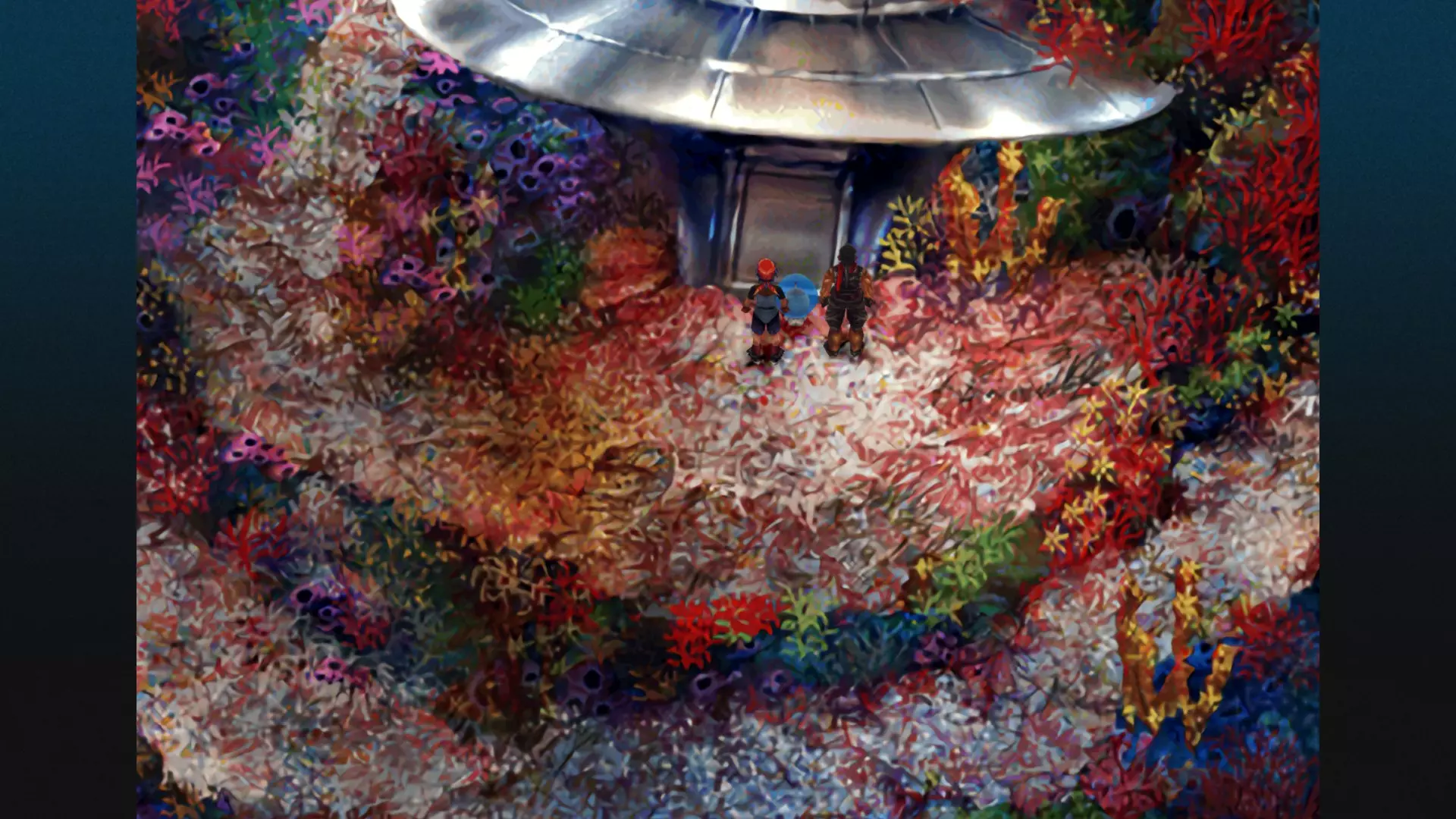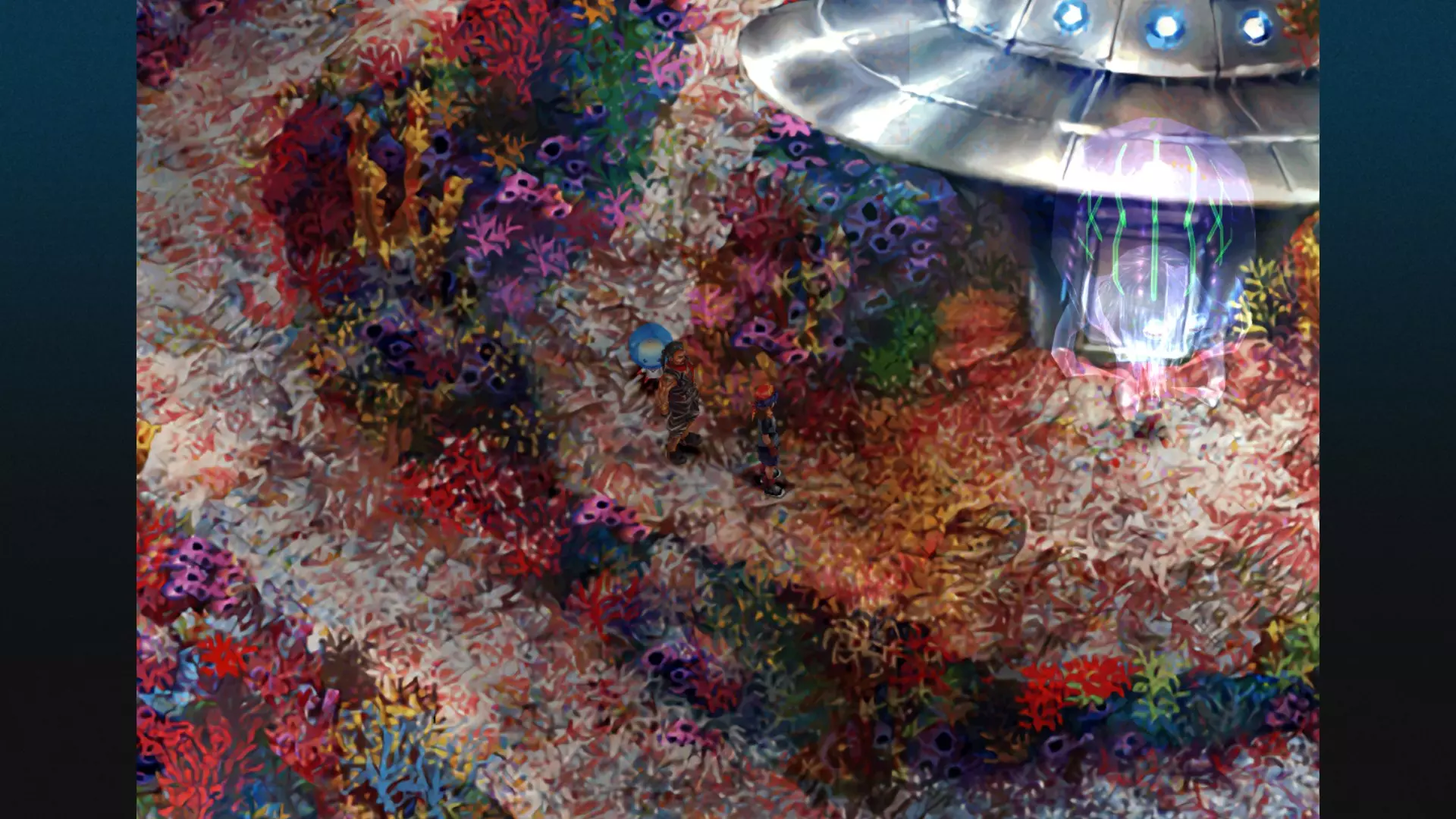 当你下到“下层”后,沿着小路向右上方走,直到看到不明飞行物以及守护它的怪物!
