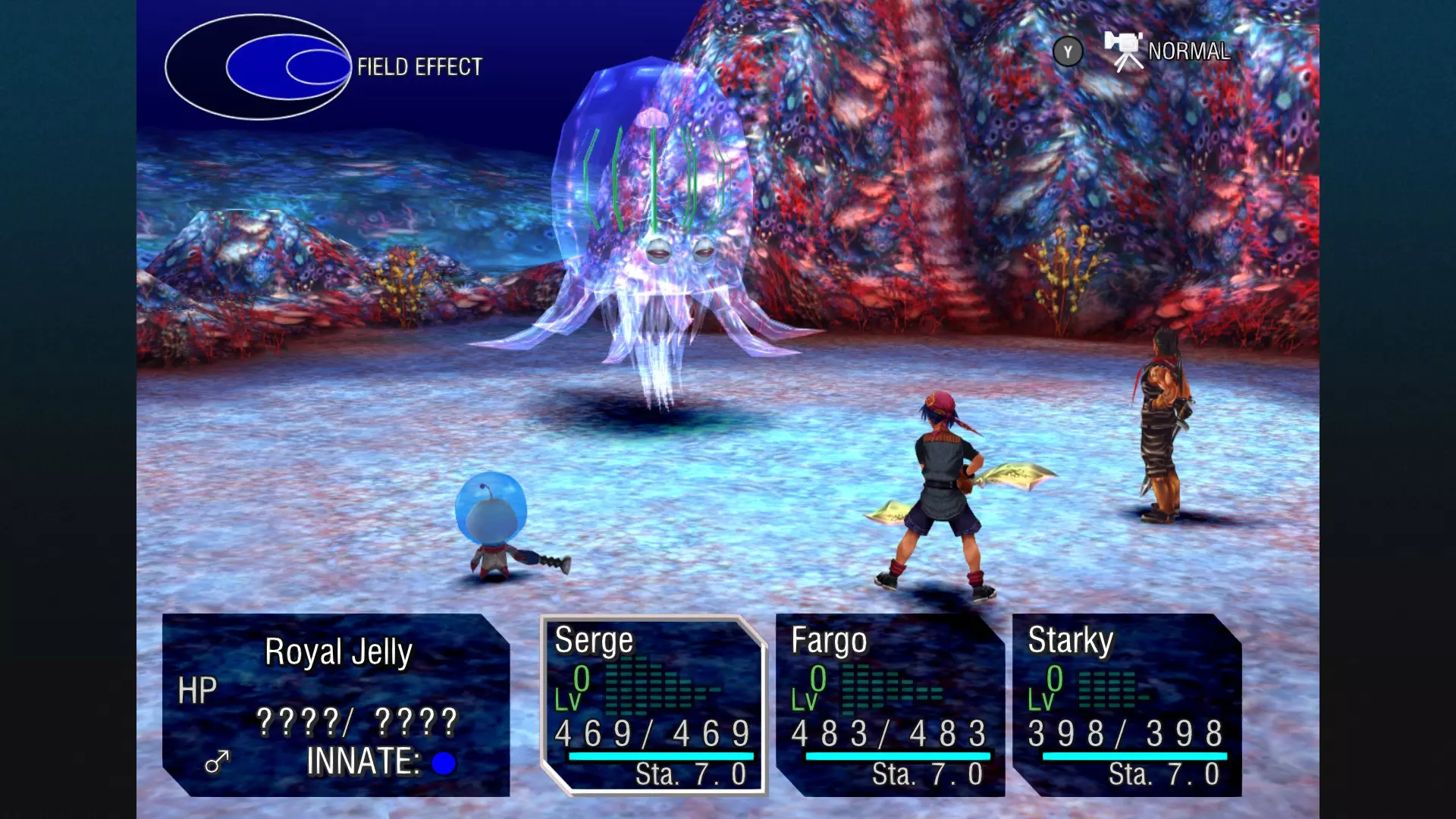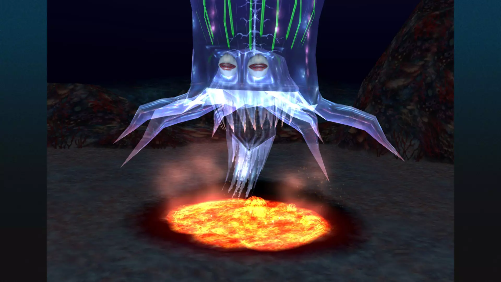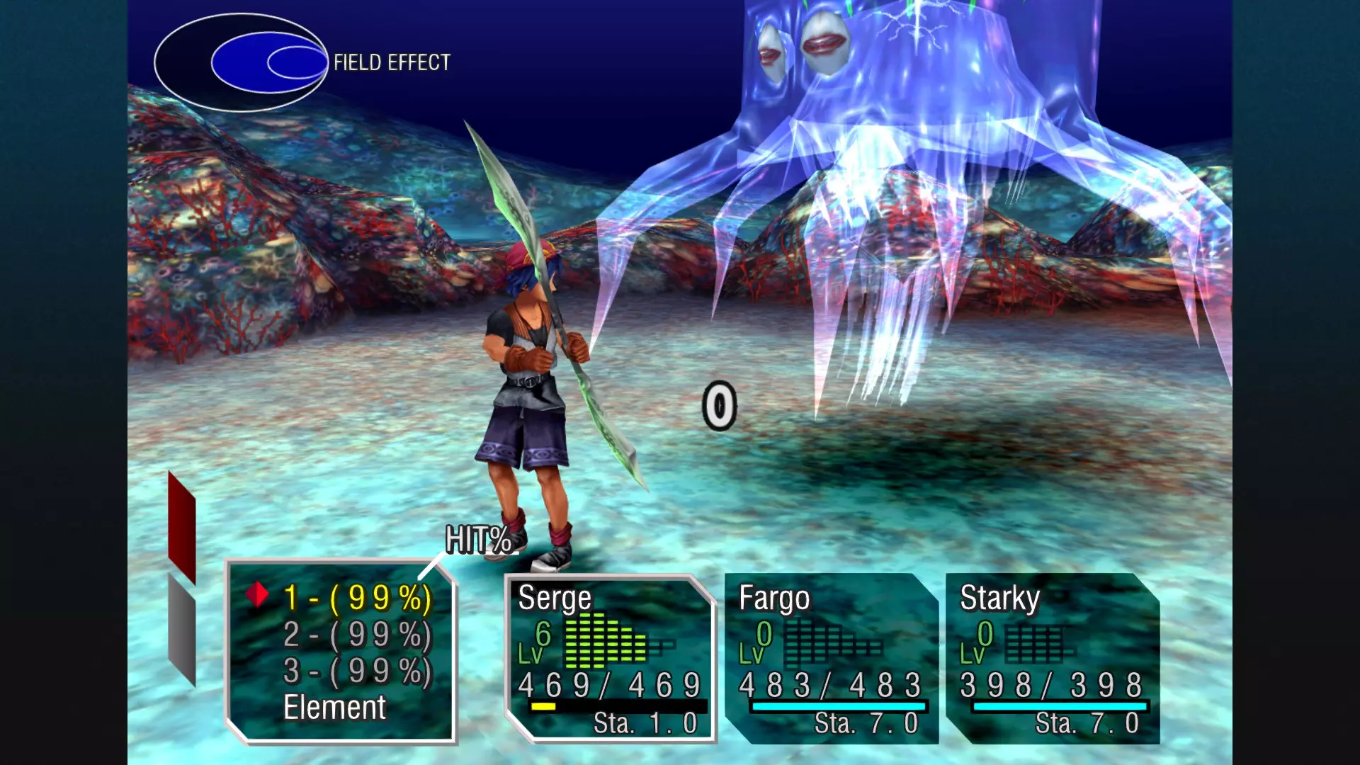 现在我们用红色元素魔法来挑战它并击败这个家伙。它不会吸收其他任何元素的魔法。该生物本身具有蓝色元素属性,任何物理攻击或其他颜色的魔法攻击都会导致你失败——而不是它。因为任何物理和魔法伤害对它都无效。你对它造成的伤害只会是零!