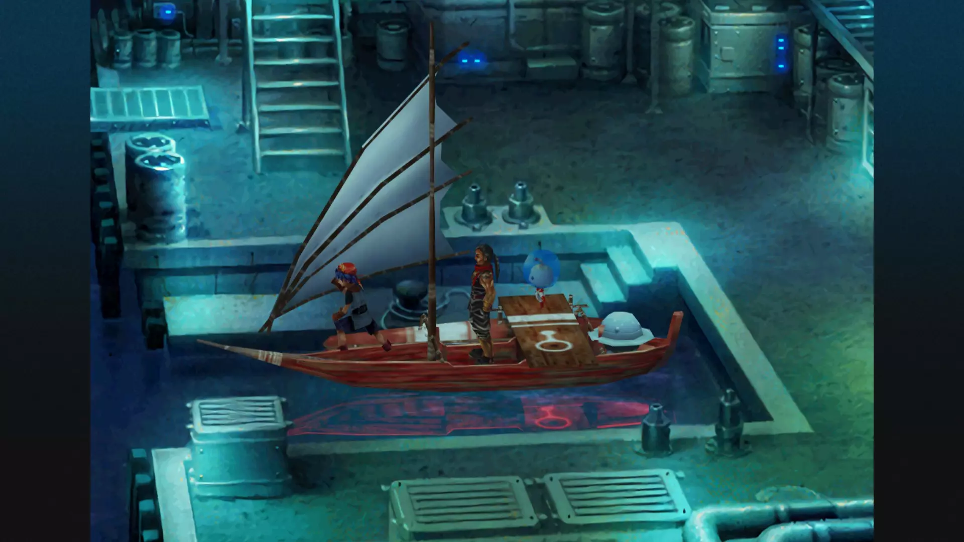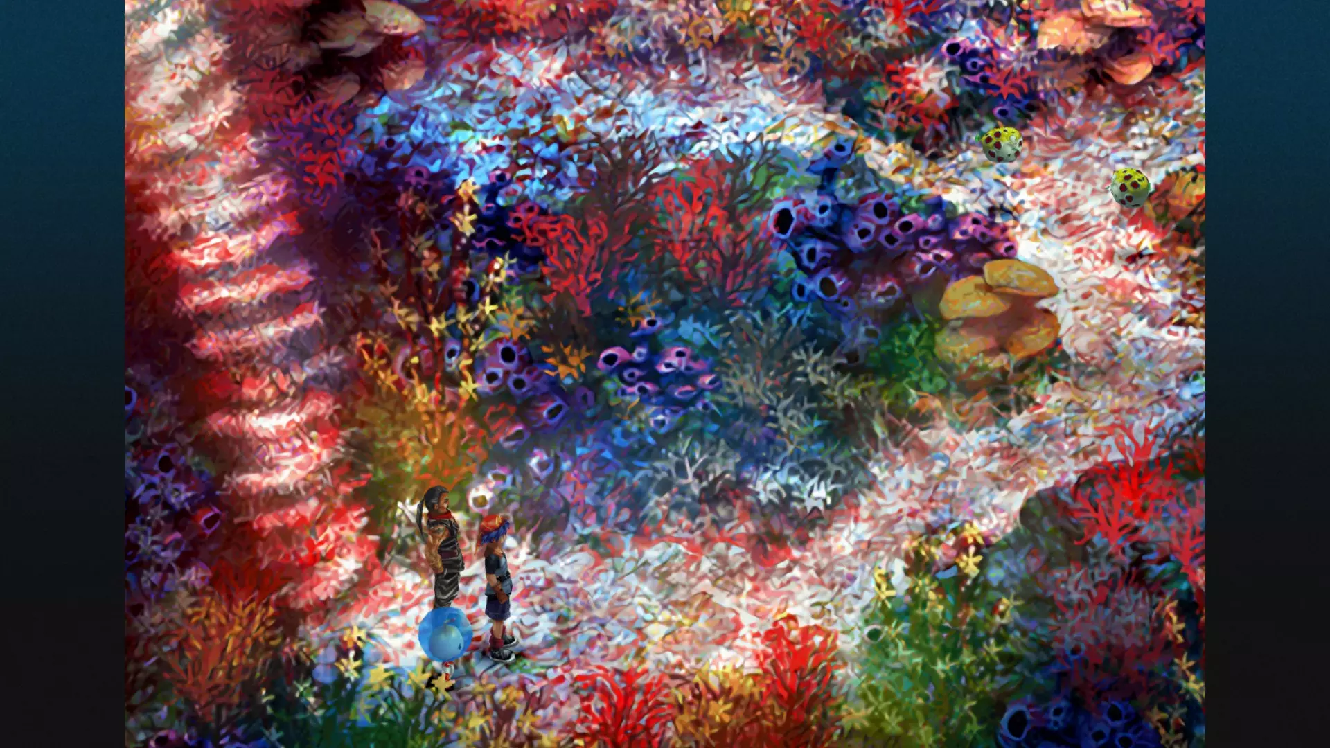 我们下水后往深处走。这里只有一条路,所以你应该不会有问题。如果你想要很多钱和其他道具,最好和怪物战斗,它们会掉落一些东西(这些鱼还挺有用的)。