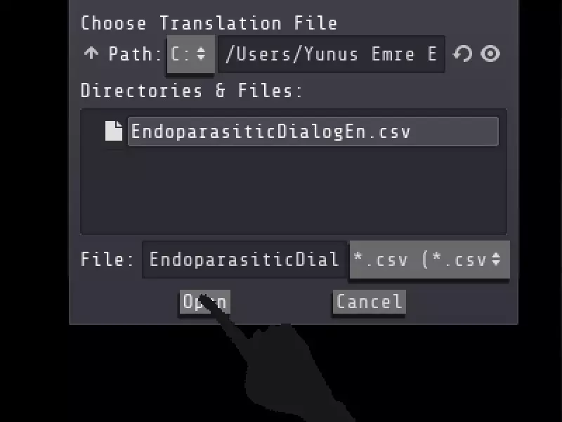 8. 选择我提供的压缩包内的EndoparasiticDialogEn.csv文件,然后点击加载。