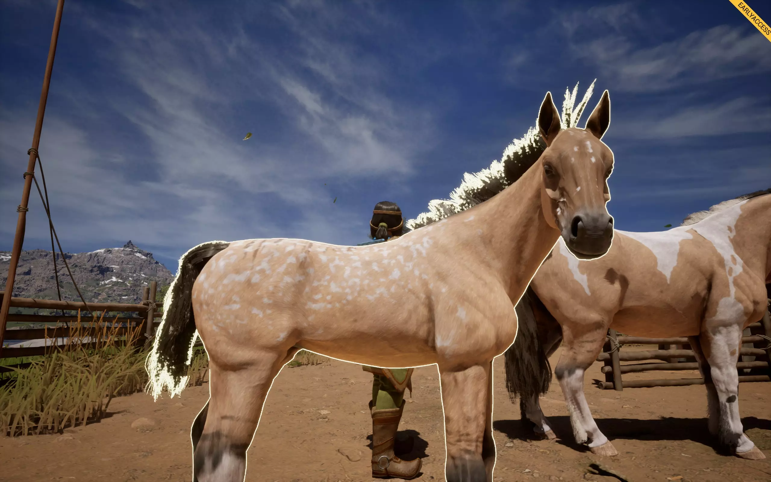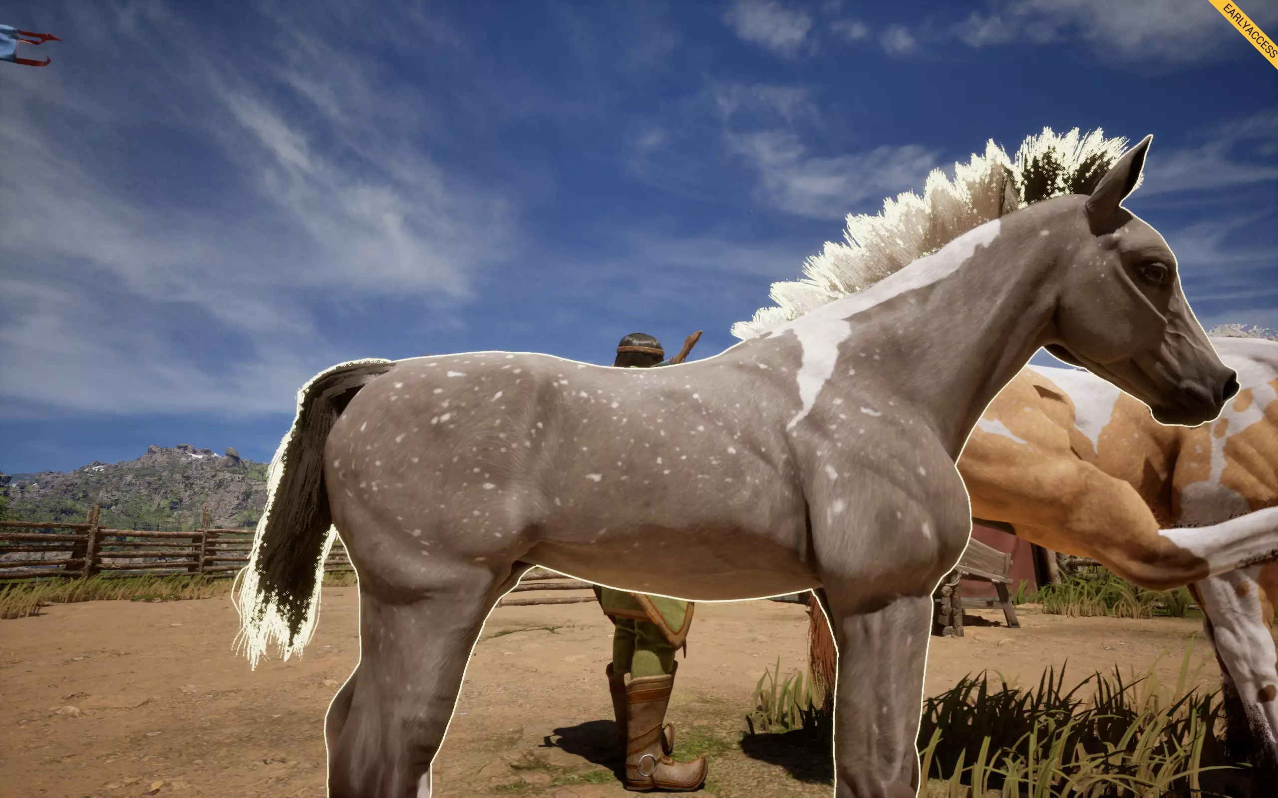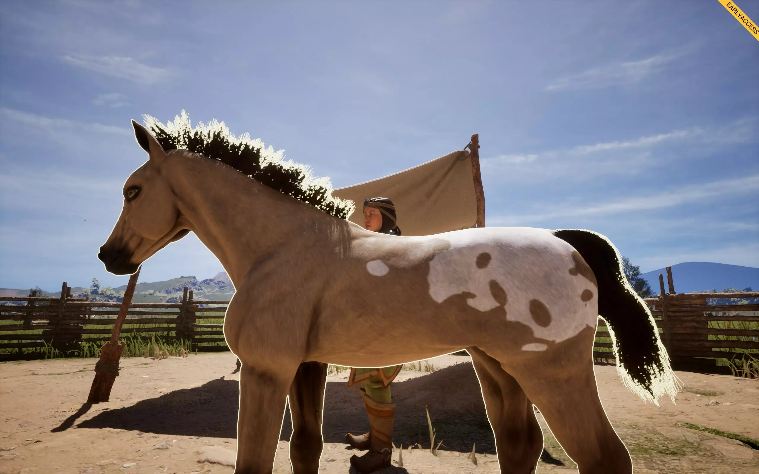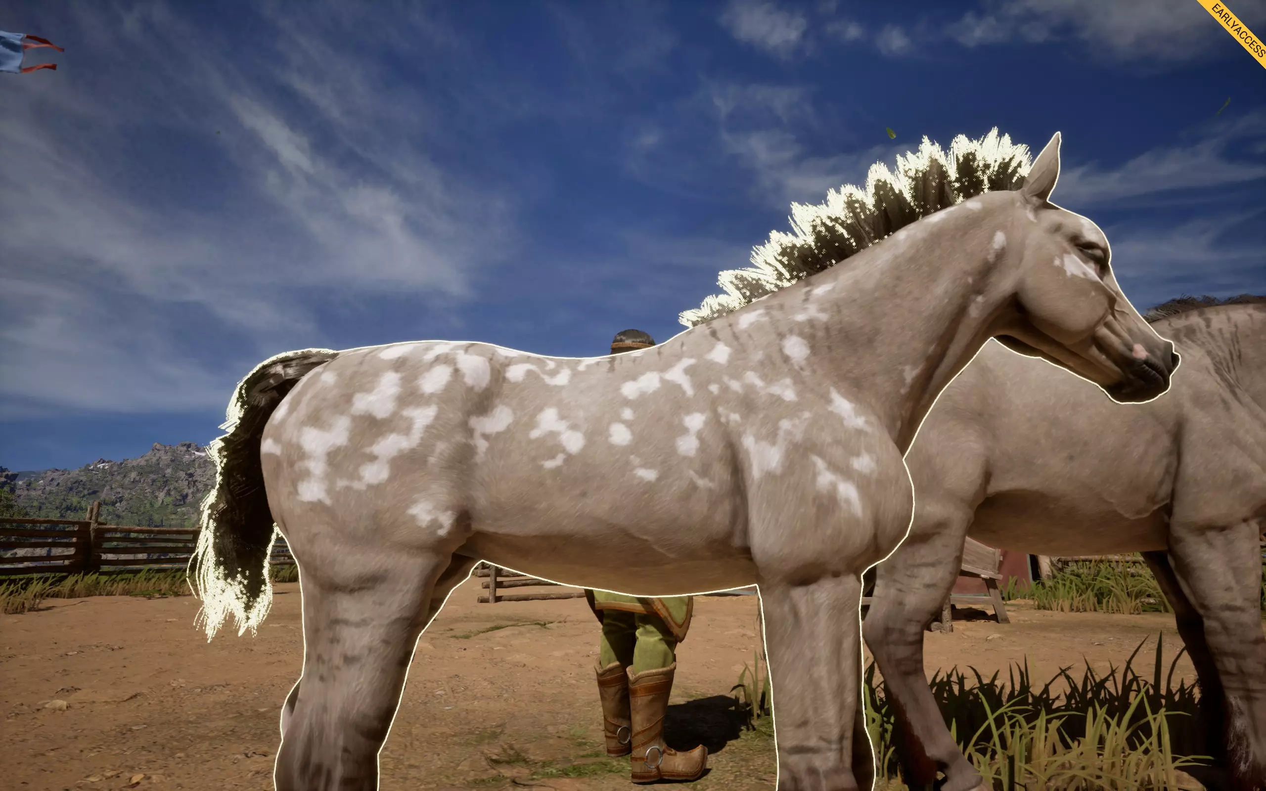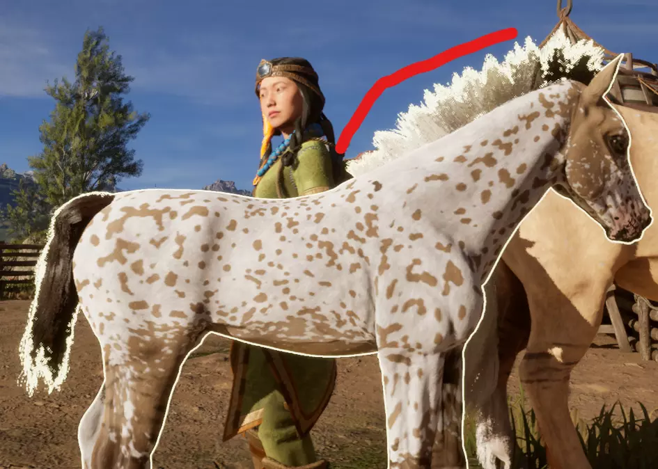 它会在你的马匹身上形成斑点花纹,有多种样式,例如豹纹、雪花纹、毯状纹等。 如何获取:若想寻找带有豹纹基因的马匹,可在商店中搜索主体为白色、全身带有深色斑点的马匹,类似达尔马提亚犬的样子,这类马匹最容易辨认。