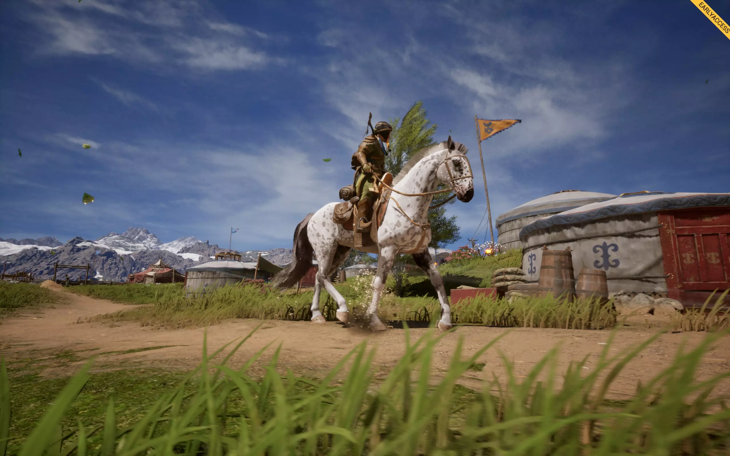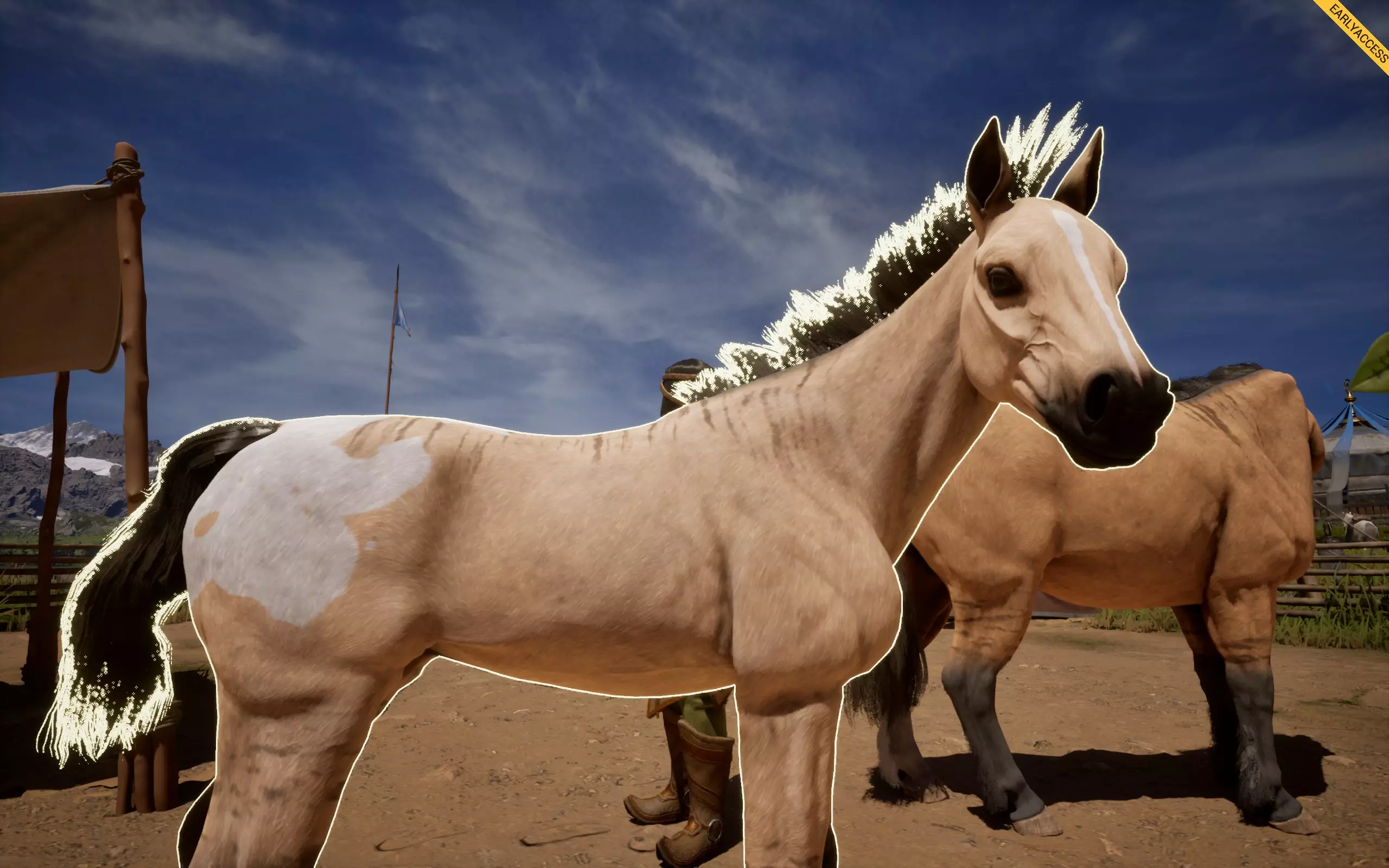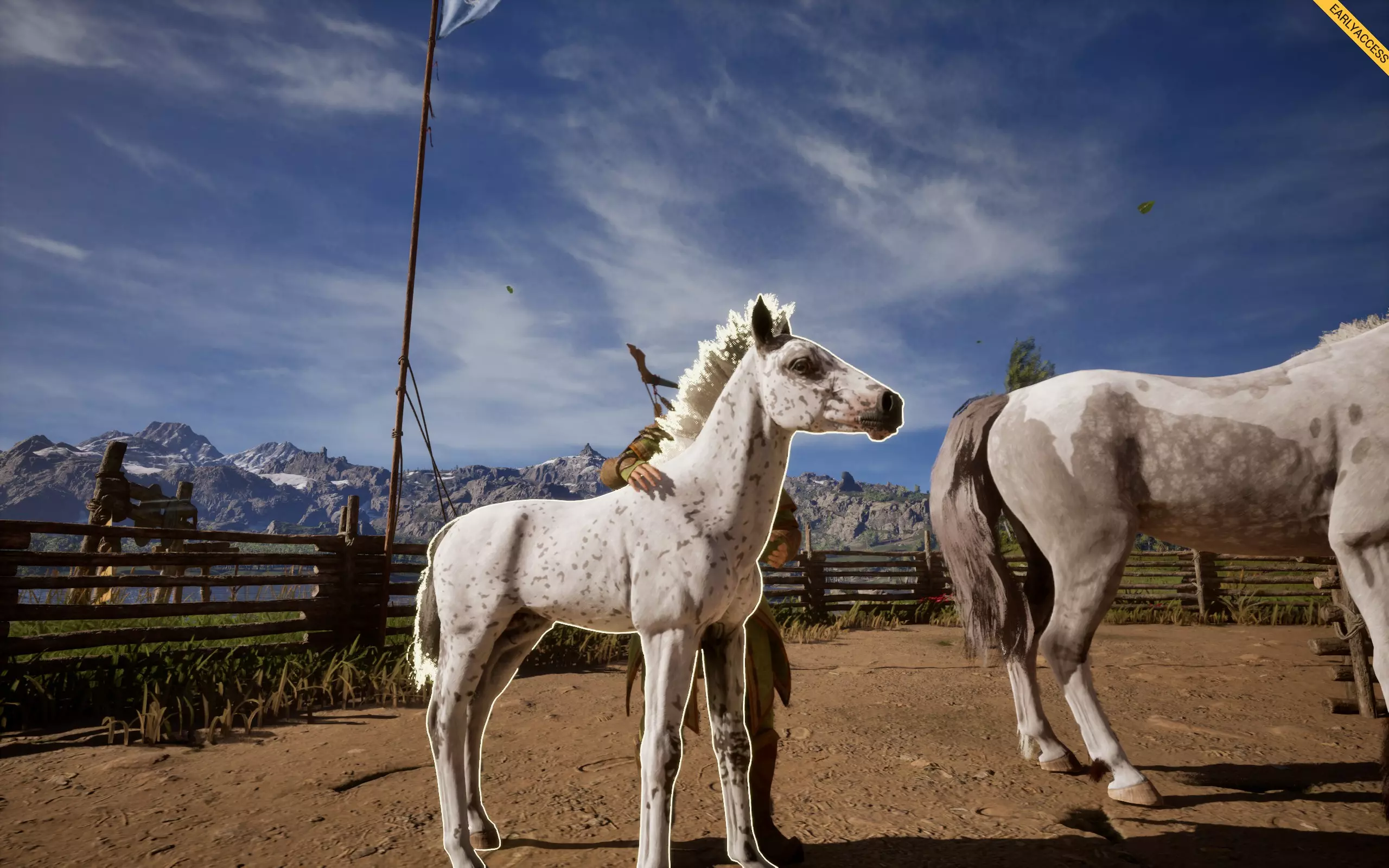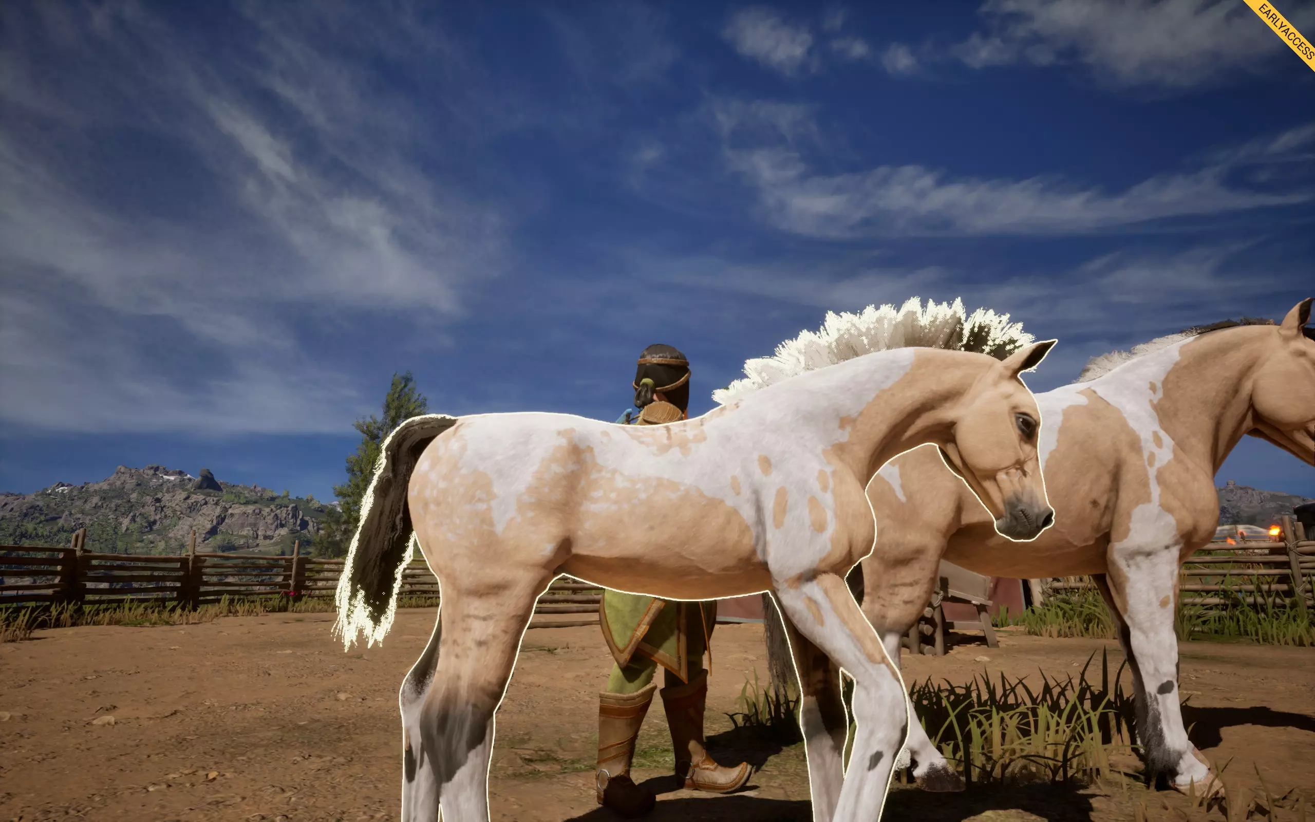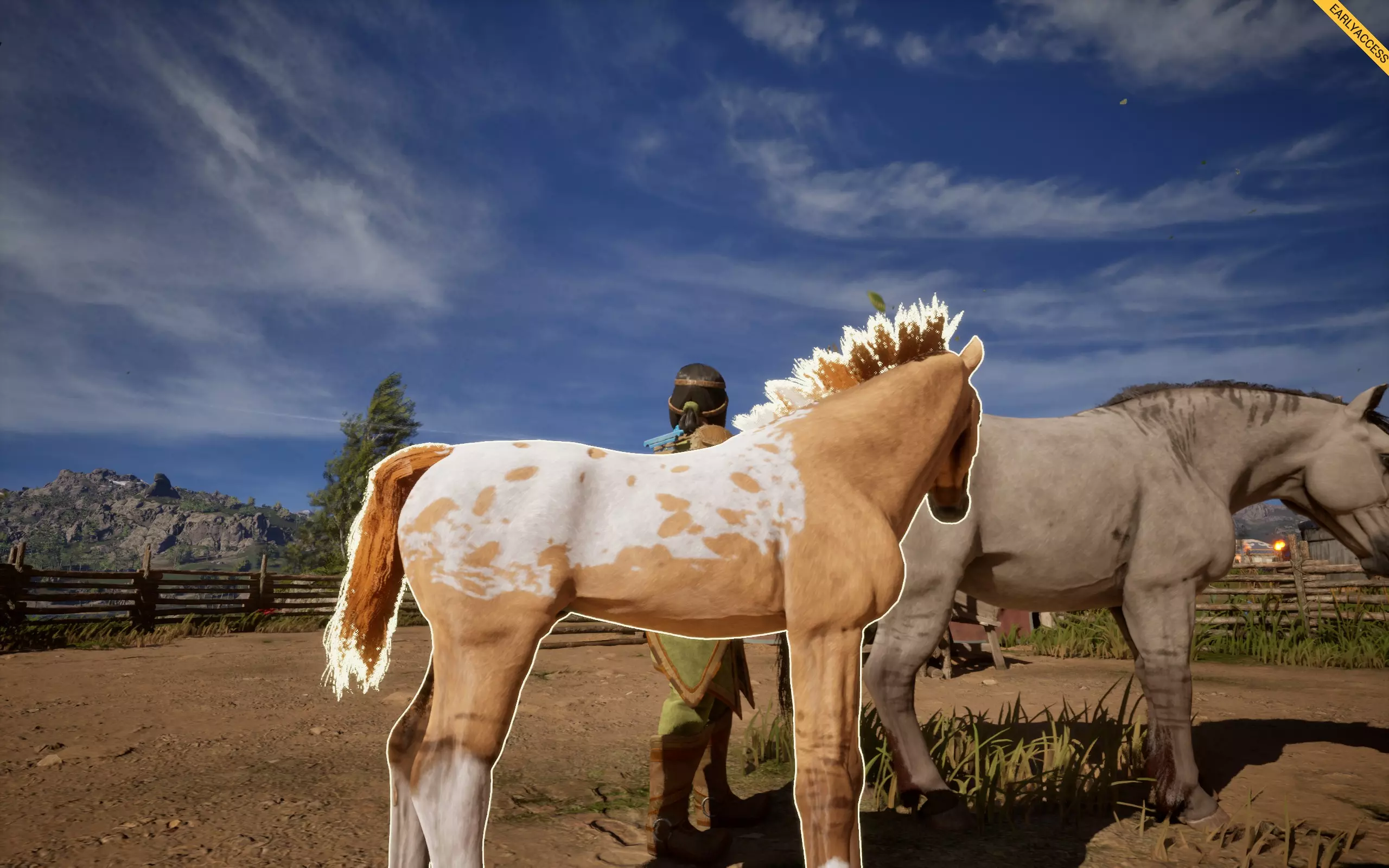 它会在你的马匹身上形成斑点花纹,有多种样式,例如豹纹、雪花纹、毯状纹等。 如何获取:若想寻找带有豹纹基因的马匹,可在商店中搜索主体为白色、全身带有深色斑点的马匹,类似达尔马提亚犬的样子,这类马匹最容易辨认。