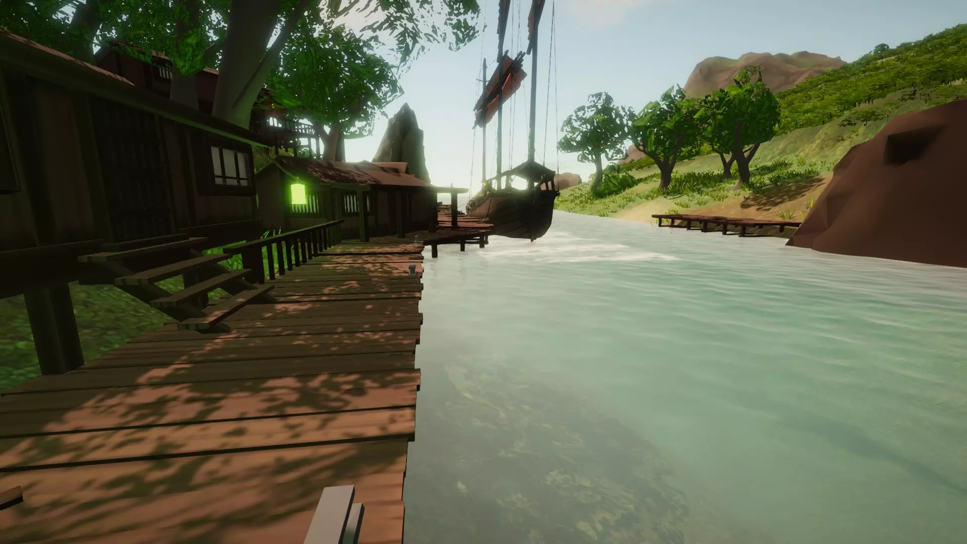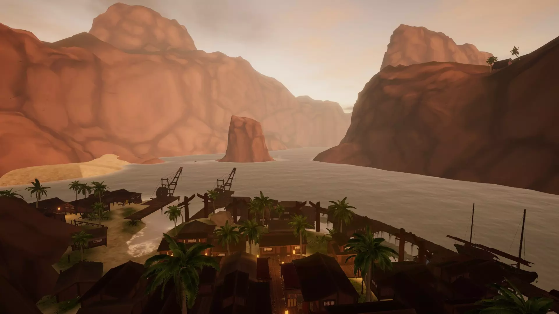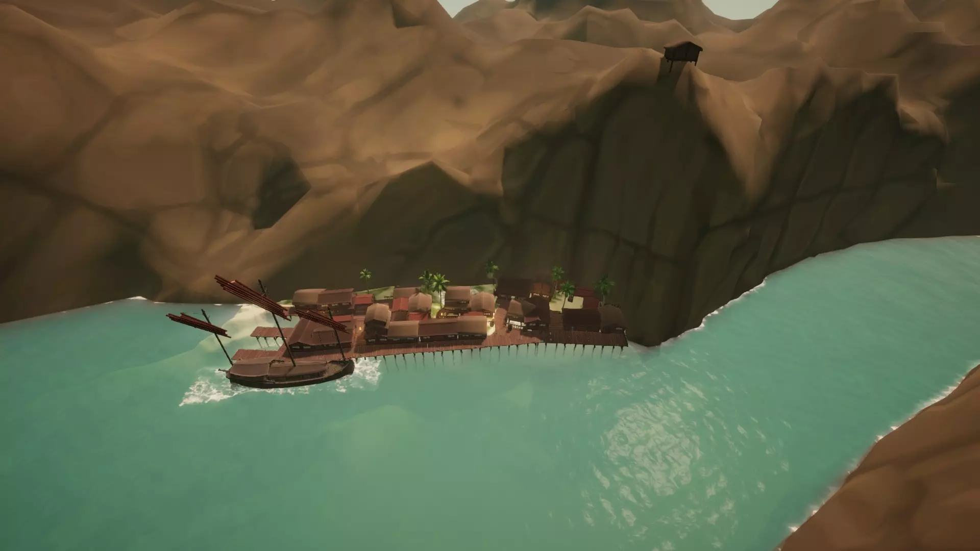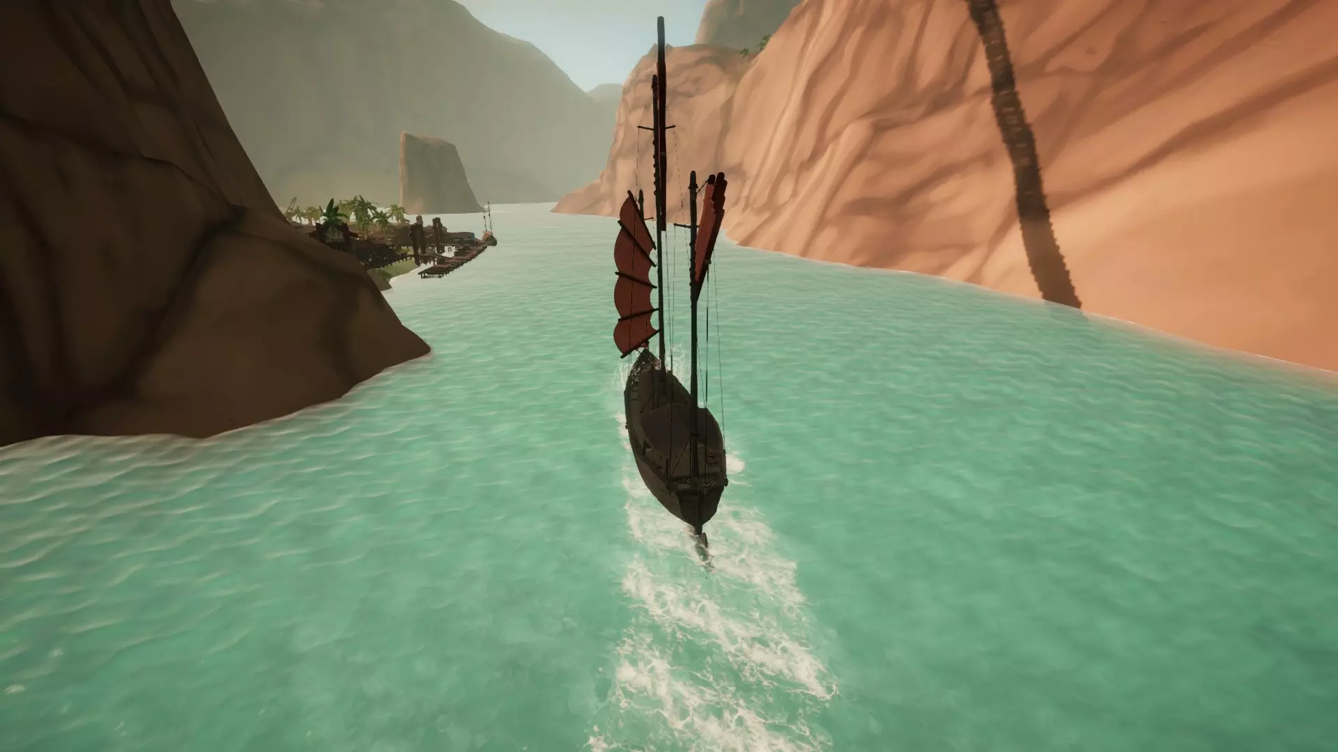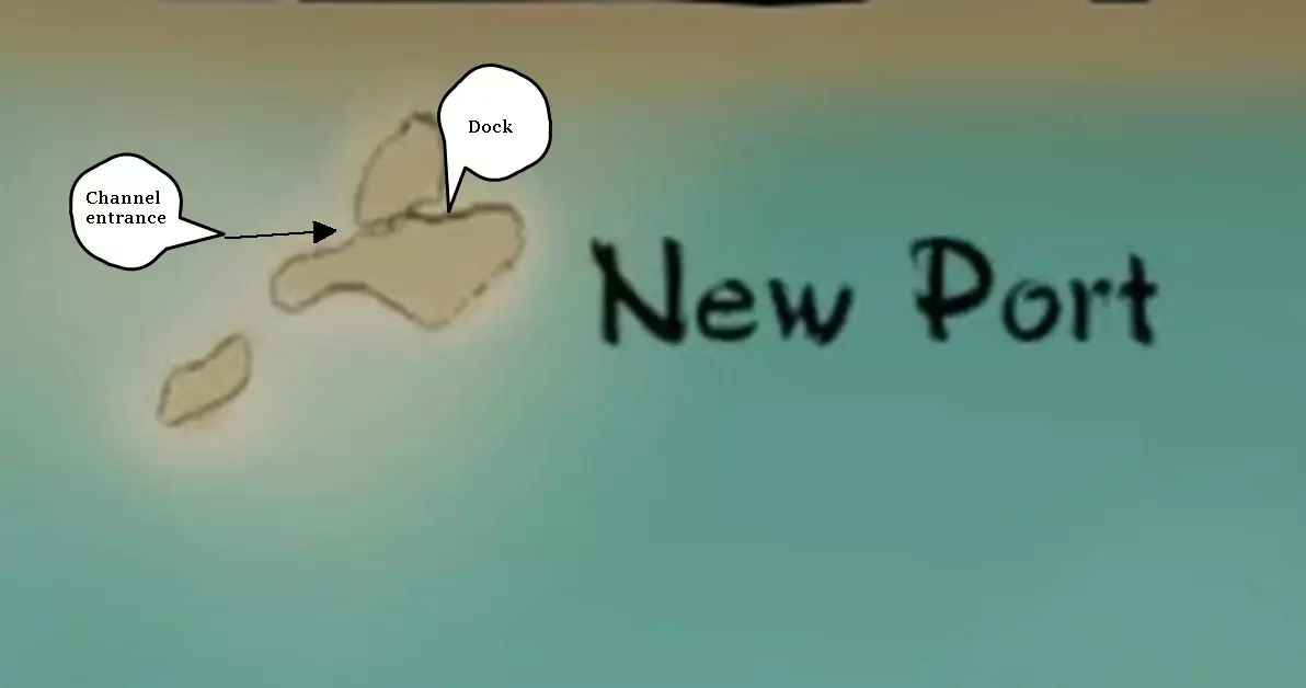 主岛坐落在环礁湖中,四周被岩壁和从水中耸立而起的巨大岩柱环绕,这些都使得前往港口的航行十分困难。此外,狭窄的水道还会导致水流相当湍急。实际的码头沿着岛屿的东侧和北侧弯曲延伸。在这里你可以找到售价14500的【 Junk(原词)】。 港口
