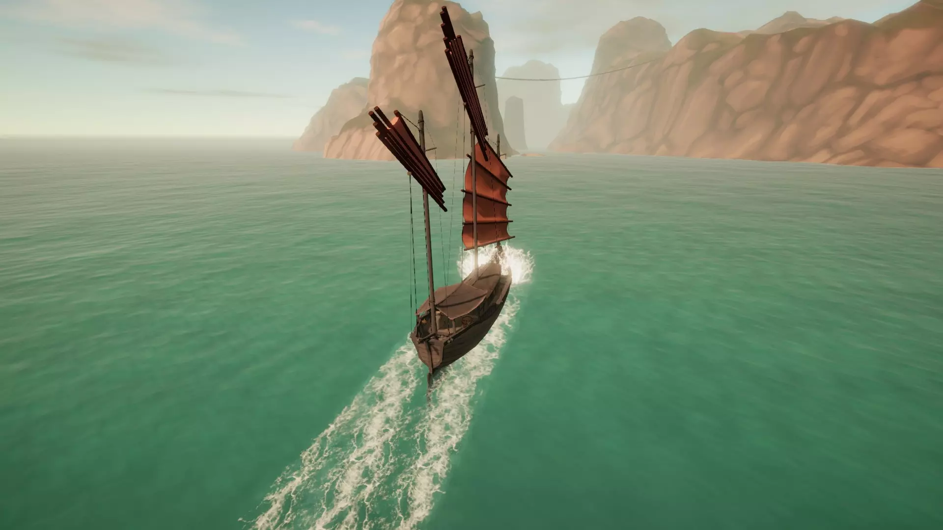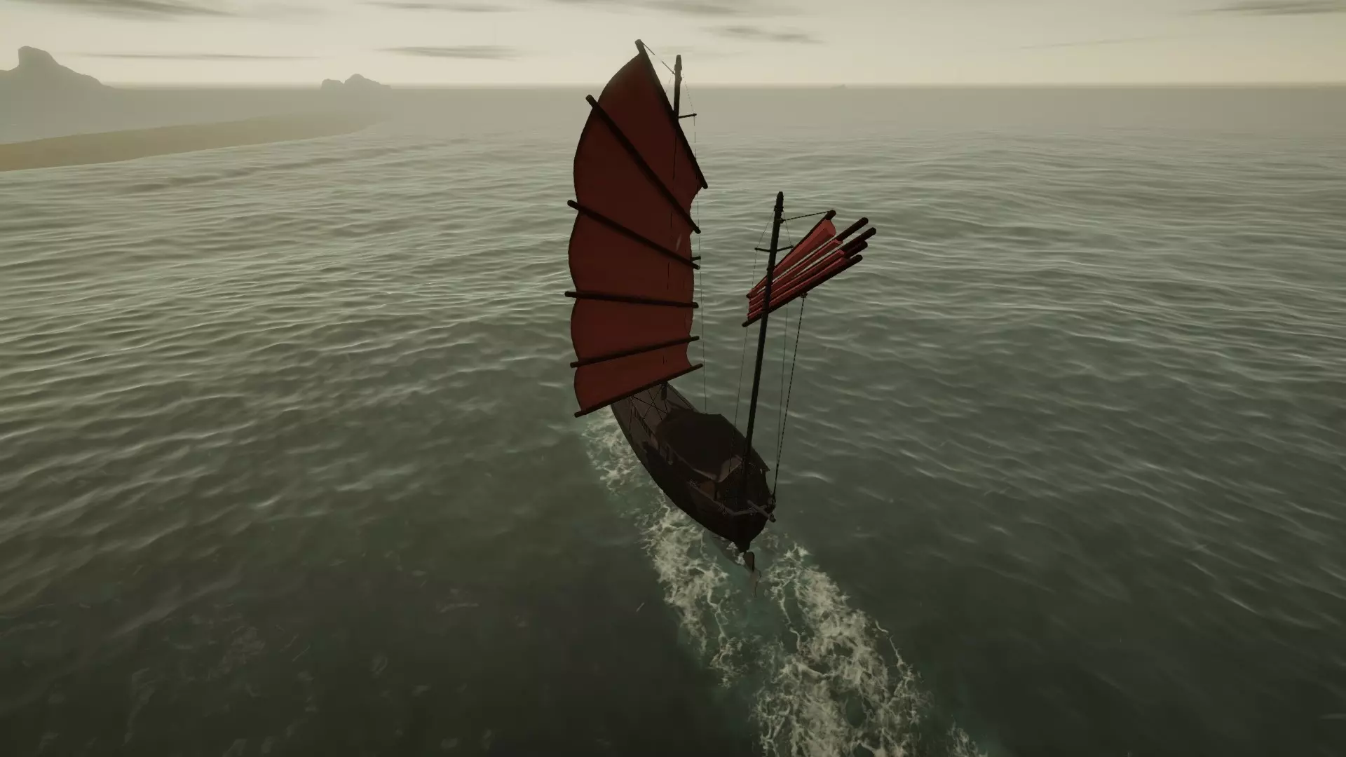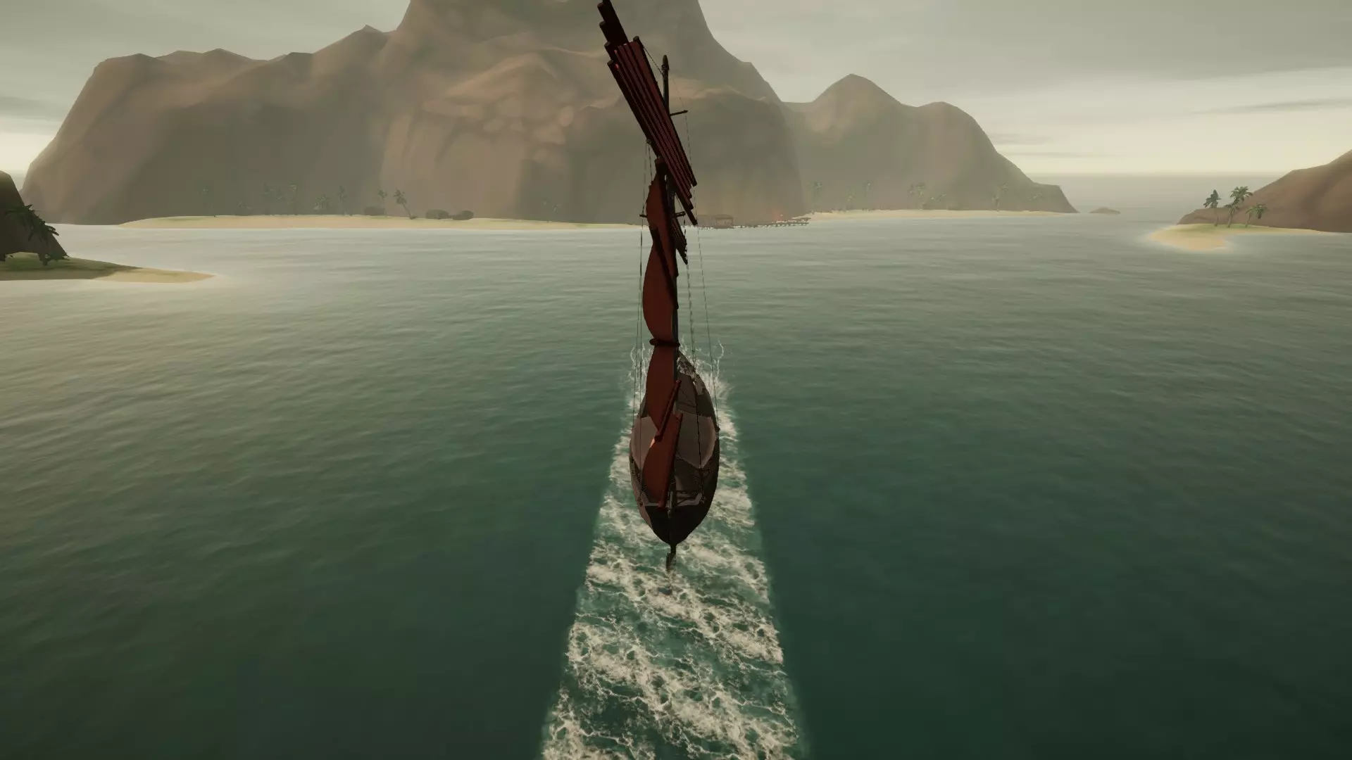 从西北方向驶来。前方的港口就在前景中那座小岛的正前方。
