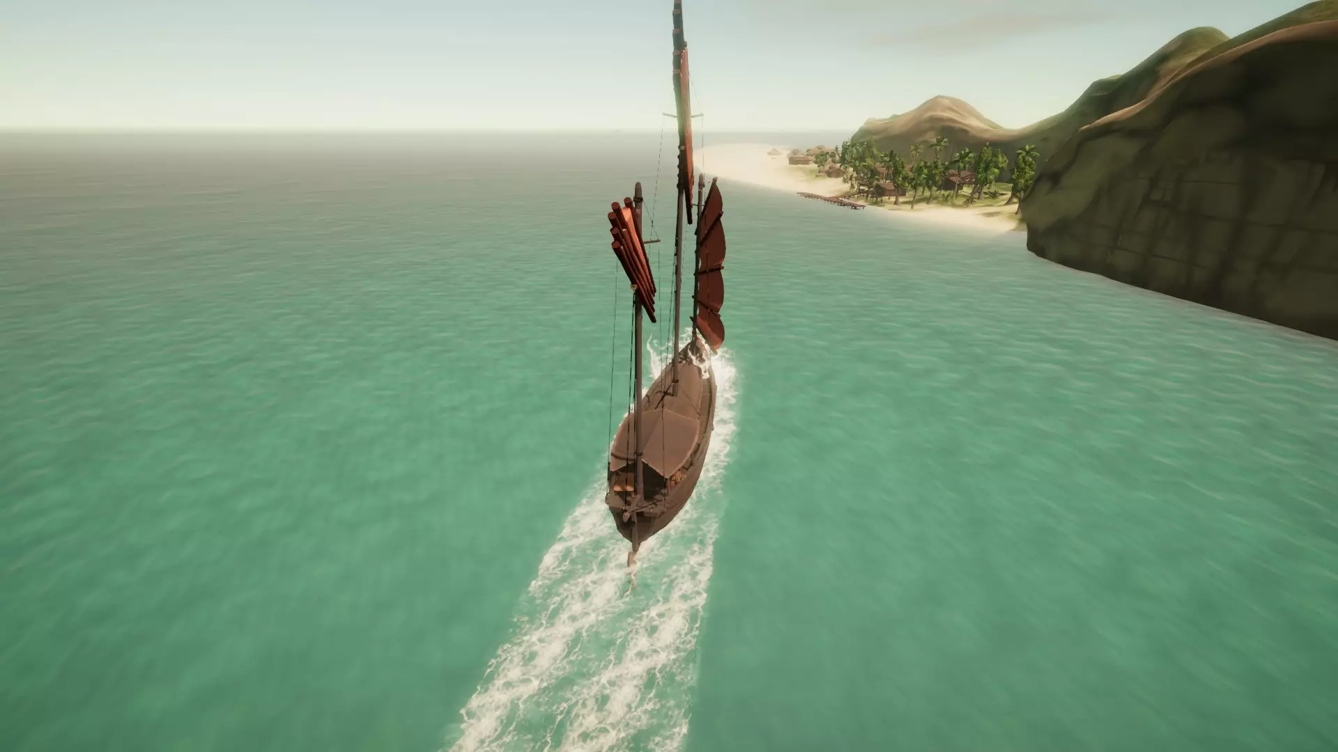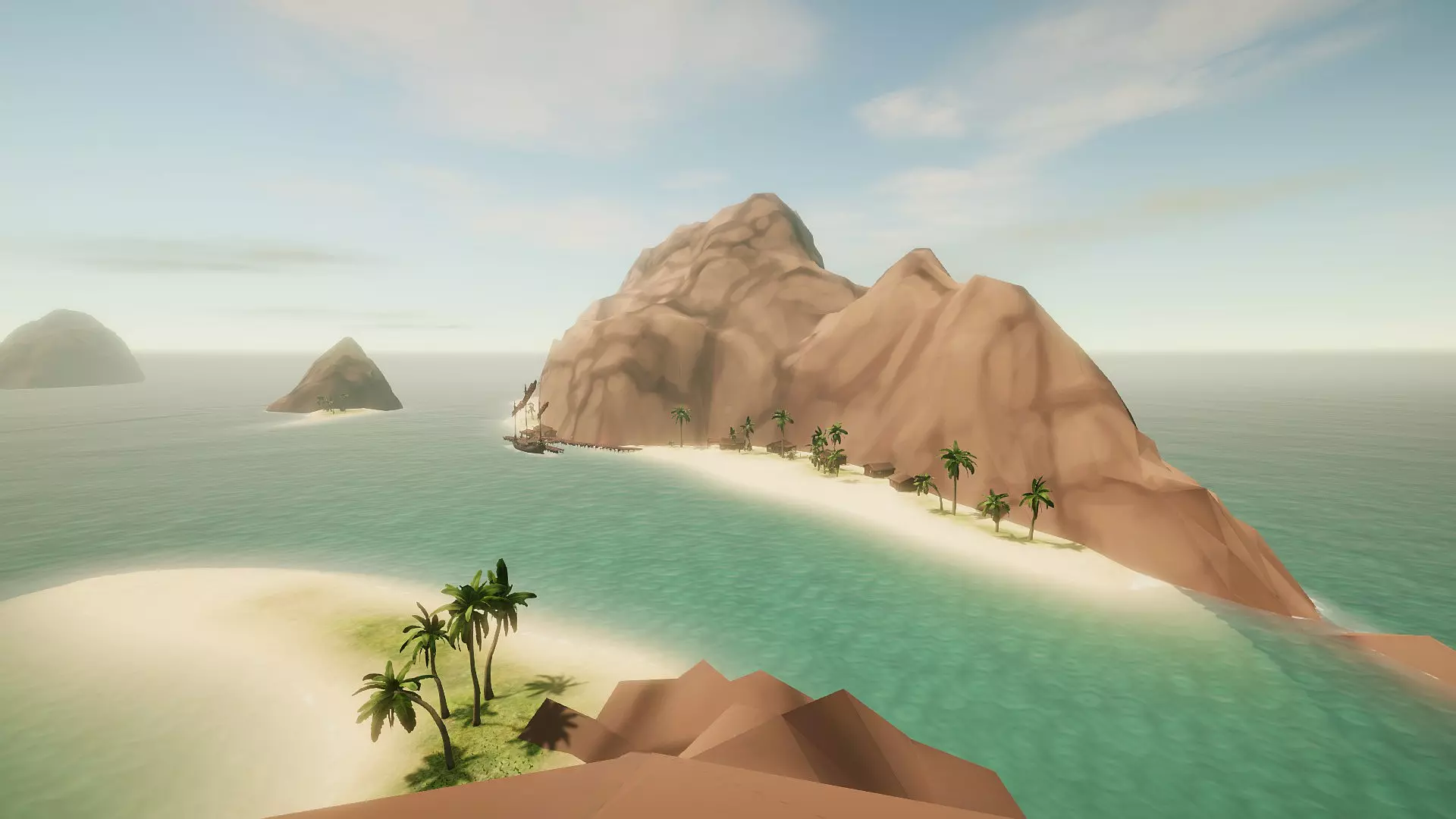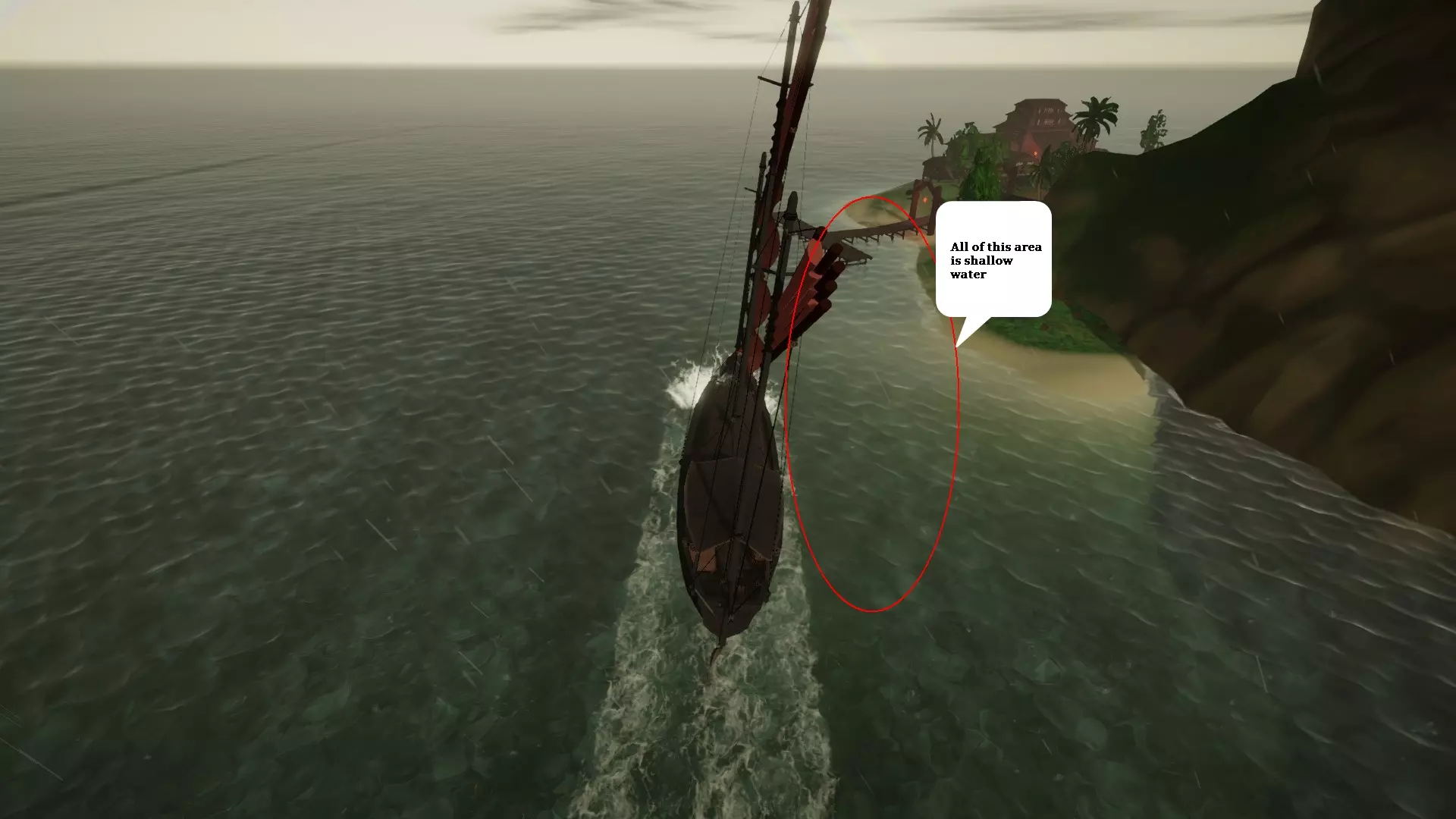 港口 位于这座狭长岛屿的北侧西端。从罗盘北半部的任何方向都能轻松抵达,但如果从东方或东北方驶来,需注意那片让岛屿得名的弧形长滩,由于海滩向东北方向延伸很远,你需要保持向北航行。 东侧航线