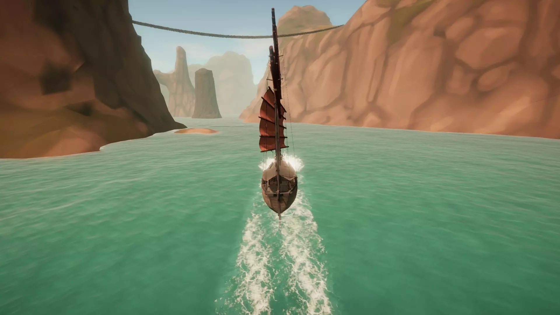 入口位于悬崖的狭窄缝隙中。在航道尽头,你需要向右急转朝北行驶。