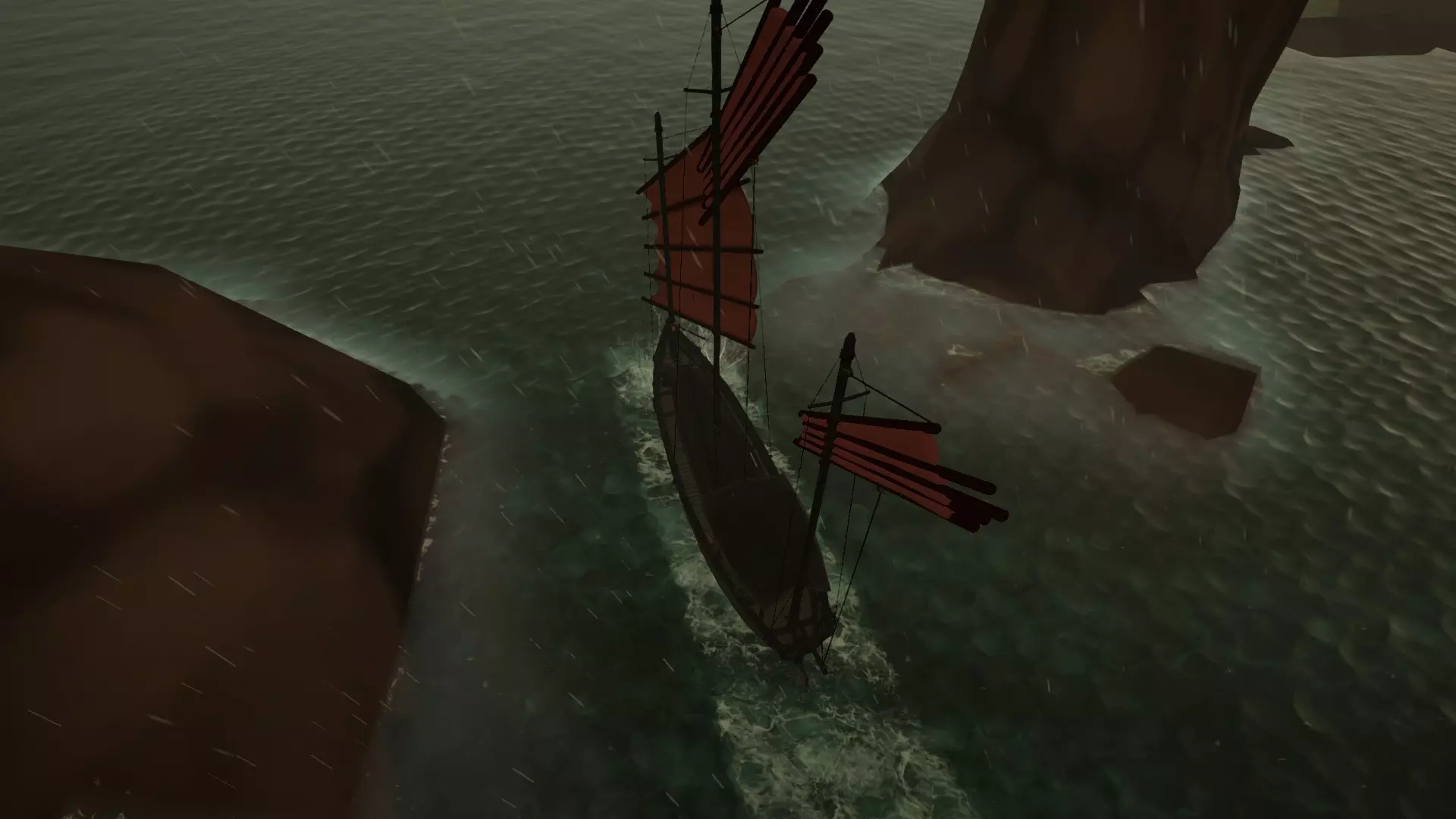 靠近悬崖一侧的港口比靠近岩石一侧更安全,因为右舷水下有暗礁。不要尝试从岩石的右舷绕行,那里同样有危险的暗礁。