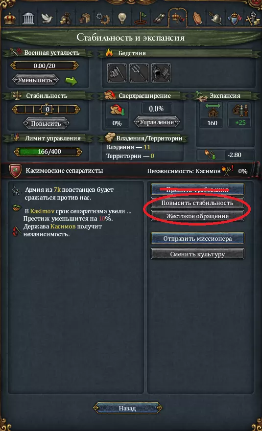 税收与生产 要想赚取更多金钱,就需要拥有更多省份并提升它们的发展度。关于发展度我们稍后再谈,现在先来说说扩张。 在占领新省份后,我们必须将其国有化。这样做是为了避免获得过度扩张惩罚并建立领地。