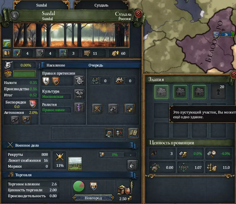 (点击左侧按钮(国旗旁边),然后点击链条按钮以及带减号的链条按钮) 附:可以不增加领地数量,而是将其转变为贸易公司。 ============================================================================ 现在来谈谈省份发展。通过发展,你可以从单个省份获得更多收益:税收、生产收入或招募的士兵。每个省份根据其生产的商品不同,会获得不同数量的生产收入。