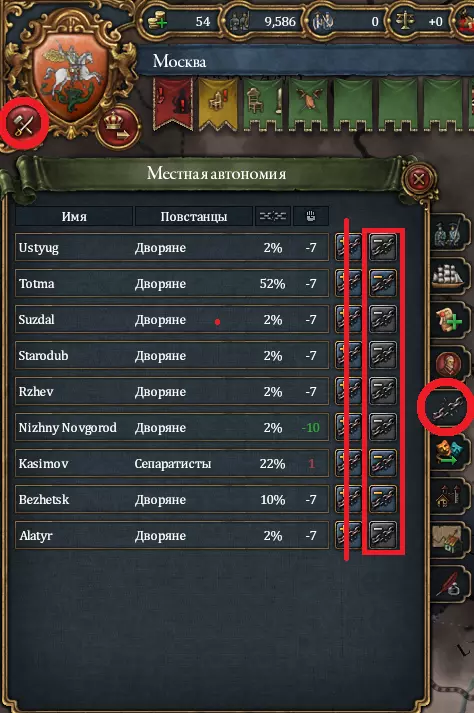 点击省份,上方会出现两个按钮,点击右侧按钮即可创建。 将省份国有化后,你可以将其转变为领地,以便从省份赚取更多的杜卡特(游戏内货币)。但创建领地后,你需要花费杜卡特来维持它,而要开始盈利,你需要再次将省份国有化,这又会消耗行政点数。但这还不是全部。每个省份都有自治度,自治度越低,你能获得的兵员和资金就越多,但叛乱也会更频繁发生。我建议始终将所有省份的自治度降至最低。
