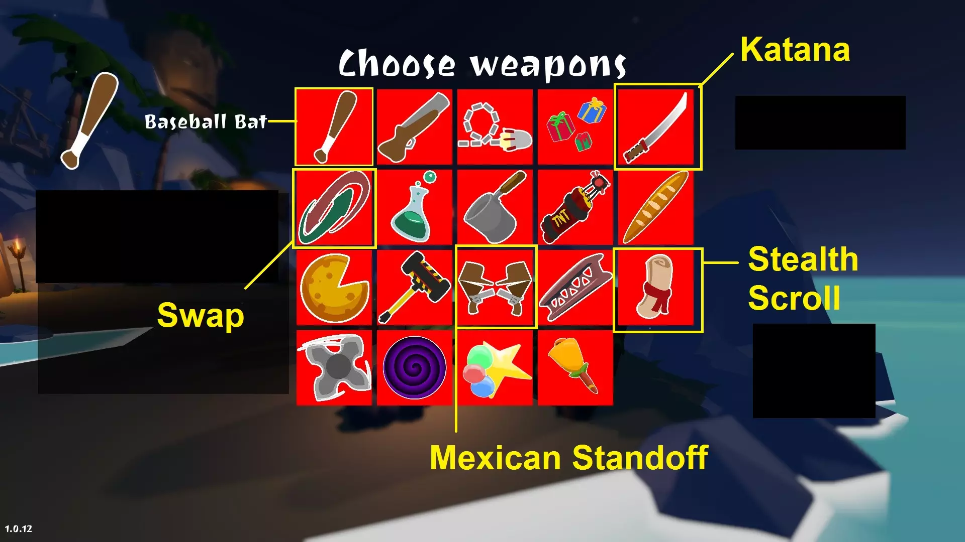 在主菜单中选择第二个选项【Go nuts】。从下方图片中选择五把武器中的一把并赢得游戏。然后使用其他武器各赢一局游戏。确保取消勾选之前使用的武器。
