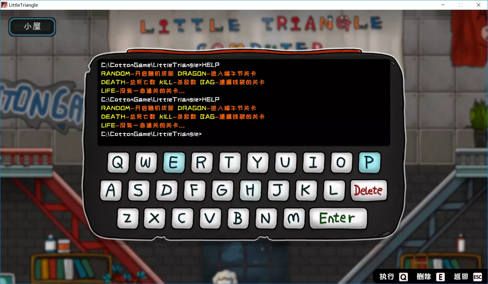 大家好,我是梨子,相信每款游戏都有一些刷成就的爱好者吧,但是遇到就差一两个成就毕业的情况也是很让人气愤的,于是游戏的开发者制作了一款可以查看你哪些关卡没有一命通关,哪些关卡的钱袋没有捡完(一定要通关了,钱袋才算捡到哦),下面梨子来告诉大家这款工具到底藏在哪儿了。 小屋中隐藏的命令行工具 有一天我拿到了新皮肤——小龙龙,我非常高兴地去小屋换皮肤,进了小屋发现这里面有好多层啊,于是梨子就试着看看能爬到多少层,到了最高层,梨子发现了一个惊天大秘密!