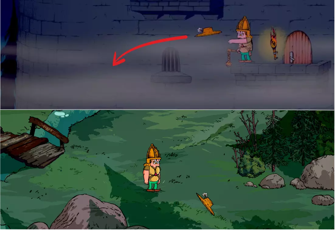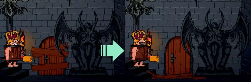 门后是一段冒险旅程,开发者将其比作《漫长等待》。 从玩法上来说,这仍是那座塔,但有一些特色: 洞穴分为3层(类似塔的楼层)。每层都由带把手的木门隔开。洞穴第3层的门会引导你前往村庄出口。 你可以通过一个无法返回的大坑来识别它。