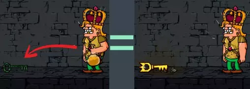 2)自己制作钥匙。我们教你炼药可不是白教的。 如果将金色药水扔到绿色钥匙(用于离开塔楼)上,我们就能得到开宝箱用的皇家钥匙!详情请见“炼药”部分。