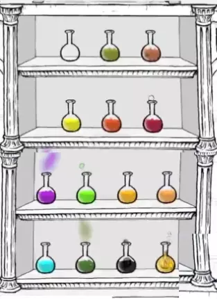 在锅里可以混合各种材料来制作不同的药水。总共有13种药水,它们的配方正等着你来发现。