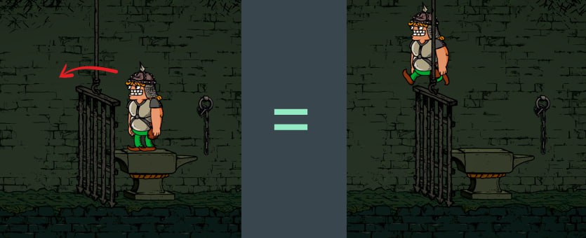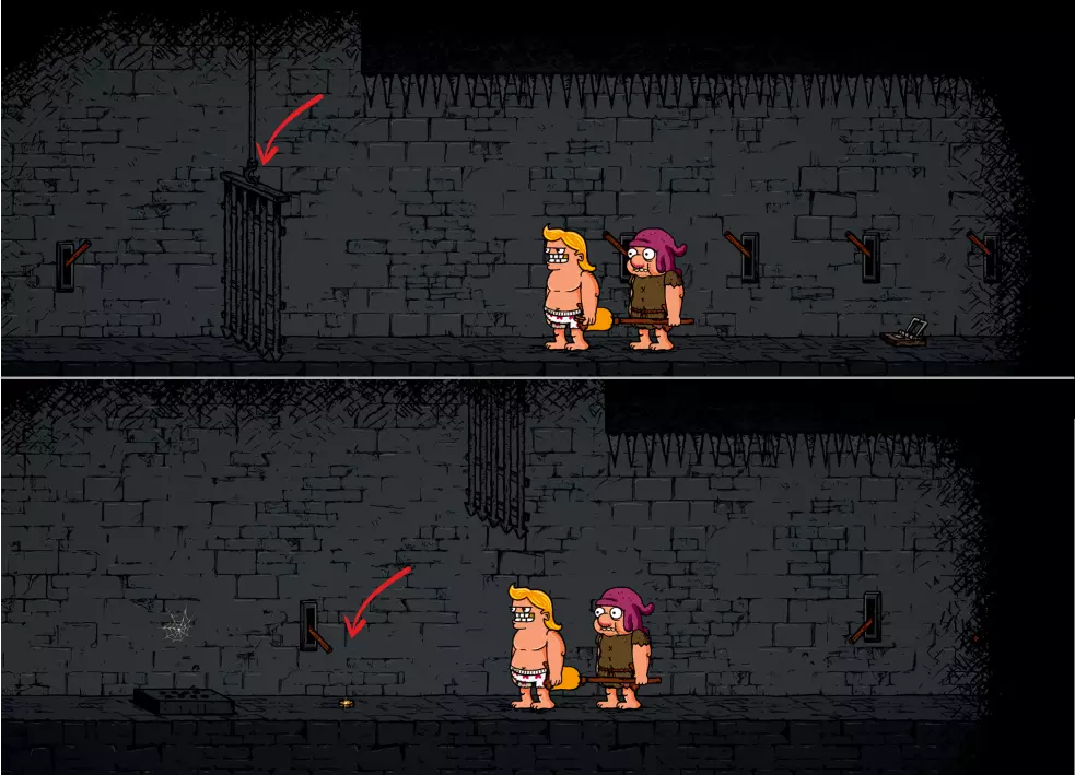 建议 - 使用香蕉皮或速度药水,以便在被压到之前及时拿到物品。没有它们的话,角色无法及时拿到物品并跑出去。 第二种方法 - 用等重的东西代替物品放在那里。 这种情况下,陷阱完全不会触发,你可以安然带着战利品离开。 或者放一个重量相近的物品 - 这样陷阱还是会落下,但速度会比平时慢。这能让你在被抓住之前带着战利品逃跑。 还有另一种陷阱——杠杆陷阱。要打开格栅,需要按正确的顺序按下杠杆。 杠杆有个小技巧——注意按下杠杆的速度,游戏会通过这种方式提示正确的顺序。正确的顺序总是从最“慢”的(需要先按)到最“快”的(最后按)。不想费功夫的话,只要拿个小东西直接从栅栏缝里扔到杠杆上就行。哨子、蜗牛、老鼠、眼球,甚至腰包里的硬币都可以。